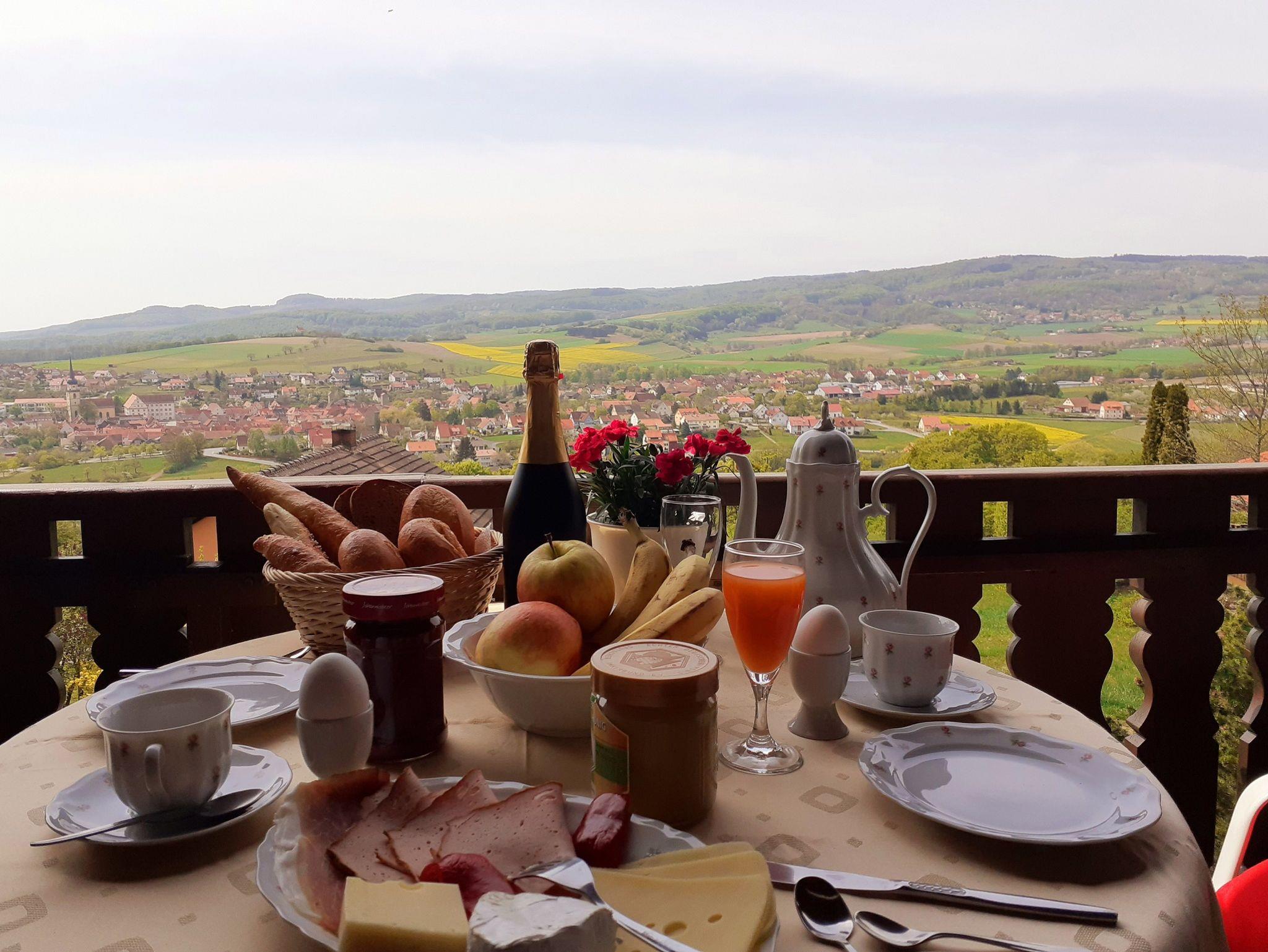 In unserem gemütlichen Ferienhaus befinden sich zwei Ferienwohnungen für insgesamt 10 Personen zum Erholen und Wohlfühlen. Die ruhige und sonnige Südhanglage bietet den Gästen einen beeindruckenden Panoramablick über das mittelalterliche Städtchen Fladungen und die Berge der Rhön.