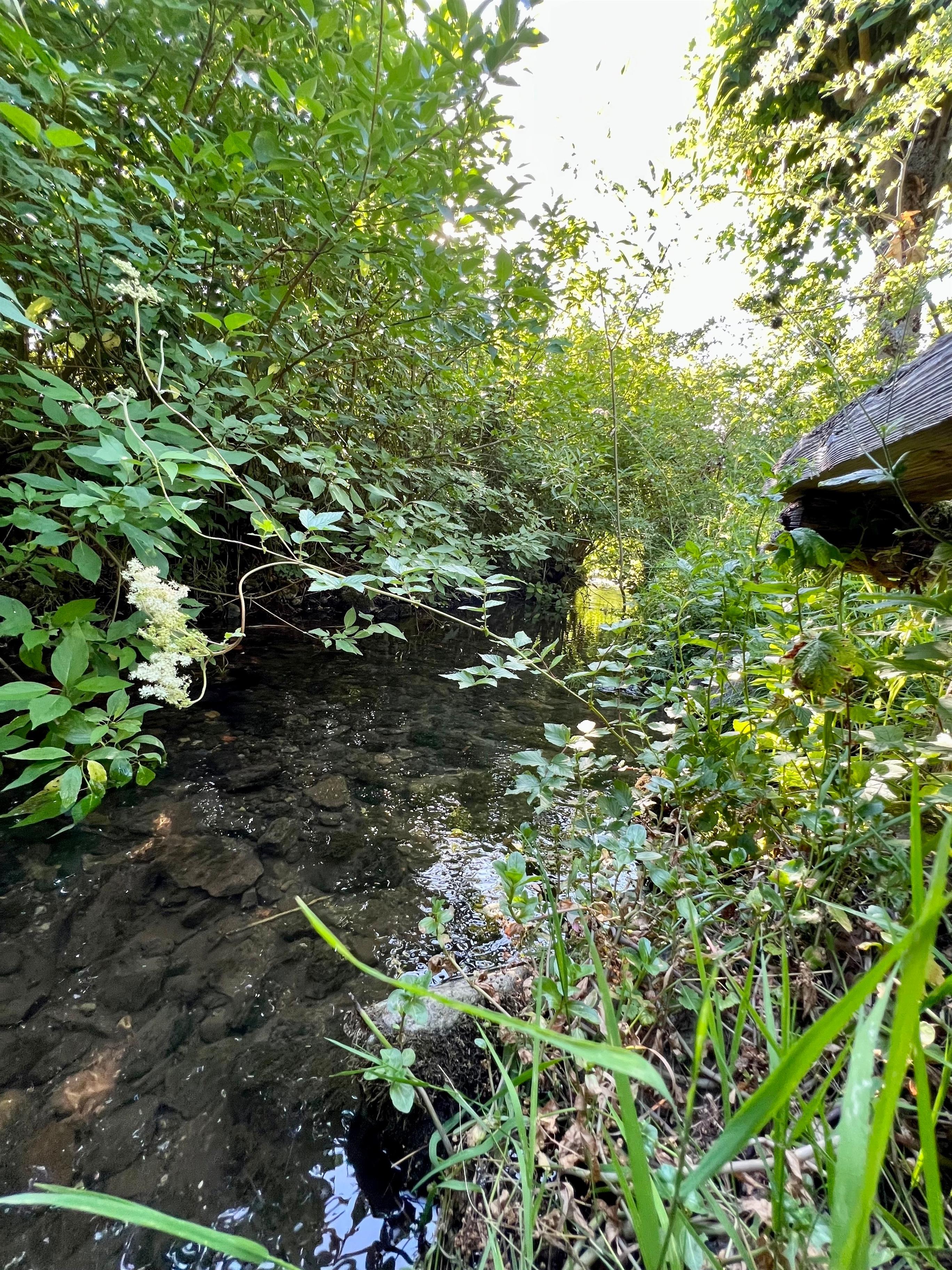 Das Plätschern des naturbelassener Naturbaches lässt sich bei geöffneter Balkontüre vom Schlafbereich aus genießen.