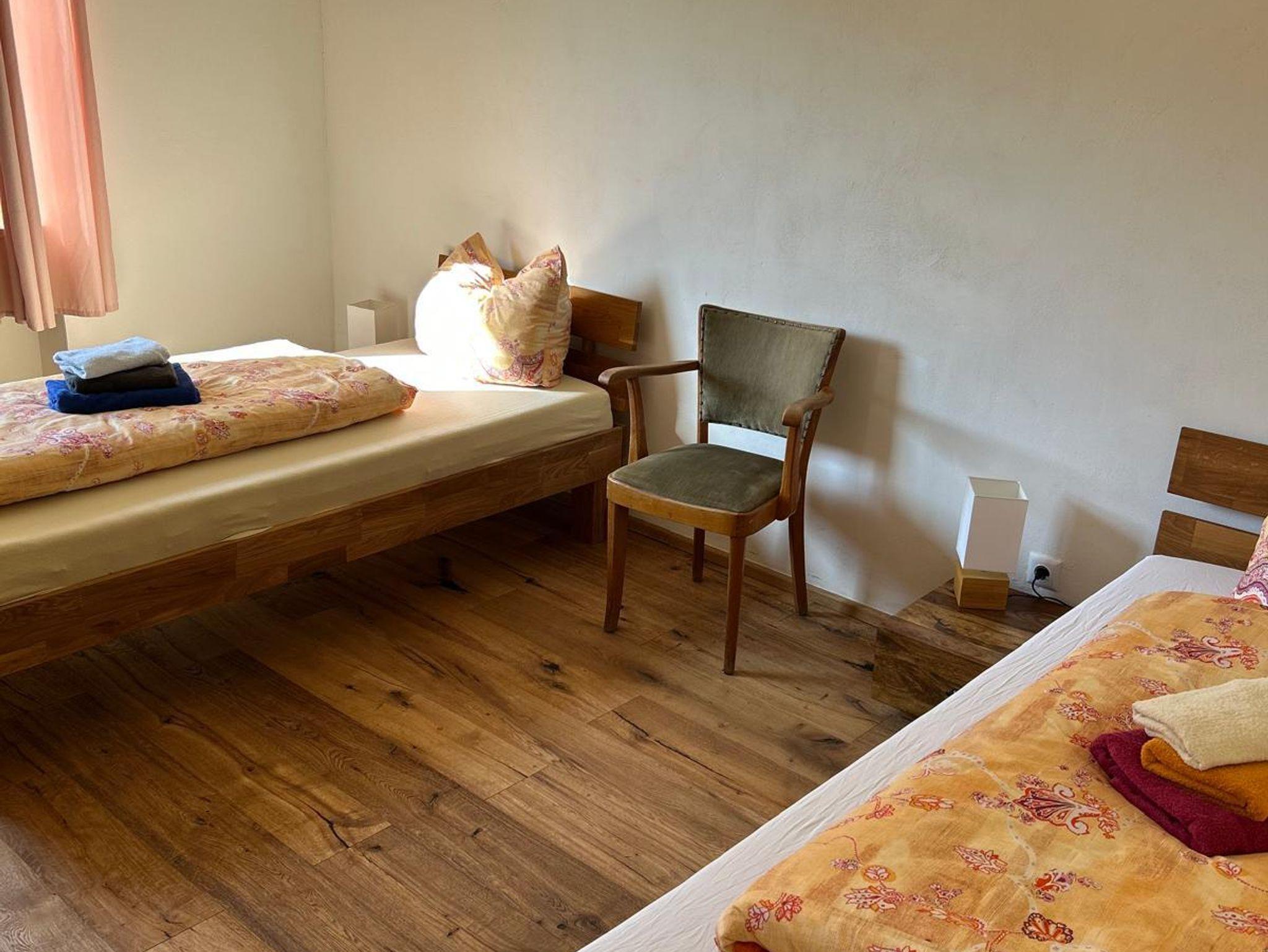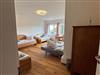 Zimmer Birke ist in Richtung Nordwest ausgerichtet. Es ist mit zwei Einzelbetten, einem Tisch, Stühlen, Nachttischen, Schrank und einem Waschbecken ausgestattet.
