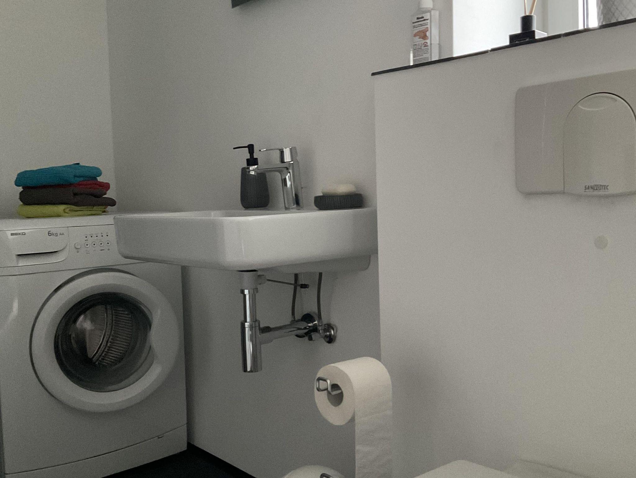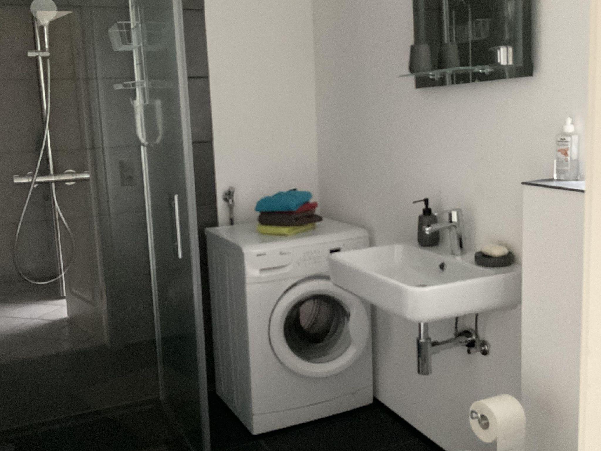 • 1 Badezimmer mit Badewanne und Waschmaschine