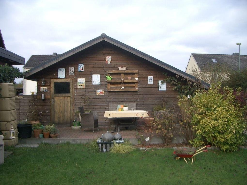 Hinter dem Einfamilienhaus befindet sich ein großer Garten mit einem Teich. Verschiedene Sitz -, Grill- und Sonnenmöglichkeiten, u.a. auch ein Strandkorb, laden im Garten zum Verweilen und Entspannenl ein.