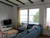 Vom Wohnzimmer mit offener Küche aus kannst Du diesen fantastischen Ausblick über den Garten, den Segelhafen und das Wasser der Förde genießen.