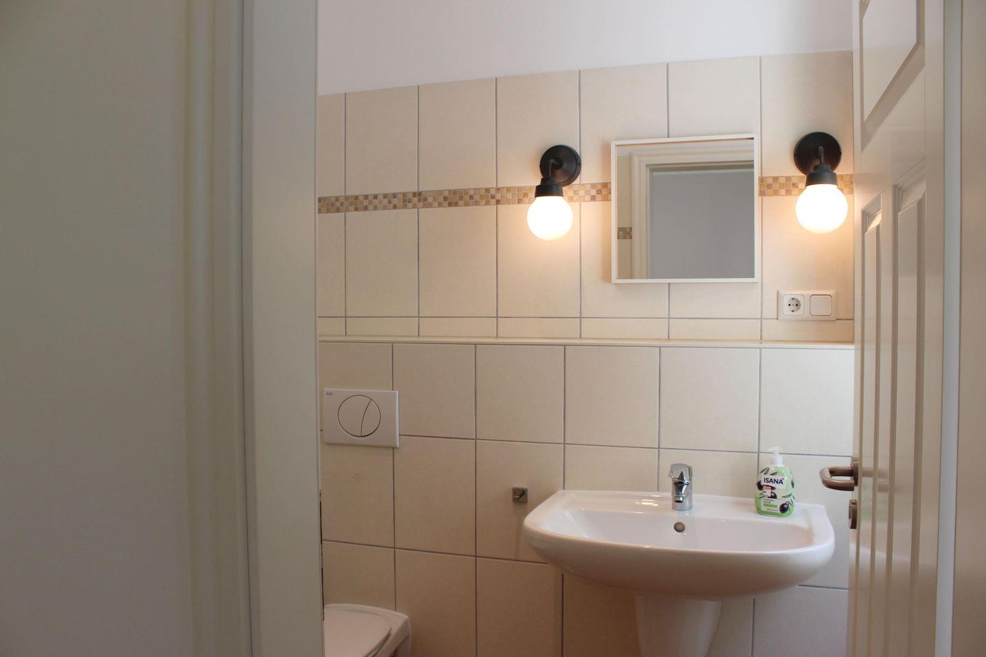 Auch das Badezimmer befindet sich im Erdgeschoss und bietet Dir eine Dusche sowie eine Sauna.