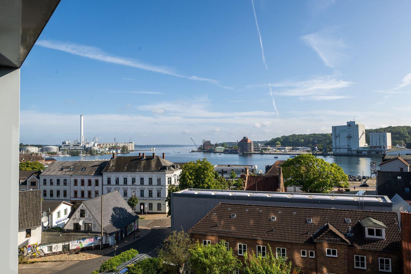 Das Apartment vereint städtisches Flair mit einem atemberaubenden Blick auf die Förde.