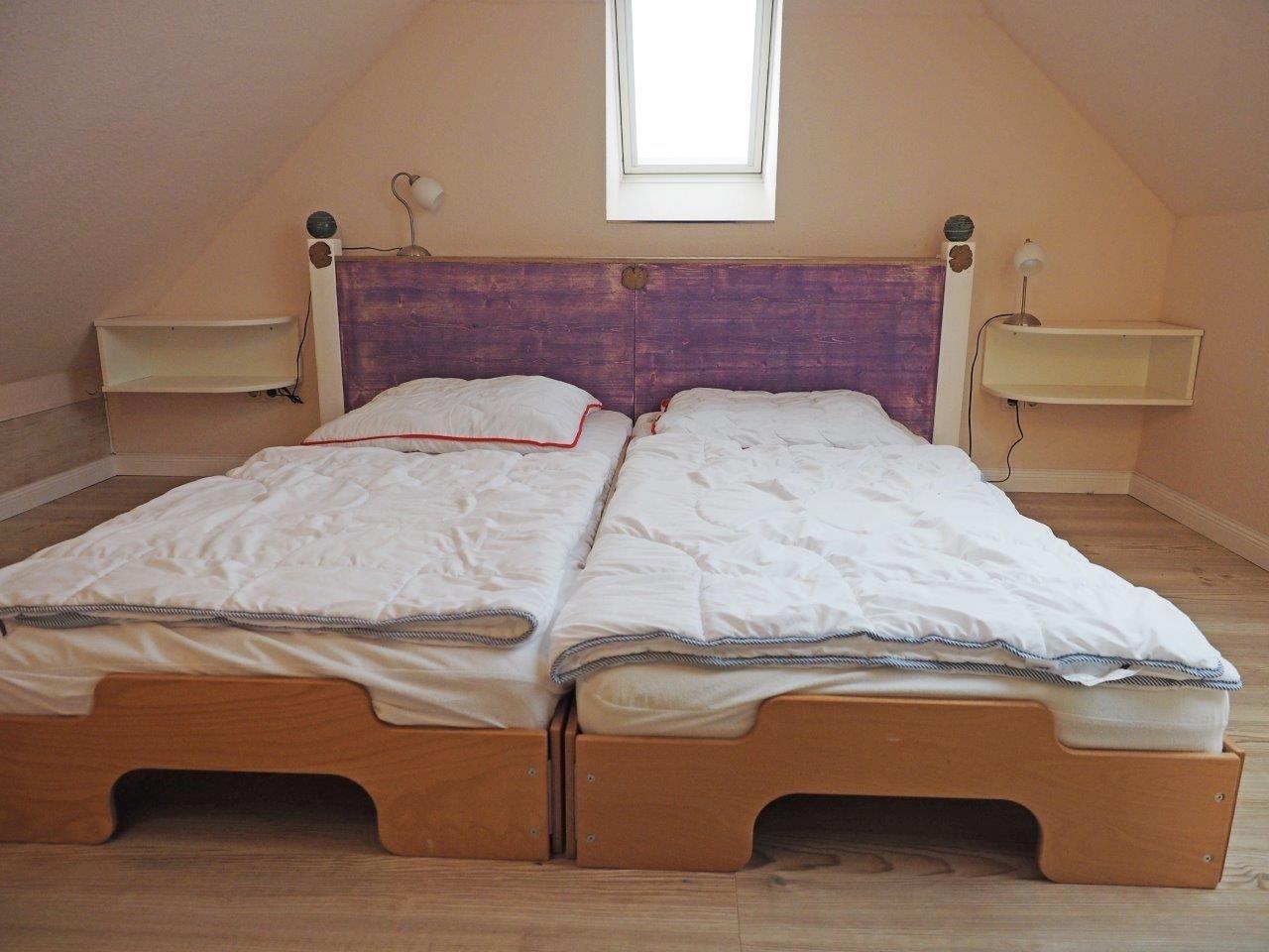 Die Unterkunft bietet Platz für 4 Erwachsene und 4 Kinder. Die Schlafzimmer im Obergeschoss sind jeweils mit einem komfortablen Redwood-Bett ausgestattet, während das Dachgeschoss zwei weitere Schlafzimmer mit Einzelbetten bietet, die bei Bedarf zusammengestellt werden können. Ein Gitterbett, ein Babybett und ein Hochstuhl sind vorhanden.