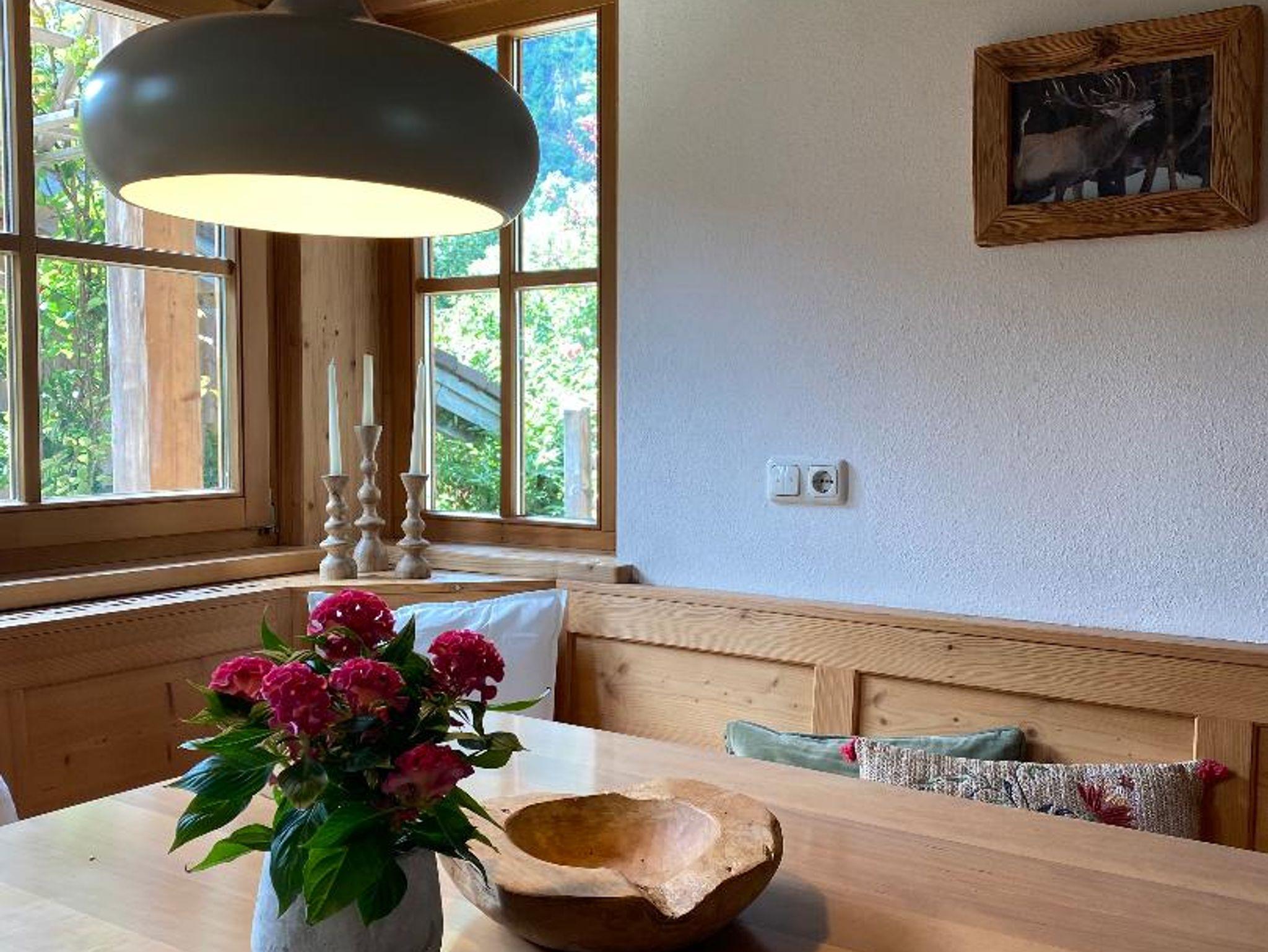 Das im modernen, aber trotzdem traditionellen Stil eingerichtete Haus verfügt über 3 große Schlafzimmer mit Doppelbetten (Breite von 160 und 180 cm) sowie 2 zusätzlichen Klappmatratzen, 1 Badezimmer Dusche und Badewanne, 1 Gäste-WC mit Dusche, eine voll ausgestattete Küche i, ein gemütliche Esszimmer sowie über ein großzügiges Wohnzimmer mit gemütlicher Sofalandschaft und Flachbild-Fernseher. Von den 2 Balkonen und der Terrasse aus können Sie die schöne Aussicht auf die umliegende Bergwelt mit der Maiwand und dem Riesenkopf genießen. Eine Terrasse ist überdacht und lädt auch bei schlechtem Wetter zum Verweilen und zum Essen im Außenbereich ein. Sowohl WLAN als auch 2 Parkplatzstellplätze direkt vorm Haus werden Ihnen kostenfrei zur Verfügung gestellt. Das Haus ist ein Nichtraucher-Haus. Die Preise beinhalten: Bettwäsche, Handtücher und Endreinigung. Bei Kurzaufenthalt von 1-2 Übernachtungen werden einmalig EUR 60,- als Zuschlag berechnet. Hunde sind gerne willkommen. Die Zusatzgebühr für Hunde beträgt 15€ pro Tag. Endreinigung: 70 Euro. Genießen Sie dieses liebevoll eingerichtete Feriendomizil und Ihren Urlaub in den bayerischen Bergen! Ihre Gastgeber freuen sich auf Ihren Besuch und stehen Ihnen gerne für Fragen zur Verfügung.
