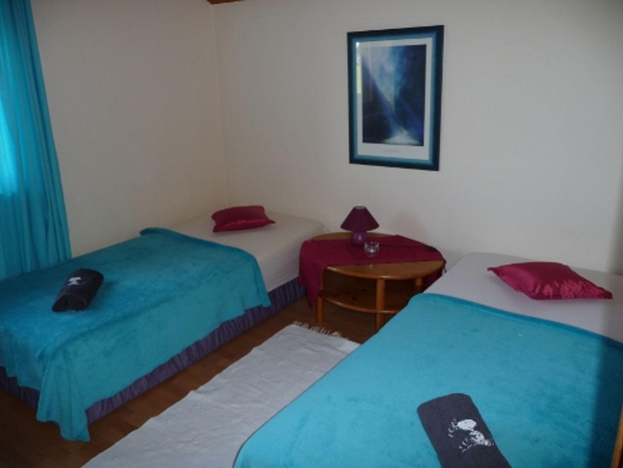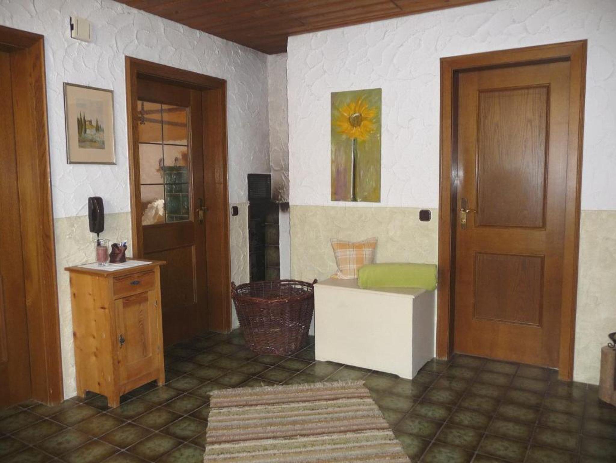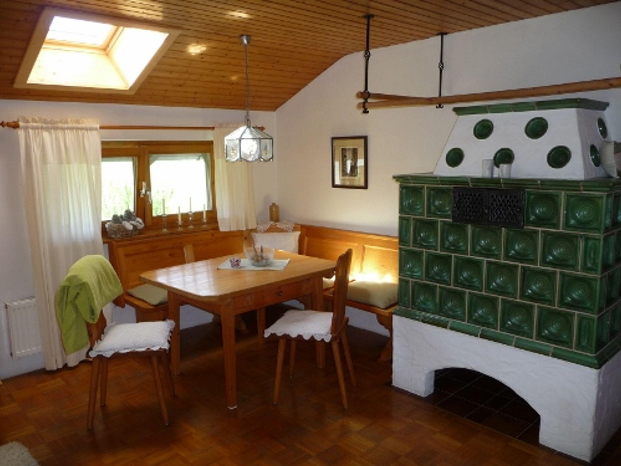 1 großer Wohnraum mit Kachelofen, Wohnküche mit Essecke, Geschirrspülmaschine und Backofen, 1 Schlafraum mit Doppelbett (180x200cm), 1 Schlafraum mit 2 Einzelbetten, Bad mit Wanne, Dusche und WC, 2 Balkone, SAT-TV mit Flachbildfernseher, DVD-Player, CD-Radio, WLAN kostenlos, Parkplatz vor dem Haus, Nichtraucherwohnung, Parkettböden, keine Haustiere.