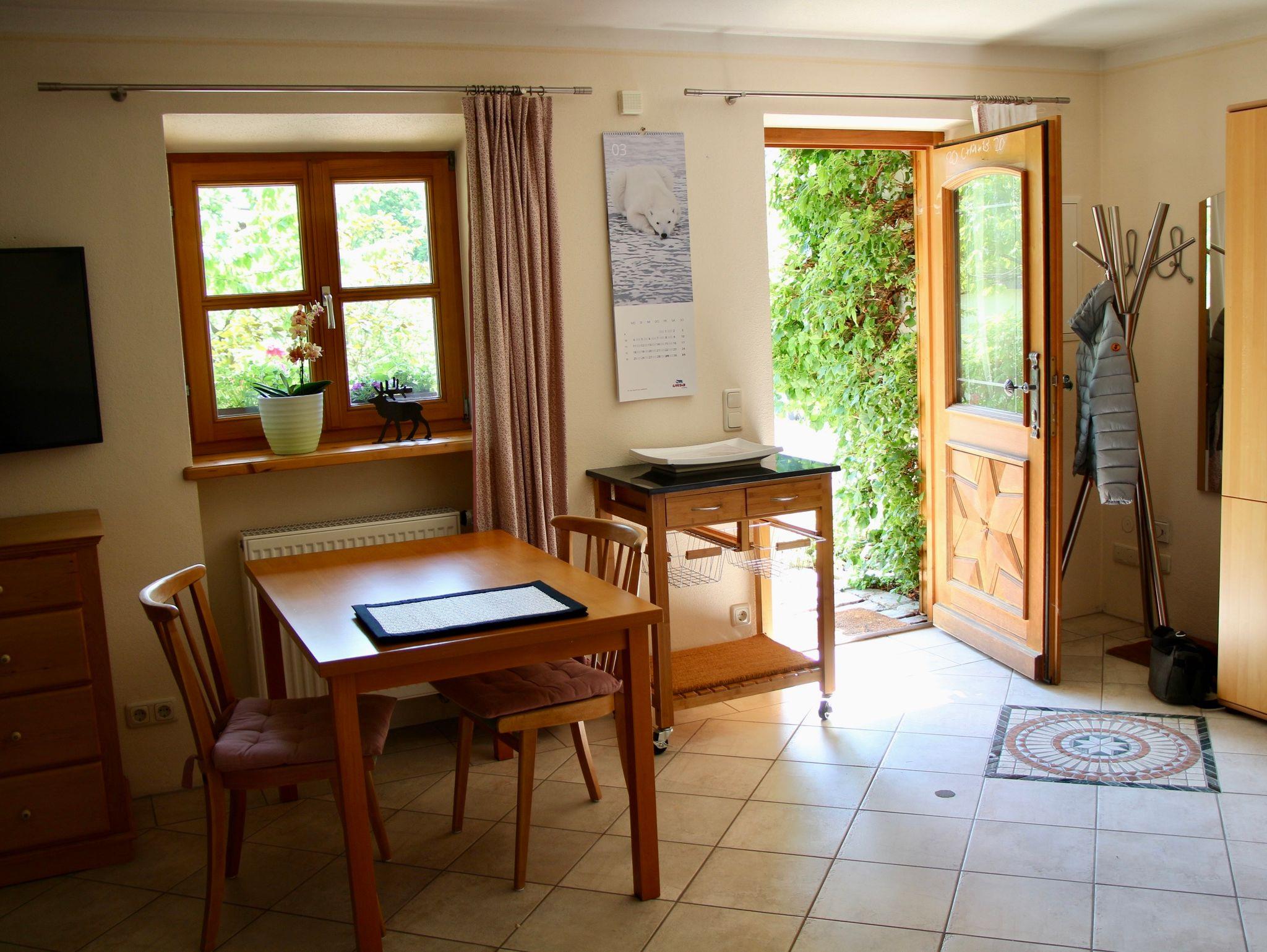 Modern ausgestattet ebenerdiges Appartement mit Fußbodenheizung, extra Badezimmer mit WC, Badewanne, sowie extra kleinem Abstellraum. Im Wohn-Schlafzimmer befindet sich ein großer Flachbild TV mit SAT. Die Küche ist voll ausgestattet mir Herd, Backofen, Ceranfeld, Geschirrspüler etc. und reichlich Geschirr und Gläser. Räder können ausgeliehen werden. Das WLAN, sowie der Parkplatz vor dem Haus sind kostenlos. Die Bettwäsche und Handtücher sind im Tagespreis enthalten. Ab hier können Sie in einer Stunde die Städte München, Salzburg und Innsbruck erreichen. Die Skigebiet Sudelfeld ist 15 km, Hocheck 8 km und das Skigebiet Kössen 30 km entfernt. Weitere Enfernungen: Bahnhof 1,6 km,Bushaltestelle 0,2 km, Freibad 1,8 km