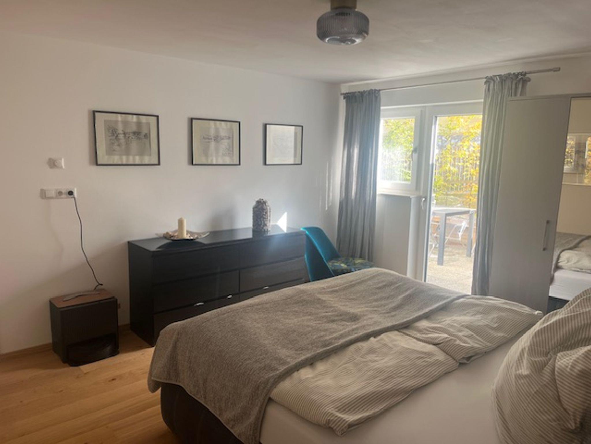 Die Ferienwohnung ist sehr geräumig und liebevoll eingerichtet und erstreckt sich über zwei Stockwerke. Die Ferienwohnung verfügt über ein Bad mit Dusche und Badewanne, ein geräumiges Schlafzimmer mit Boxspringbett, einer sehr gut ausgestatteten Küche und ein Wohn/Esszimmer in dem ggf. zwei weitere einzelne Betten mit guten Matratzen aufgestellt werden können. Darüber hinaus gibt es zwei Balkone sowie eine Terrasse. Der am Haus anliegende Garten darf auch genutzt werden.