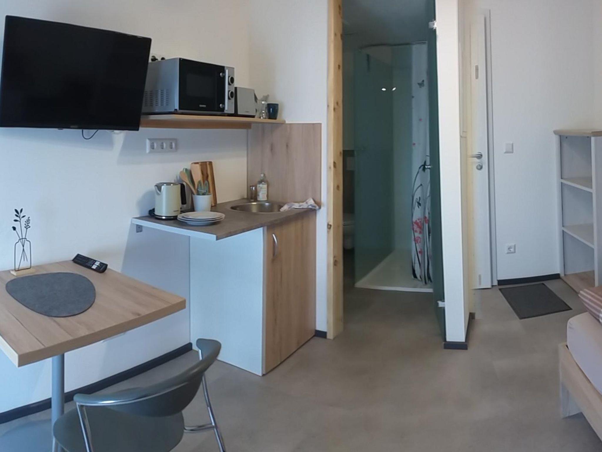 Die Zimmer verfügen über 24qm im ersten Stock mit sanierten Bädern einer Küchenzeile mit Toaster, Mikrowelle, Wasserkocher, Kühlschrank. Die Küche ist mit 2 Induktionsplatten ausgestattet.
