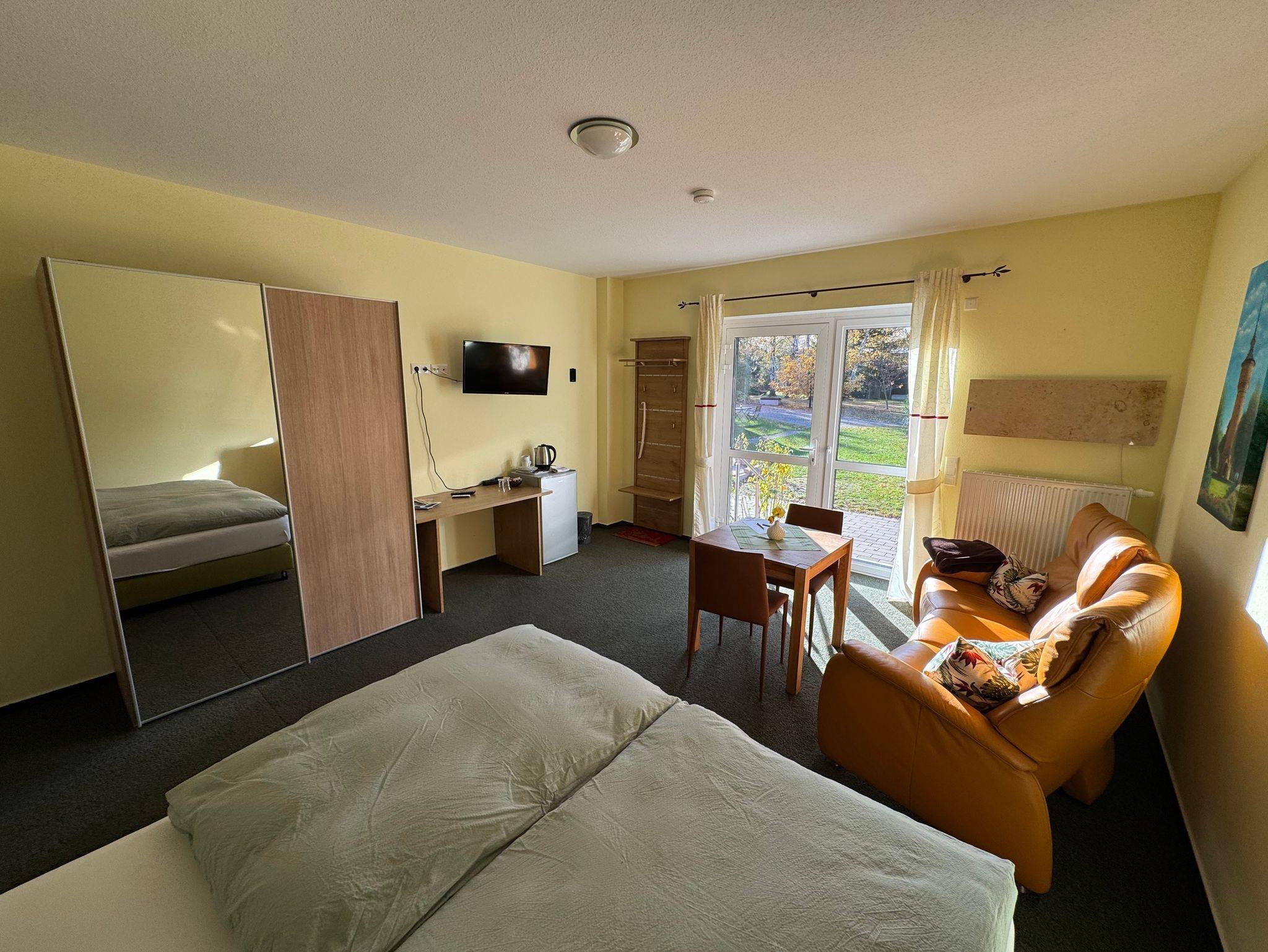 Ausstattung: Bad mit Dusche, im Zimmer Fernseher, Heizung, Internet, Sat-TV, Warmwasser, WLAN, Kühlschrank, Wasserkocher
