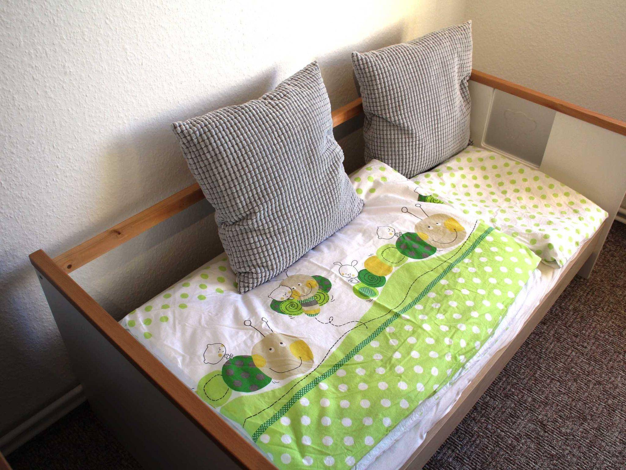 Die helle und freundliche Ferienwohnung verfügt über 1 Schlafzimmer und 1 Wohnzimmer mit Schlafmöglichkeit sowie ein weiteres Schlafzimmer mit Spielangeboten. Die offene Küche ist vollständig ausgestattet, u.a. mit Geschirrspüler und Mikrowelle. Im Bad befindet sich eine Badewanne und Waschmaschine. Im Reisepreis bereits inbegriffen sind die Endreinigung, die Bettwäsche und die Handtücher.
