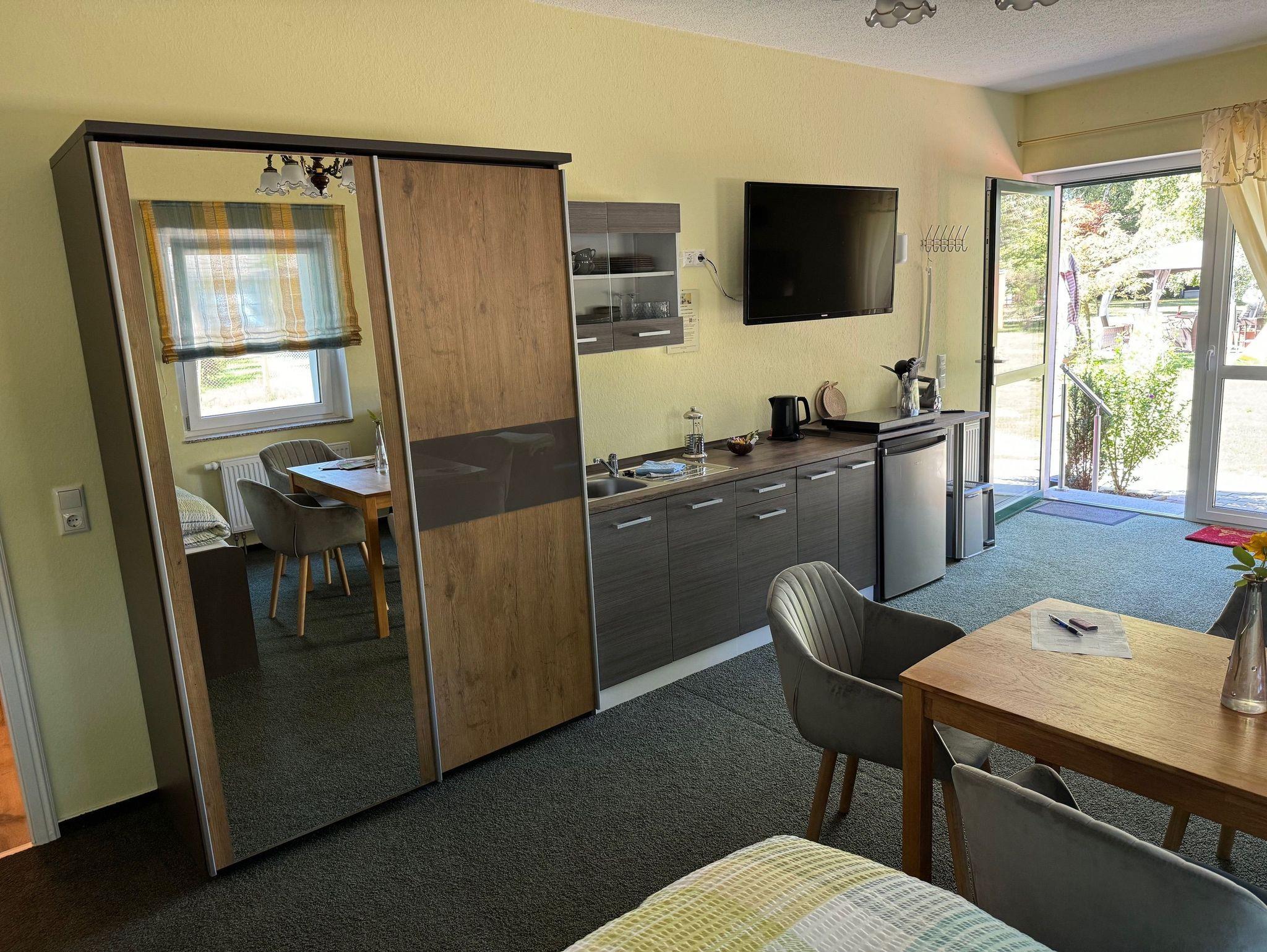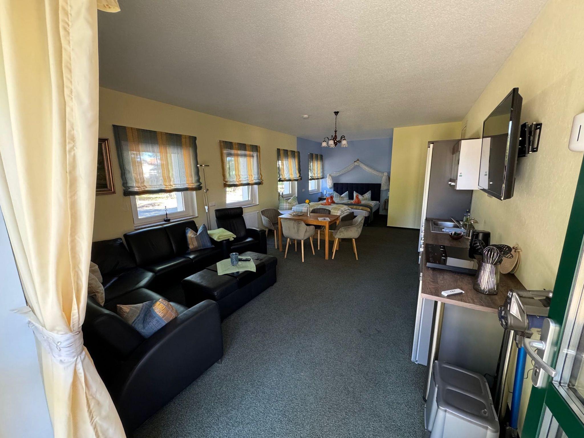 1 großes Apartment (Nr. 1) für 2 bis 4 Personen mit abgetrennter Küchenzeile, gemütlicher Sofaecke und Dusche