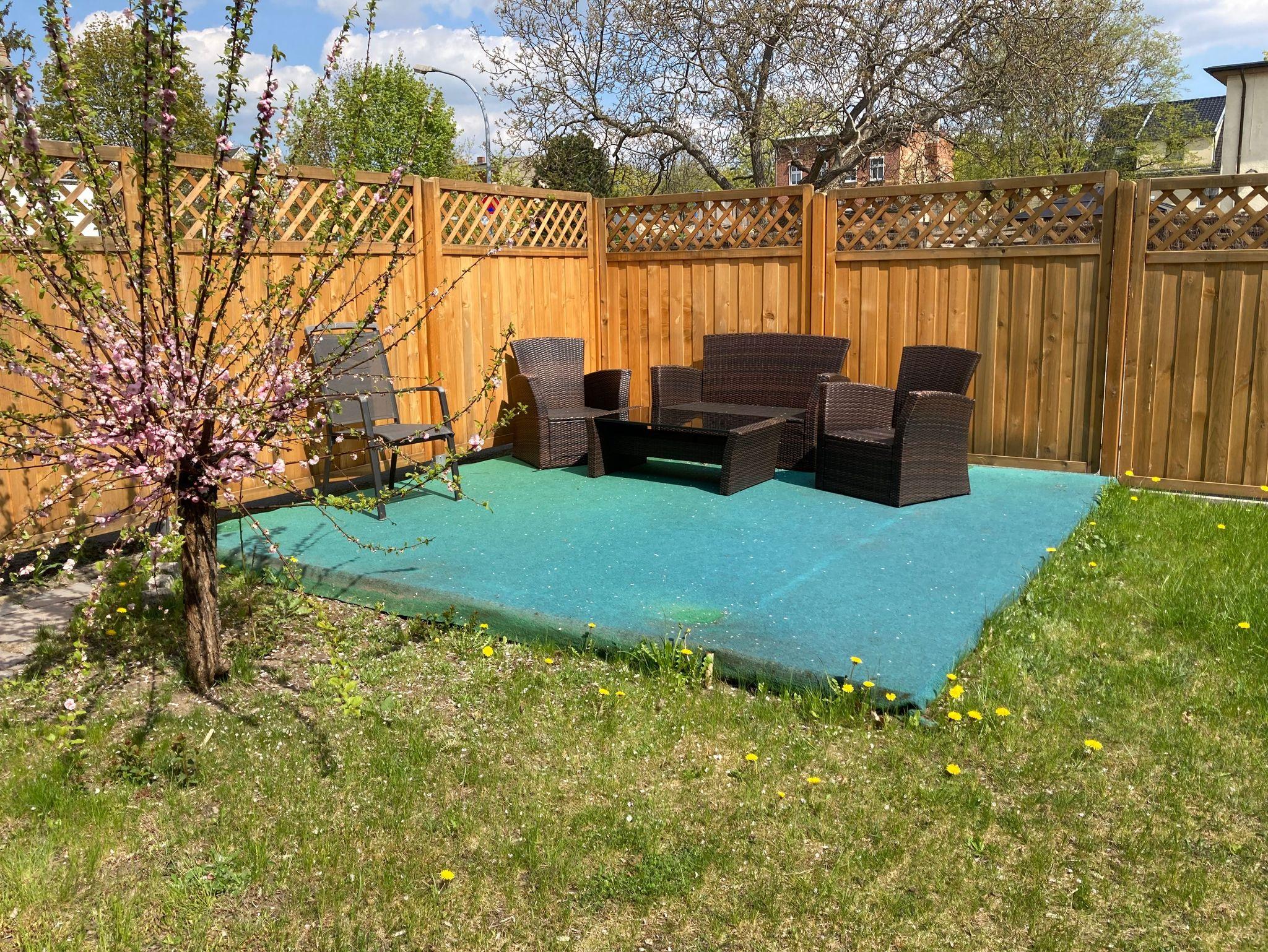 Im umzäunten Grundstück kann der Garten inkl. Grillecke gern genutzt werden.