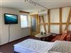 Das Zimmer im Erdgeschoss ist ca. 15 qm groß und verfügt über 2 getrennte Betten, das Zimmer im Obergeschoss ist ca. 18 qm groß und verfügt ebenfalls über 2 getrennte Betten.
