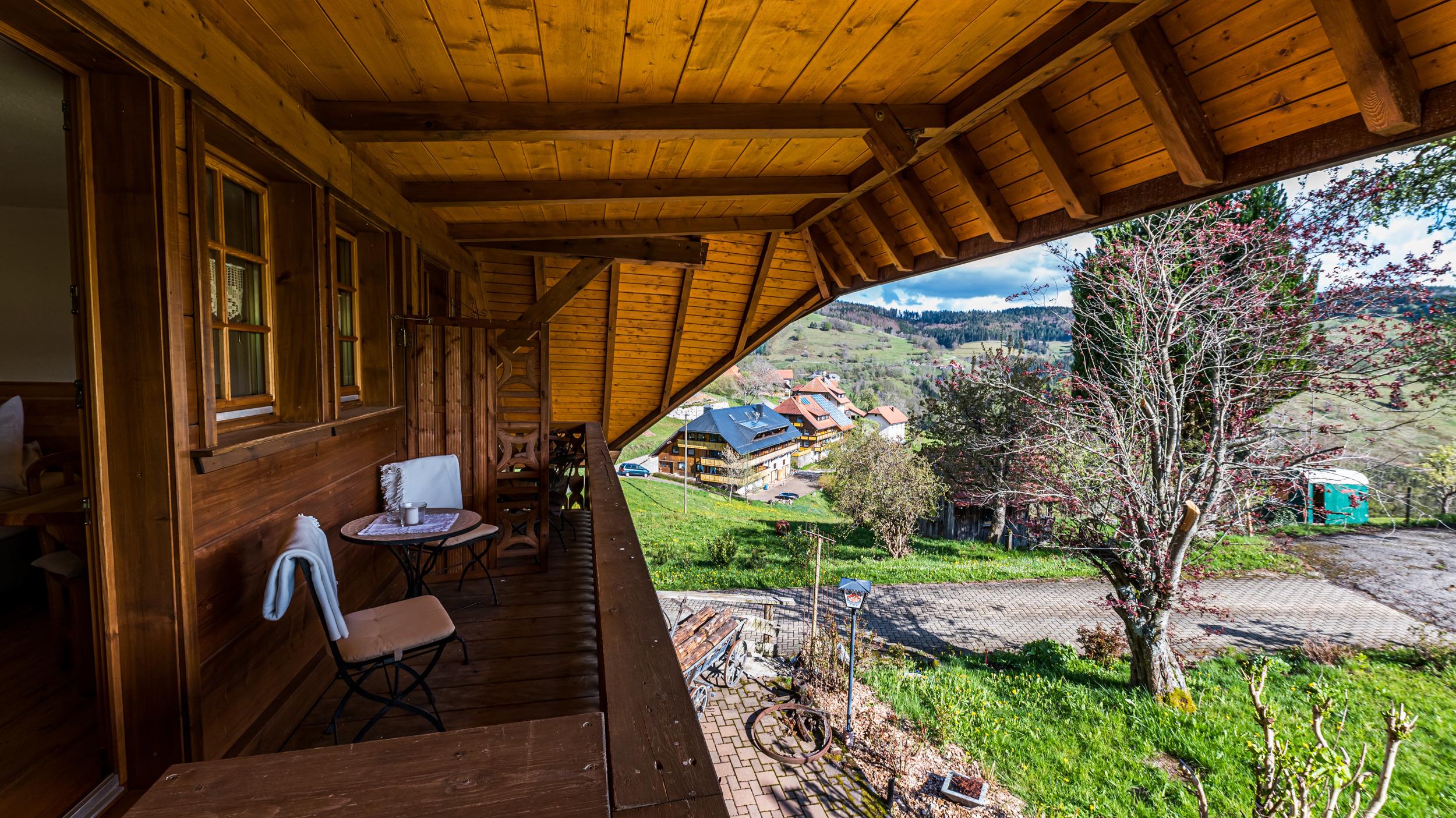 Genießen Sie auf dem möblierter Südbalkon unter unserem erhabenen Walmdach die klare Schwarzwaldluft.