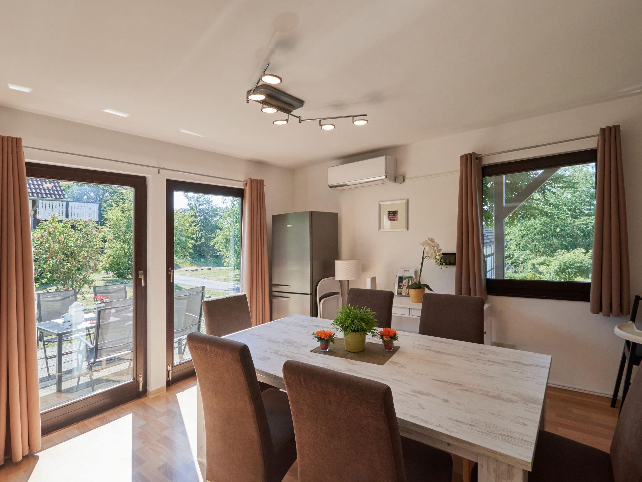 Holiday village "Frankenau", surrounded by trees and meadows. Outside the resort, 2 km from the centre of Frankenau, in the district Nationalpark Kellerwald, on a slope, 28 km from the lake. For shared use: natural state property, pond. In the complex: restaurant with TV, kiosk, sun terrace. Bread roll service. Grocery 8 km, restaurant 2 km, bakery 2 km, bicycle rental 15 km, bus stop 400 m, railway station "Frankenberg" 15 km, outdoor swimming pool 6 km, indoor swimming pool 15 km, thermal baths "Bad Wildungen-Reinhardshausen" 20 km, bathing lake 12 km. Golf course (18 hole) 25 km, tennis, indoor tennis centre 400 m, walking paths from the house 100 m, cycle lane 500 m, gondola lift 27 km, fishing possibilities 700 m. Nearby attractions: KellerwaldUhr 500 m, Schloss Waldeck 27 km. Well-known ski regions can easily be reached: Winterberg 45 km, Willingen 50 km. Well-known lakes can easily be reached: Edersee - Herzhausen 13 km. Hiking paths: Nationalpark Kellerwald 500 m. Please note: suitable for families. Neighbourhood highly sensitive to noise. Quietness and good behaviour expected. Some of the holiday homes can be reached via steps. At the park entrance there is a bistro/café with a sun terrace, Sunday breakfast buffet, children's cinema, table football (limited opening times outside of the season). There is also the option of using a washing machine and dryer for a fee.