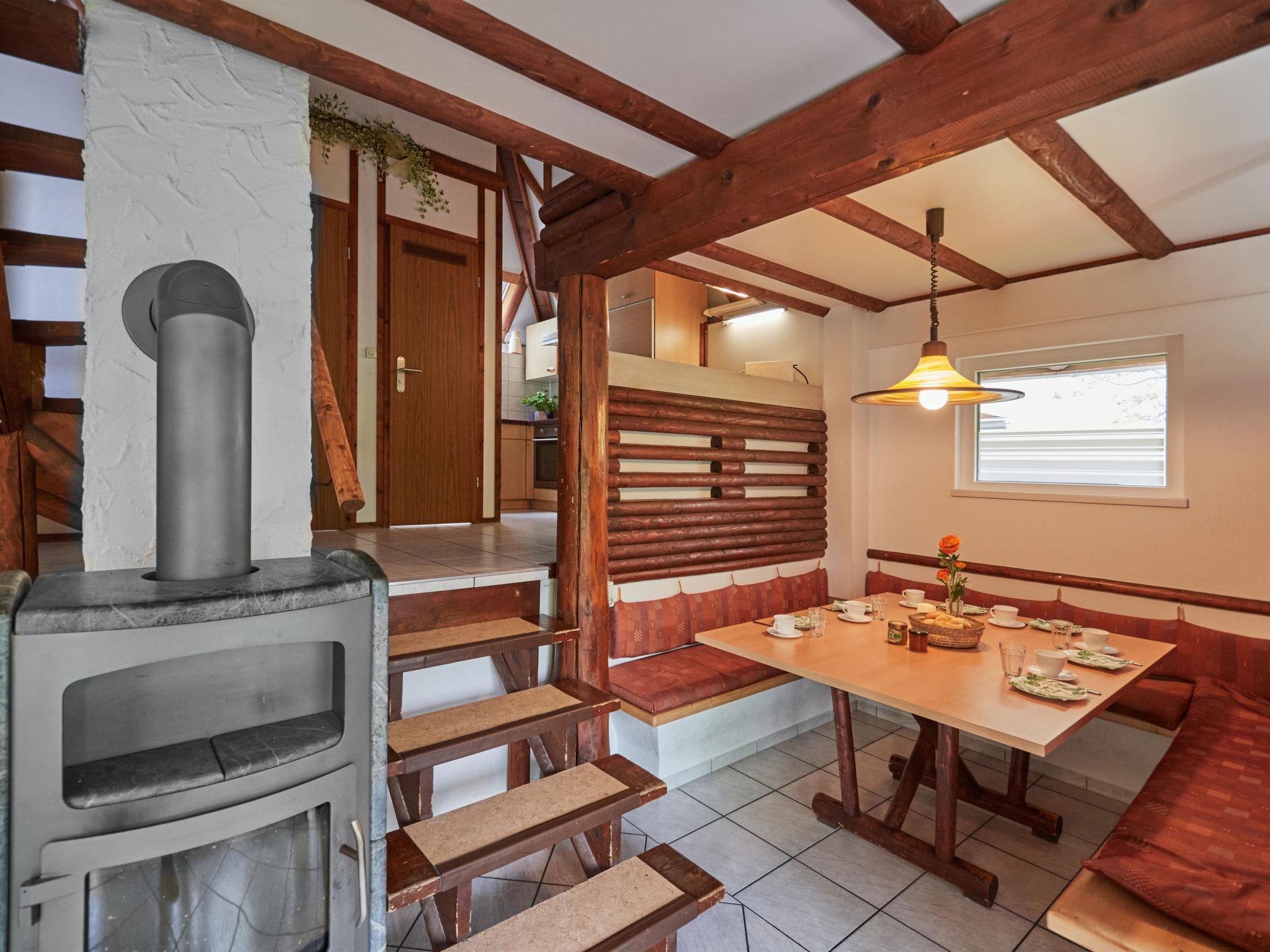 Holiday village "Frankenau", surrounded by trees and meadows. Outside the resort, 2 km from the centre of Frankenau, in the district Nationalpark Kellerwald, on a slope, 28 km from the lake. For shared use: natural state property, pond. In the complex: restaurant with TV, kiosk, sun terrace. Bread roll service. Grocery 8 km, restaurant 2 km, bakery 2 km, bicycle rental 15 km, bus stop 400 m, railway station "Frankenberg" 15 km, outdoor swimming pool 6 km, indoor swimming pool 15 km, thermal baths "Bad Wildungen-Reinhardshausen" 20 km, bathing lake 12 km. Golf course (18 hole) 25 km, tennis, indoor tennis centre 400 m, walking paths from the house 100 m, cycle lane 500 m, gondola lift 27 km, fishing possibilities 700 m. Nearby attractions: KellerwaldUhr 500 m, Schloss Waldeck 27 km. Well-known ski regions can easily be reached: Winterberg 45 km, Willingen 50 km. Well-known lakes can easily be reached: Edersee - Herzhausen 13 km. Hiking paths: Nationalpark Kellerwald 500 m. Please note: suitable for families. Neighbourhood highly sensitive to noise. Quietness and good behaviour expected. Some of the holiday homes can be reached via steps. At the park entrance there is a bistro/café with a sun terrace, Sunday breakfast buffet, children's cinema, table football (limited opening times outside of the season). There is also the option of using a washing machine and dryer for a fee.