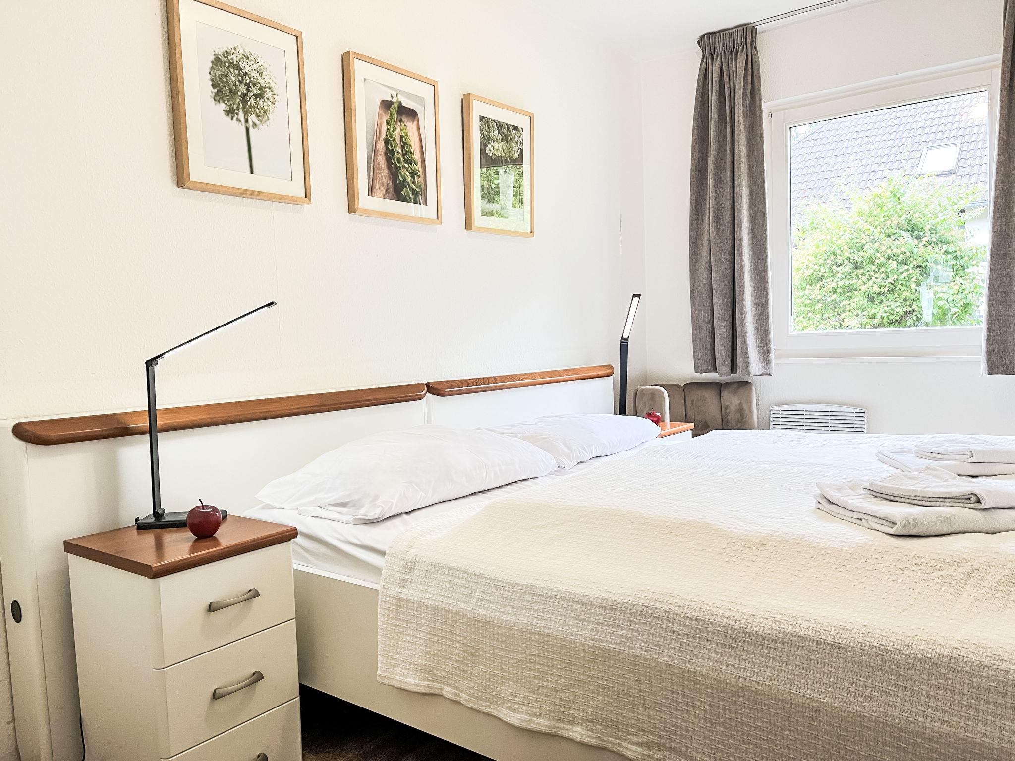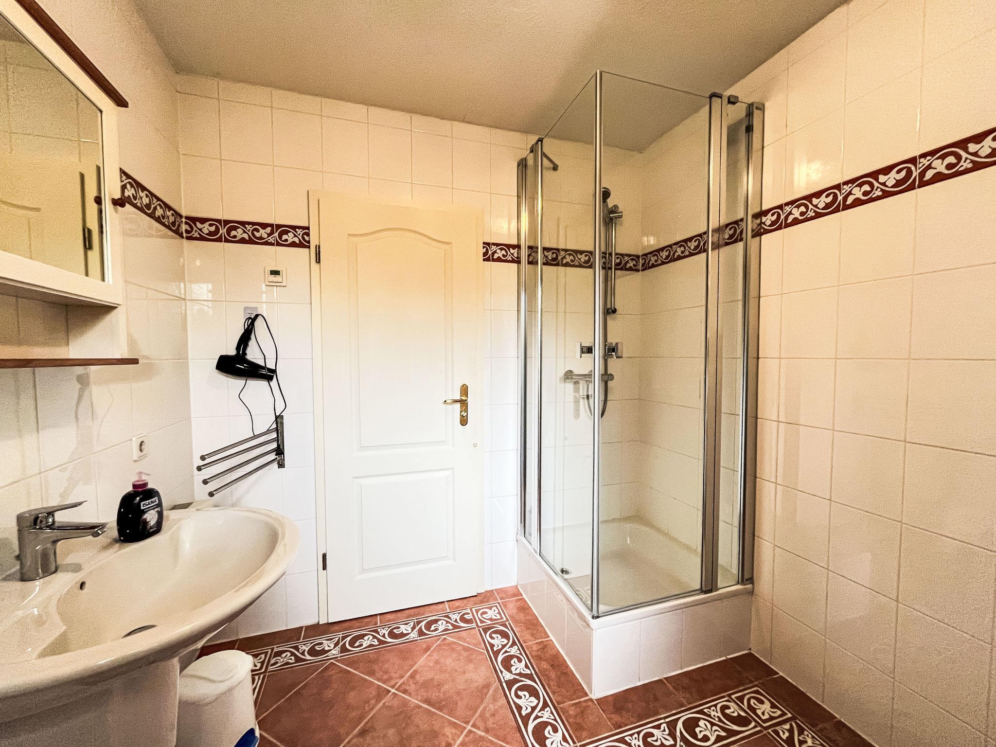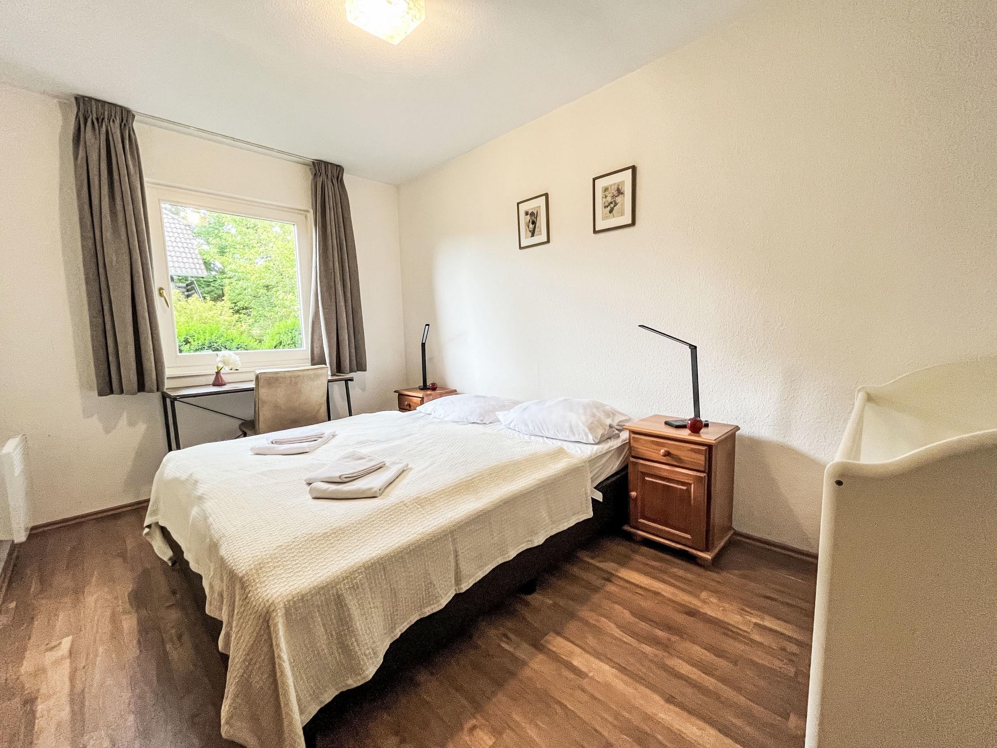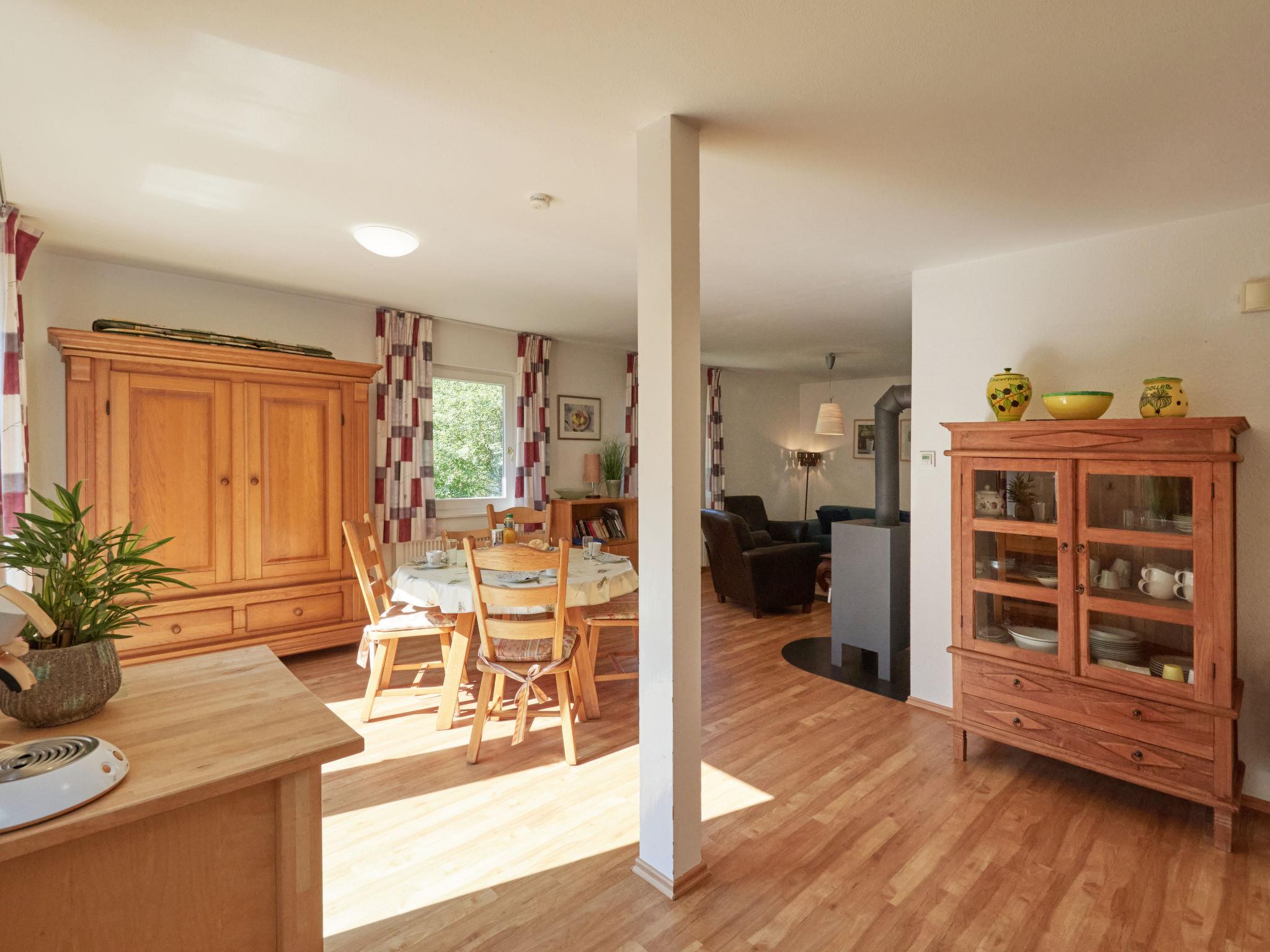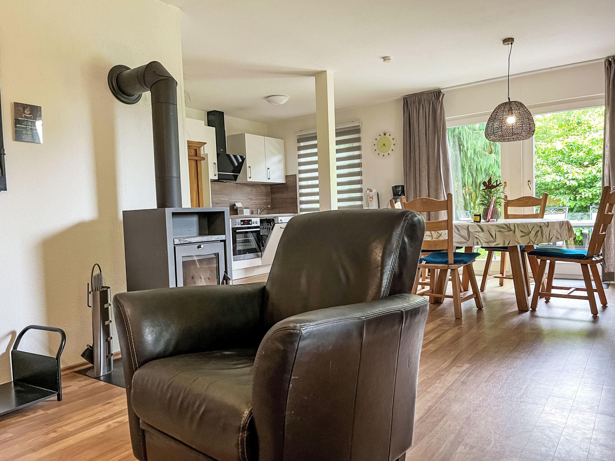 "Am Sternberg 226", 3-room apartment 75 m2, on the ground floor. Cosy furnishings: living/dining room 40 m2 with cable TV (flat screen), hi-fi system and wood-burning stove. Exit to the garden, to the terrace. 2 rooms 10 m2, each room with 1 double bed (180 cm, length 200 cm). Kitchenette (oven, dishwasher, 4 ceramic glass hob hotplates, toaster, kettle, electric coffee machine). Shower/WC. Electric heating. Large terrace 30 m2. Terrace furniture, barbecue (portable). Facilities: children's high chair, logs (extra). Internet (WiFi, free). Parking at 10 m. Please note: non-smokers only. Maximum 2 pets/ dogs allowed. Private entrance, smoke alarm, fire extinguisher.