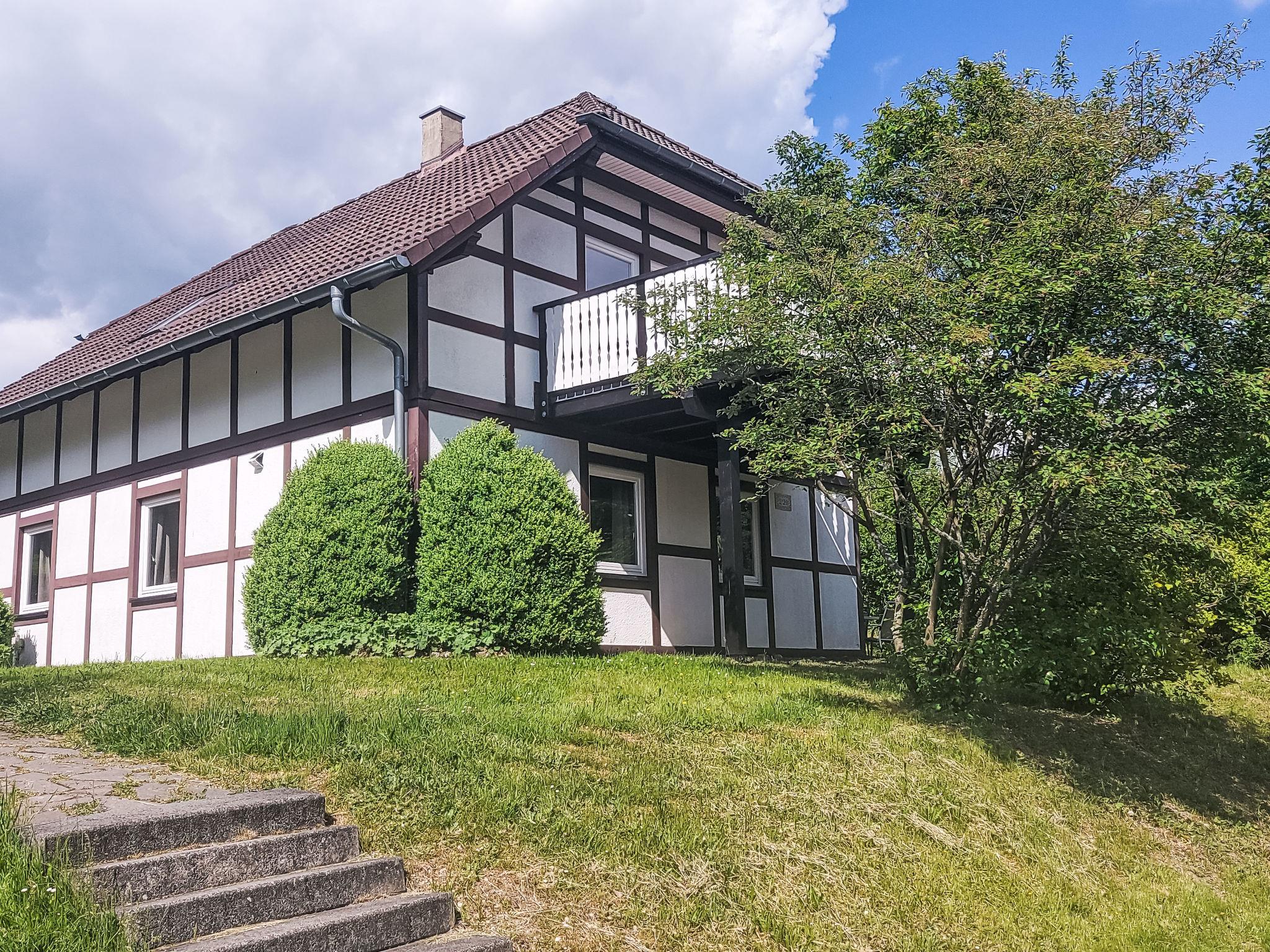 Holiday village "Frankenau", surrounded by trees and meadows. Outside the resort, 2 km from the centre of Frankenau, in the district Nationalpark Kellerwald, on a slope, 28 km from the lake. For shared use: natural state property, pond. In the complex: restaurant with TV, kiosk, sun terrace. Bread roll service. Grocery 8 km, restaurant 2 km, bakery 2 km, bicycle rental 15 km, bus stop 400 m, railway station "Frankenberg" 15 km, outdoor swimming pool 6 km, indoor swimming pool 15 km, thermal baths "Bad Wildungen-Reinhardshausen" 20 km, bathing lake 12 km. Golf course (18 hole) 25 km, tennis, indoor tennis centre 400 m, walking paths from the house 100 m, cycle lane 500 m, gondola lift 27 km, fishing possibilities 700 m. Nearby attractions: KellerwaldUhr 500 m, Schloss Waldeck 27 km. Well-known ski regions can easily be reached: Winterberg 45 km, Willingen 50 km. Well-known lakes can easily be reached: Edersee - Herzhausen 13 km. Hiking paths: Nationalpark Kellerwald 500 m. Please note: suitable for families. Neighbourhood highly sensitive to noise. Quietness and good behaviour expected. Some of the holiday homes can be reached via steps. At the park entrance there is a bistro/café with a sun terrace, Sunday breakfast buffet, children's cinema, table football (limited opening times outside of the season). There is also the option of using a washing machine and dryer for a fee.