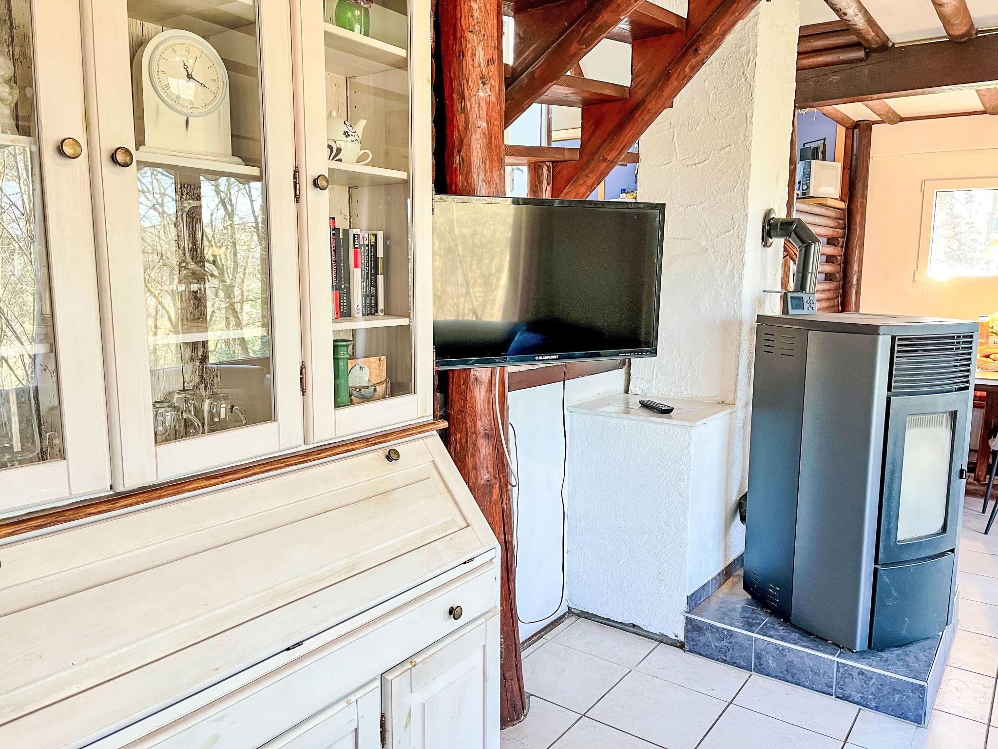 "Tischlein, deck dich", 4-room house 75 m2 on 3 levels. Partly renovated in 2021, cosy and wooden furniture furnishings: open living/dining room with dining nook, digital TV, flat screen, radio and wood-burning stove. Exit to the terrace. Upper floor: 1 room with sloping ceilings with rooflight with 1 double bed (2 x 90 cm, length 190 cm), TV. With sloping ceilings, open kitchen (oven, dishwasher, 4 ceramic glass hob hotplates, microwave, electric coffee machine). Shower/WC, sep. WC. 2nd upper floor: 1 room with sloping ceilings with 1 double bed (2 x 90 cm, length 190 cm). Exit to the balcony. 1 room with sloping ceilings with 2 beds (90 cm, length 190 cm), TV. Exit to the balcony. Electric heating, air-conditioning. Carpet. Balcony, terrace, lawn 100 m2. Terrace furniture. Facilities: logs (extra). Internet (WiFi, free). Parking at 50 m. Please note: non-smoking house. Maximum 2 small pets/ dogs allowed. Smoke alarm, fire extinguisher. Trampolin for shared use. The fireplace is a pellet stove.