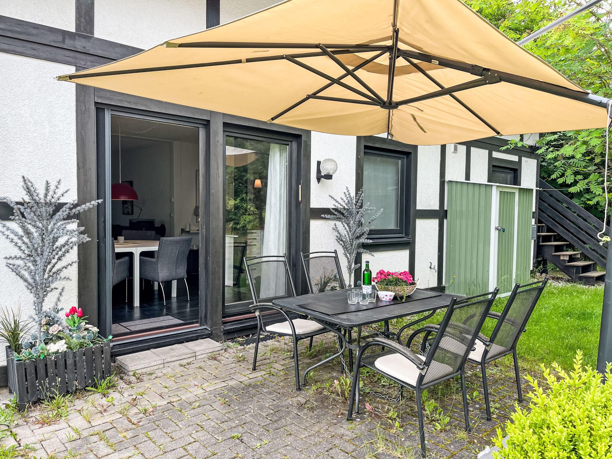 Holiday village "Frankenau", surrounded by trees and meadows. Outside the resort, 2 km from the centre of Frankenau, in the district Nationalpark Kellerwald, on a slope, 28 km from the lake. For shared use: natural state property, pond. In the complex: restaurant with TV, kiosk, sun terrace. Bread roll service. Grocery 8 km, restaurant 2 km, bakery 2 km, bicycle rental 15 km, bus stop 400 m, railway station "Frankenberg" 15 km, outdoor swimming pool 6 km, indoor swimming pool 15 km, thermal baths "Bad Wildungen-Reinhardshausen" 20 km, bathing lake 12 km. Golf course (18 hole) 25 km, tennis, indoor tennis centre 400 m, walking paths from the house 100 m, cycle lane 500 m, gondola lift 27 km, fishing possibilities 700 m. Nearby attractions: KellerwaldUhr 500 m, Schloss Waldeck 27 km. Well-known ski regions can easily be reached: Winterberg 45 km, Willingen 50 km. Well-known lakes can easily be reached: Edersee - Herzhausen 13 km. Hiking paths: Nationalpark Kellerwald 500 m. Please note: suitable for families. Neighbourhood highly sensitive to noise. Quietness and good behaviour expected. Some of the holiday homes can be reached via steps. At the park entrance there is a bistro/café with a sun terrace, Sunday breakfast buffet, children's cinema, table football (limited opening times outside of the season). There is also the option of using a washing machine and dryer for a fee.