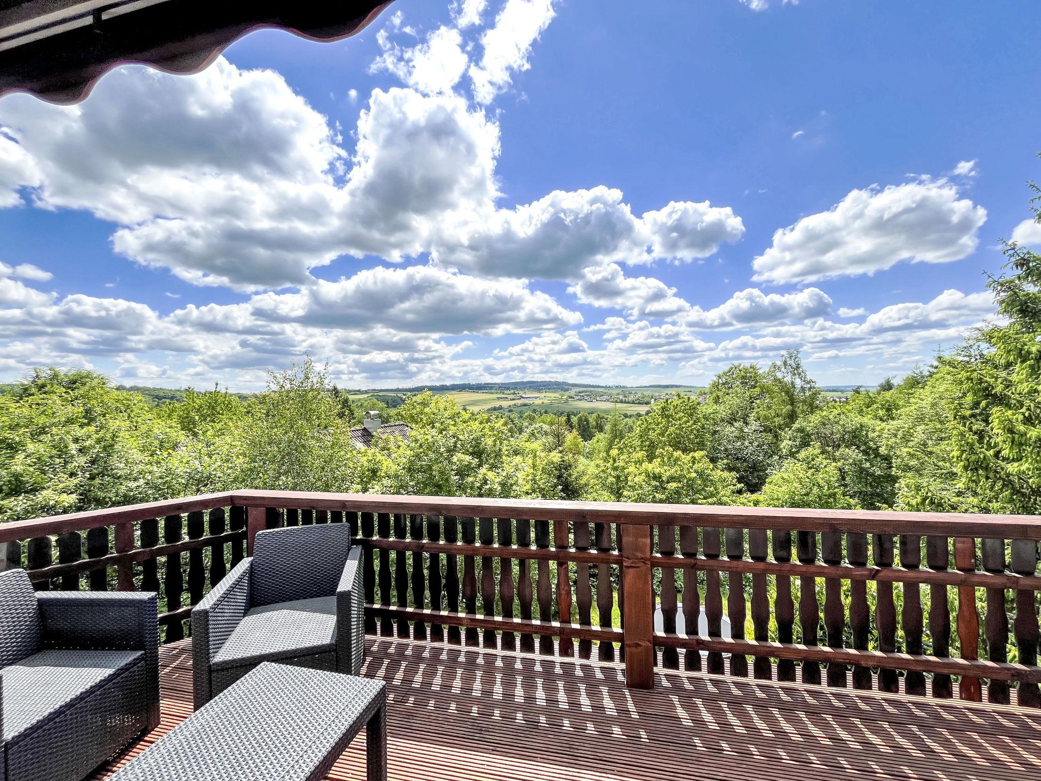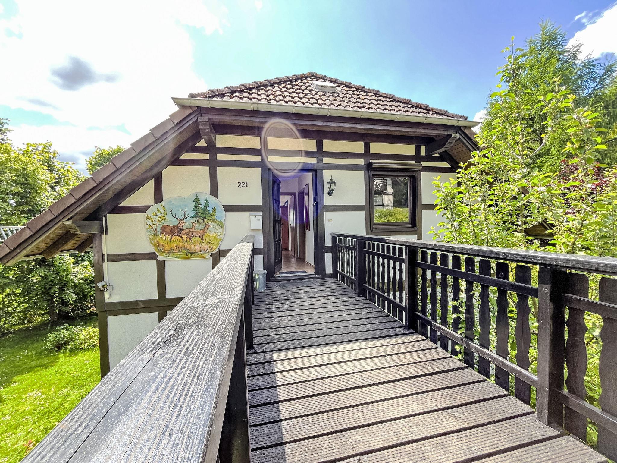Holiday village "Frankenau", surrounded by trees and meadows. Outside the resort, 2 km from the centre of Frankenau, in the district Nationalpark Kellerwald, on a slope, 28 km from the lake. For shared use: natural state property, pond. In the complex: restaurant with TV, kiosk, sun terrace. Bread roll service. Grocery 8 km, restaurant 2 km, bakery 2 km, bicycle rental 15 km, bus stop 400 m, railway station "Frankenberg" 15 km, outdoor swimming pool 6 km, indoor swimming pool 15 km, thermal baths "Bad Wildungen-Reinhardshausen" 20 km, bathing lake 12 km. Golf course (18 hole) 25 km, tennis, indoor tennis centre 400 m, walking paths from the house 100 m, cycle lane 500 m, gondola lift 27 km, fishing possibilities 700 m. Nearby attractions: KellerwaldUhr 500 m, Schloss Waldeck 27 km. Well-known ski regions can easily be reached: Winterberg 45 km, Willingen 50 km. Well-known lakes can easily be reached: Edersee - Herzhausen 13 km. Hiking paths: Nationalpark Kellerwald 500 m. Please note: suitable for families. Neighbourhood highly sensitive to noise. Quietness and good behaviour expected. Some of the holiday homes can be reached via steps. At the park entrance there is a bistro/café with a sun terrace, Sunday breakfast buffet, children's cinema, table football (limited opening times outside of the season). There is also the option of using a washing machine and dryer for a fee.