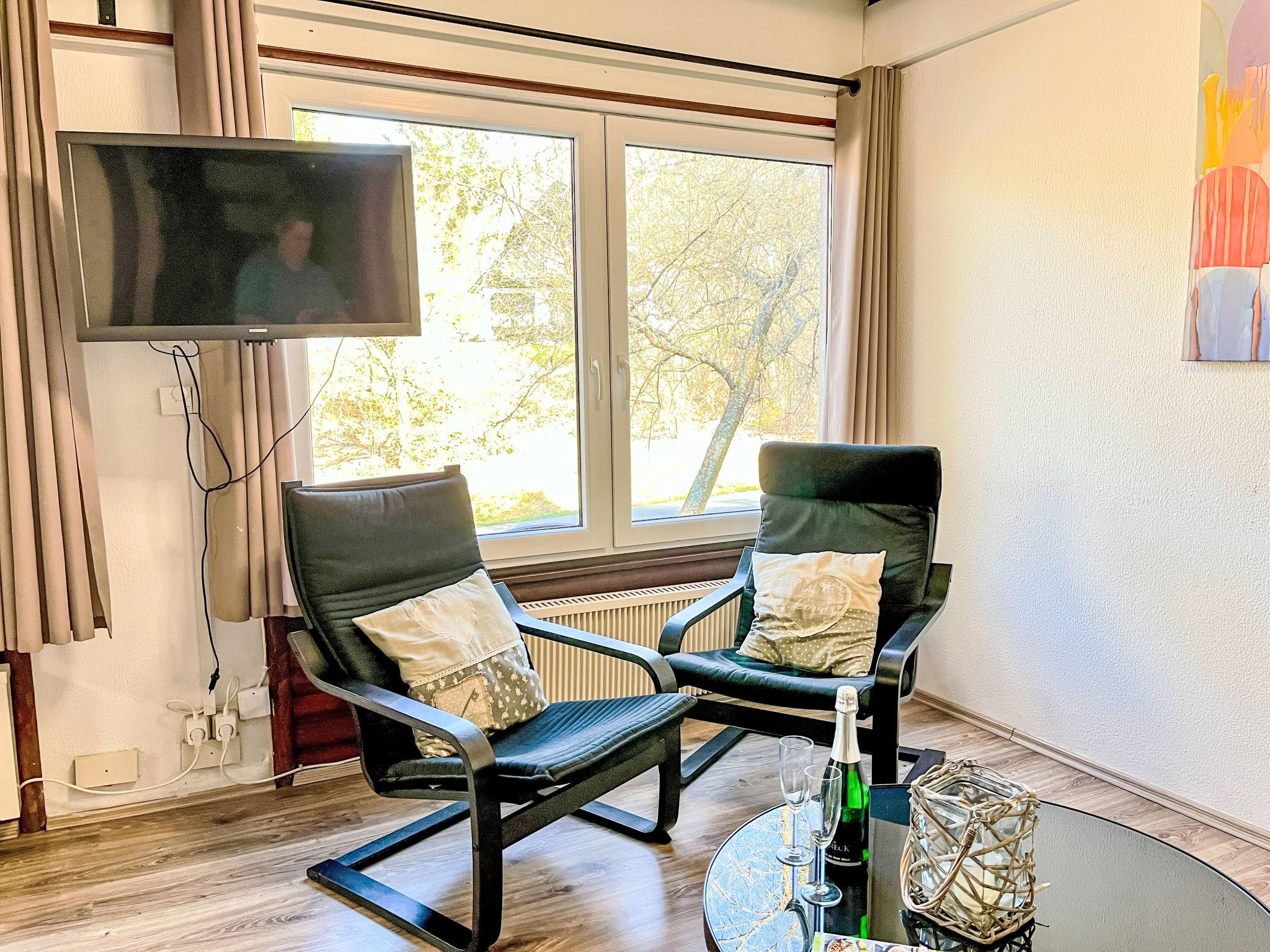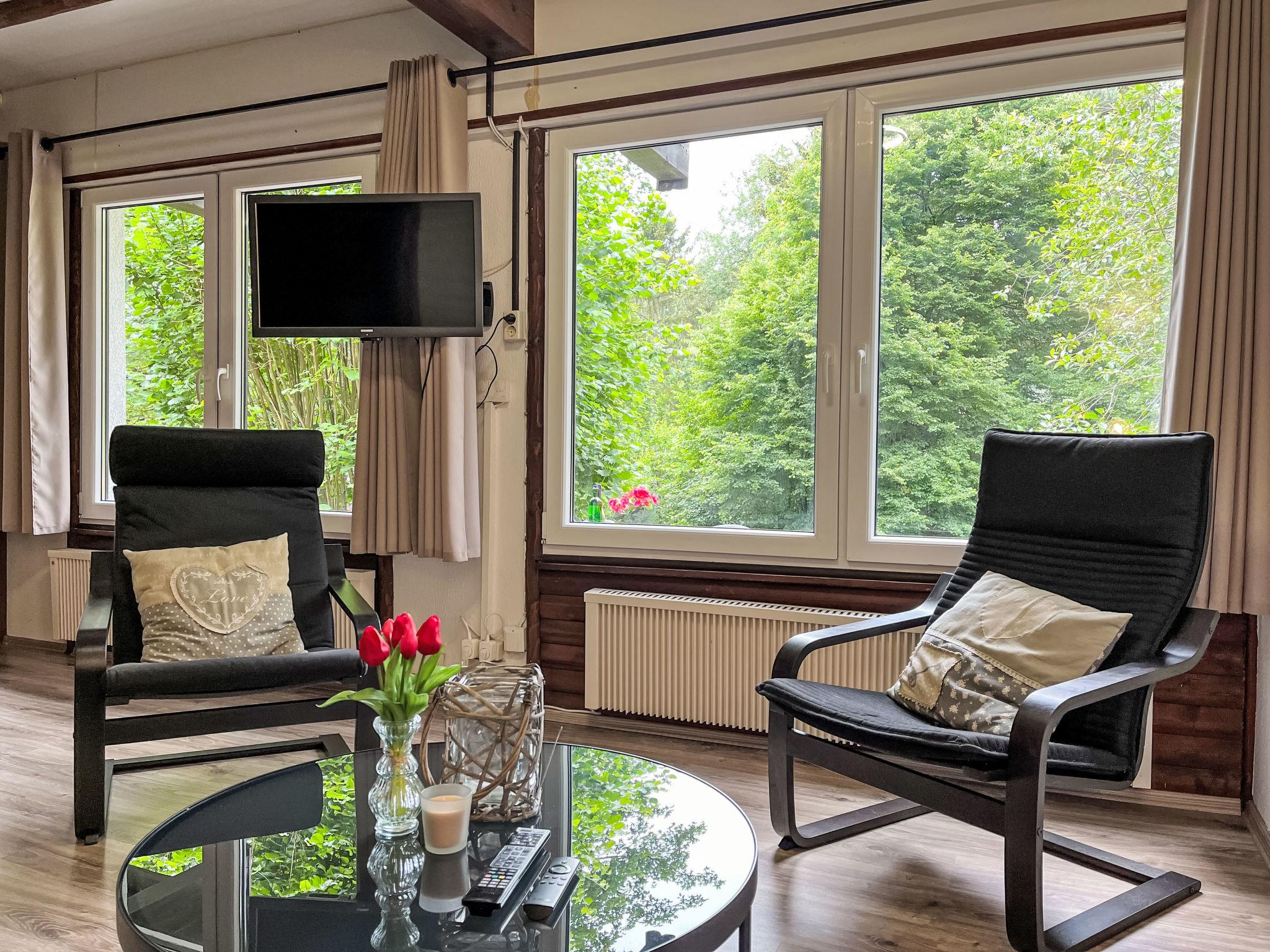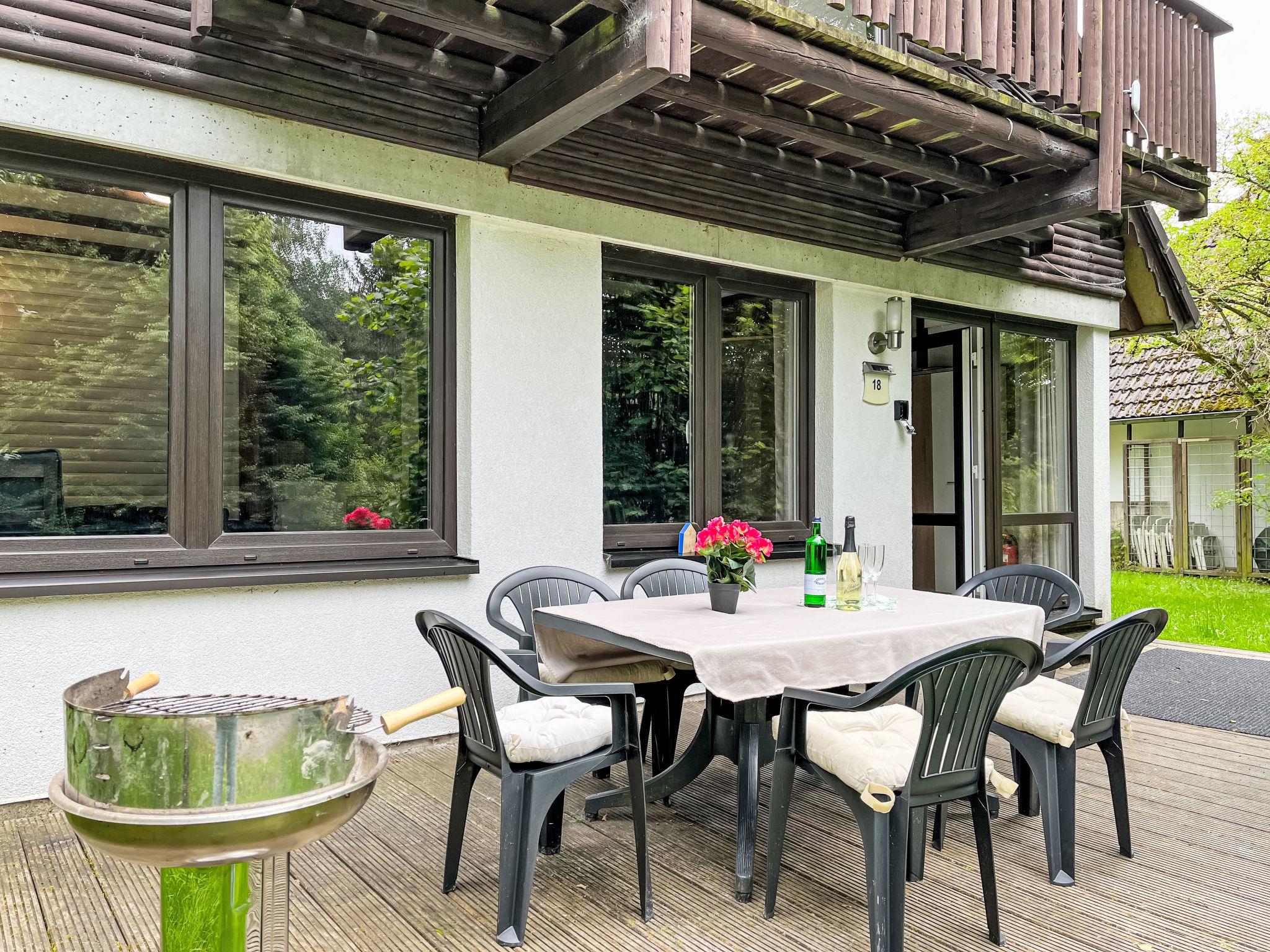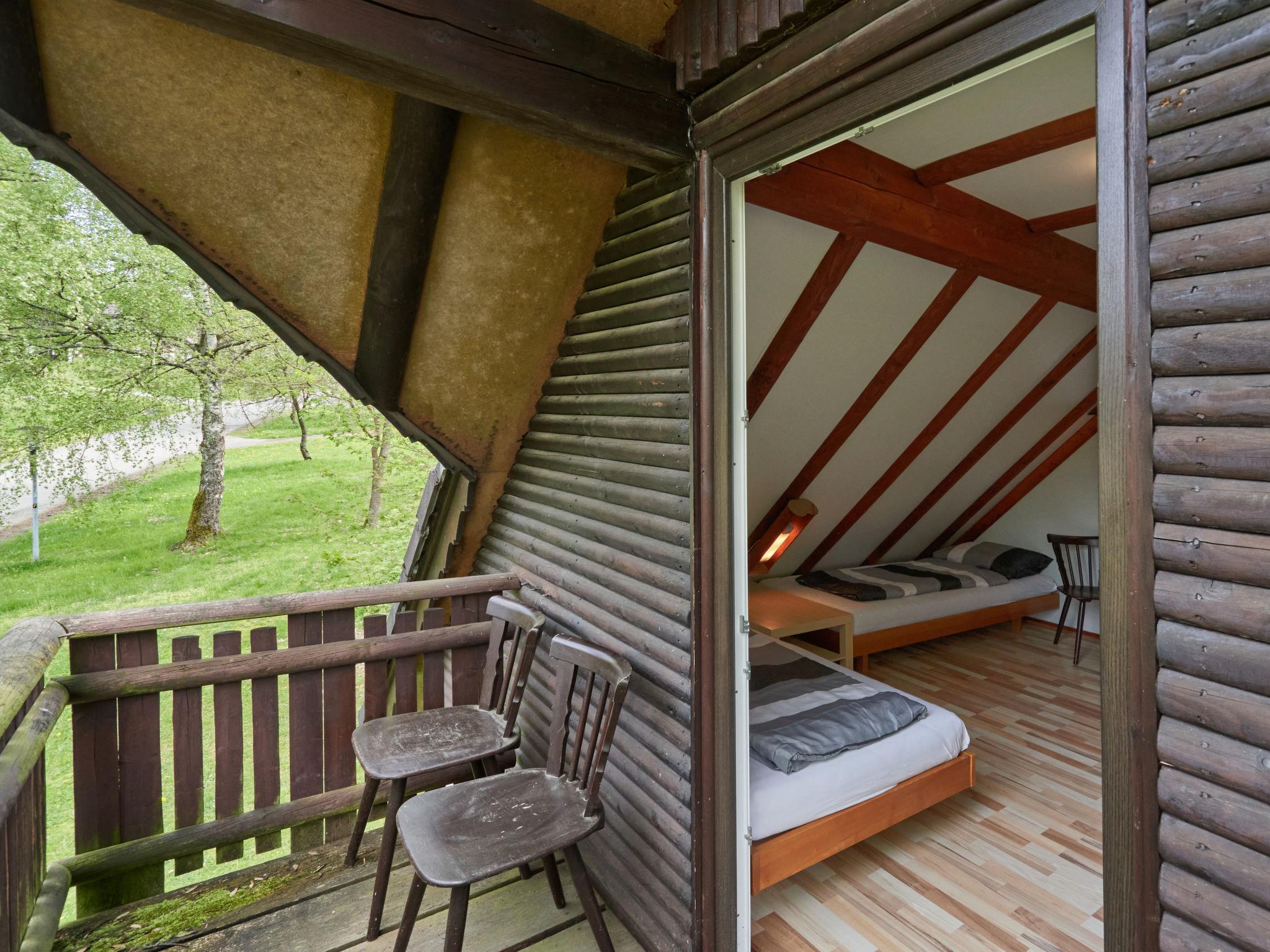 "Rumpelstilzchen", 4-room house 75 m2 on 3 levels. Cosy and wooden furniture furnishings: open living/dining room with dining nook, TV and digital TV (flat screen), radio and wood-burning stove. Exit to the terrace. Upper floor: 1 double bedroom with rooflight with separate WC. With sloping ceilings, open kitchen (oven, dishwasher, 4 ceramic glass hob hotplates, microwave, electric coffee machine). Shower/WC. 2nd upper floor: 1 double bedroom with sloping ceilings. Exit to the balcony. 1 room with sloping ceilings with 2 beds (80 cm, length 200 cm). Exit to the balcony. Electric heating. Balcony, terrace, lawn 100 m2. Terrace furniture. Facilities: washing machine, children's high chair, baby cot, logs (extra). Internet (WiFi, free). Parking at the house. Please note: maximum 3 small pets/ dogs allowed. Smoke alarm, fire extinguisher. When there are less than the maximum number of guests staying at the property, not all of the bedrooms will be available for use.