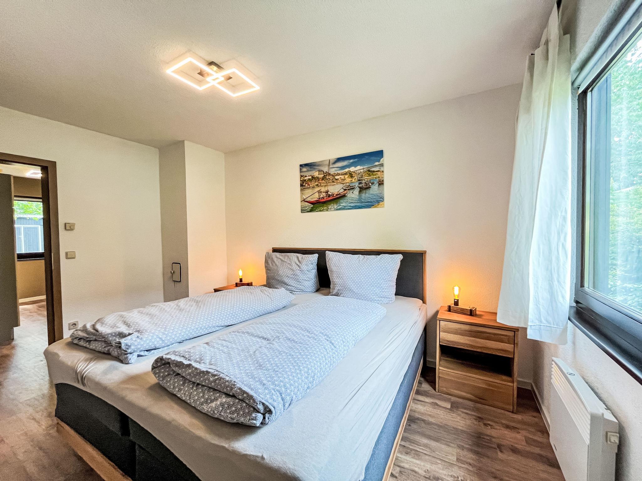 Holiday village "Frankenau", surrounded by trees and meadows. Outside the resort, 2 km from the centre of Frankenau, in the district Nationalpark Kellerwald, on a slope, 28 km from the lake. For shared use: natural state property, pond. In the complex: restaurant with TV, kiosk, sun terrace. Bread roll service. Grocery 8 km, restaurant 2 km, bakery 2 km, bicycle rental 15 km, bus stop 400 m, railway station "Frankenberg" 15 km, outdoor swimming pool 6 km, indoor swimming pool 15 km, thermal baths "Bad Wildungen-Reinhardshausen" 20 km, bathing lake 12 km. Golf course (18 hole) 25 km, tennis, indoor tennis centre 400 m, walking paths from the house 100 m, cycle lane 500 m, gondola lift 27 km, fishing possibilities 700 m. Nearby attractions: KellerwaldUhr 500 m, Schloss Waldeck 27 km. Well-known ski regions can easily be reached: Winterberg 45 km, Willingen 50 km. Well-known lakes can easily be reached: Edersee - Herzhausen 13 km. Hiking paths: Nationalpark Kellerwald 500 m. Please note: suitable for families. Neighbourhood highly sensitive to noise. Quietness and good behaviour expected. Some of the holiday homes can be reached via steps. At the park entrance there is a bistro/café with a sun terrace, Sunday breakfast buffet, children's cinema, table football (limited opening times outside of the season). There is also the option of using a washing machine and dryer for a fee.