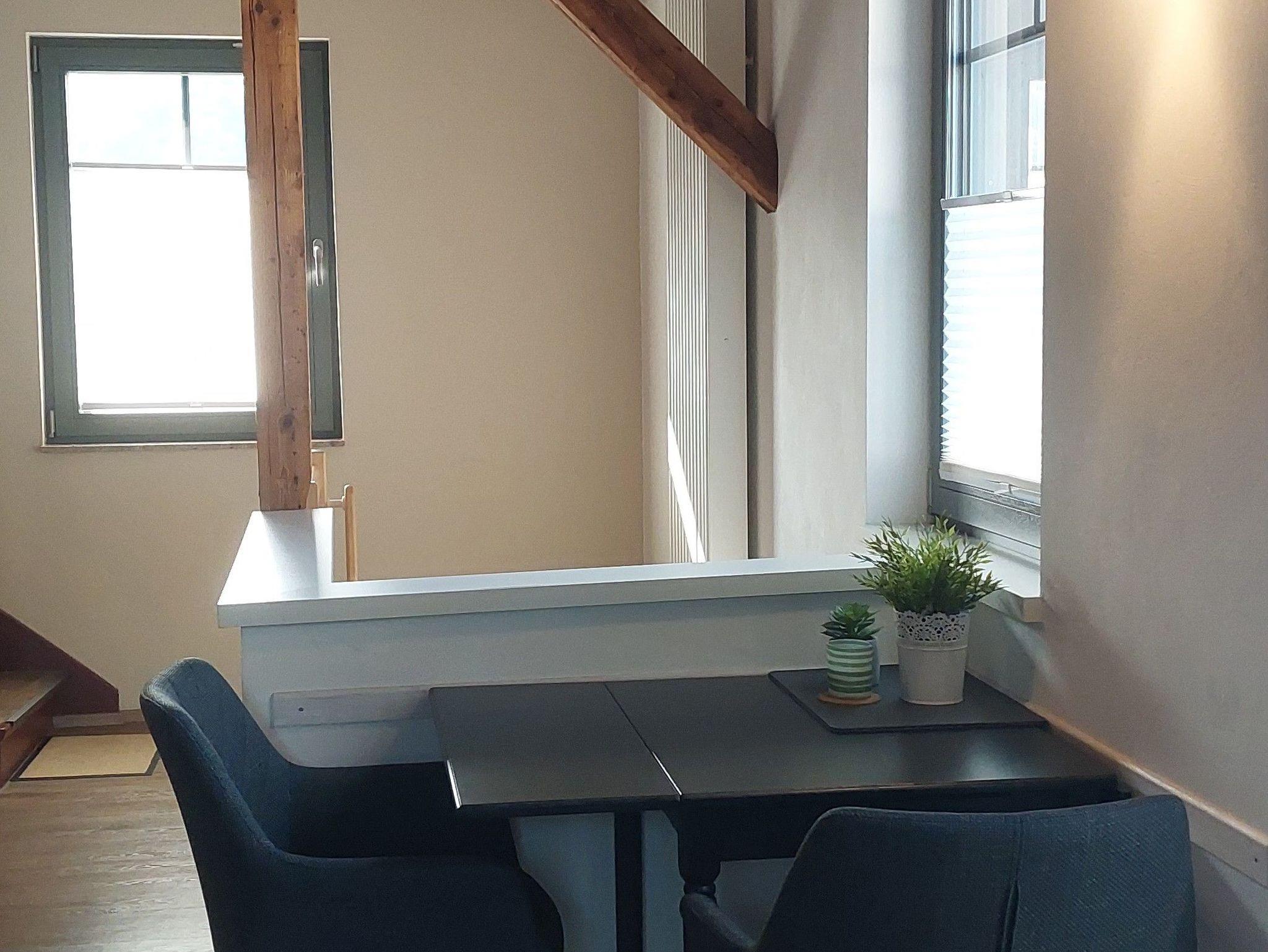 Diese wunderschöne Maisonettewohnung befindet sich in der ehemaligen Gesindewohnung eines liebevoll renovierten Stallgebäudes. Die Wohnung besticht durch ihre freigelegte alte Holzbalkendecke und die restaurierte Holztreppe, die zusammen mit einigen stilvollen Möbeln der ursprünglichen Hofbesitzer und modernen Wohnelementen einen ganz besonderen Charme verleihen.
