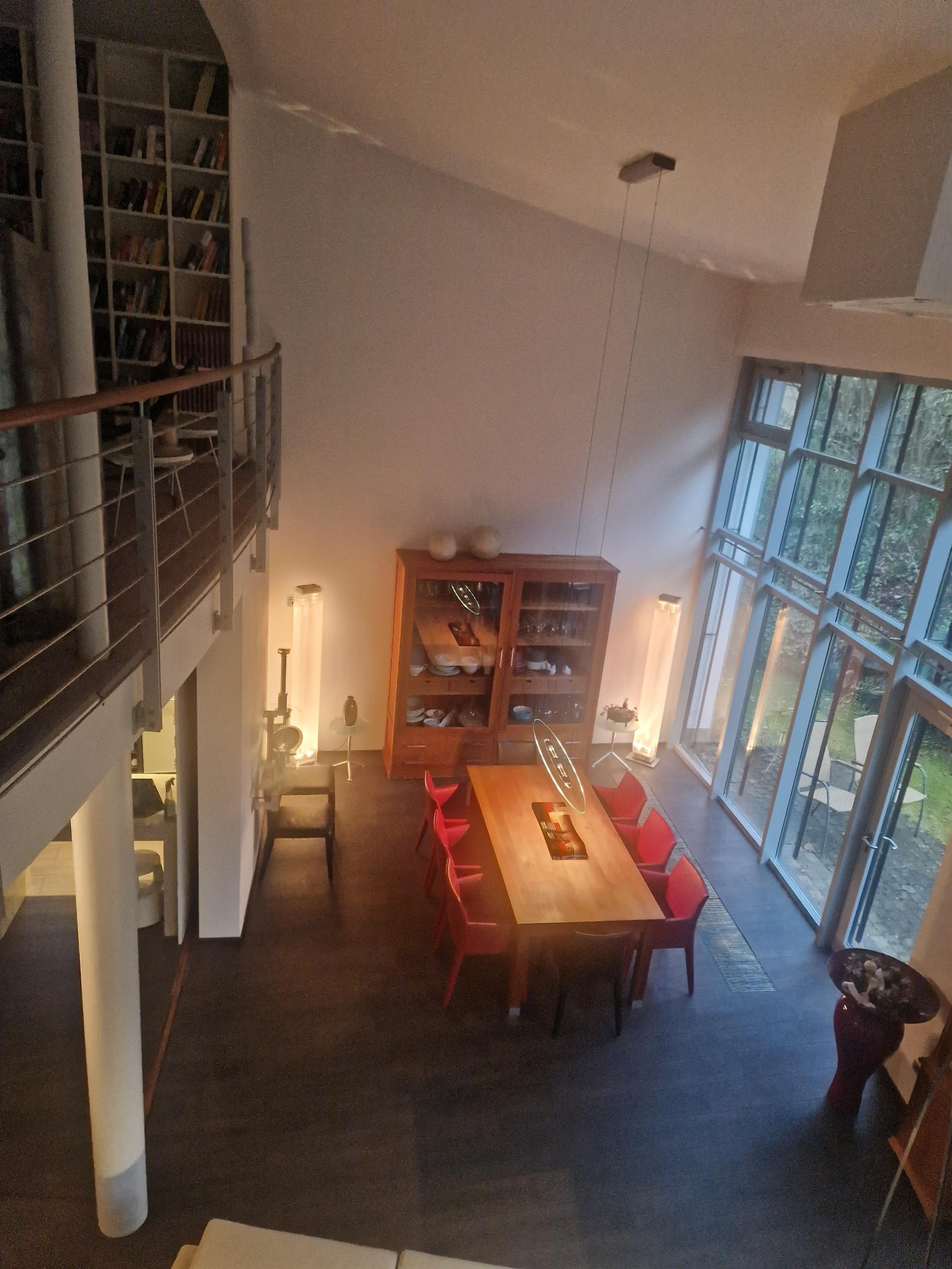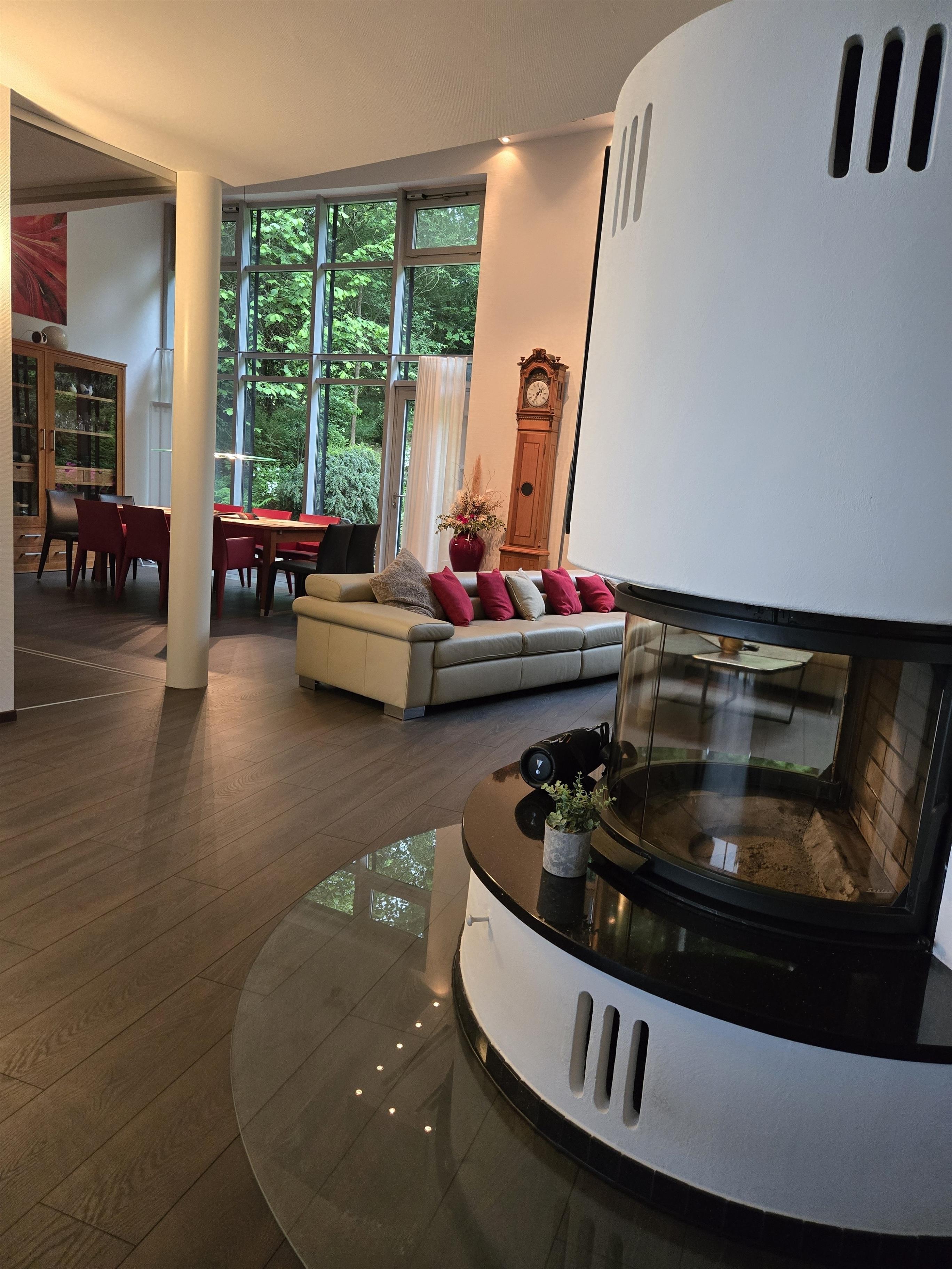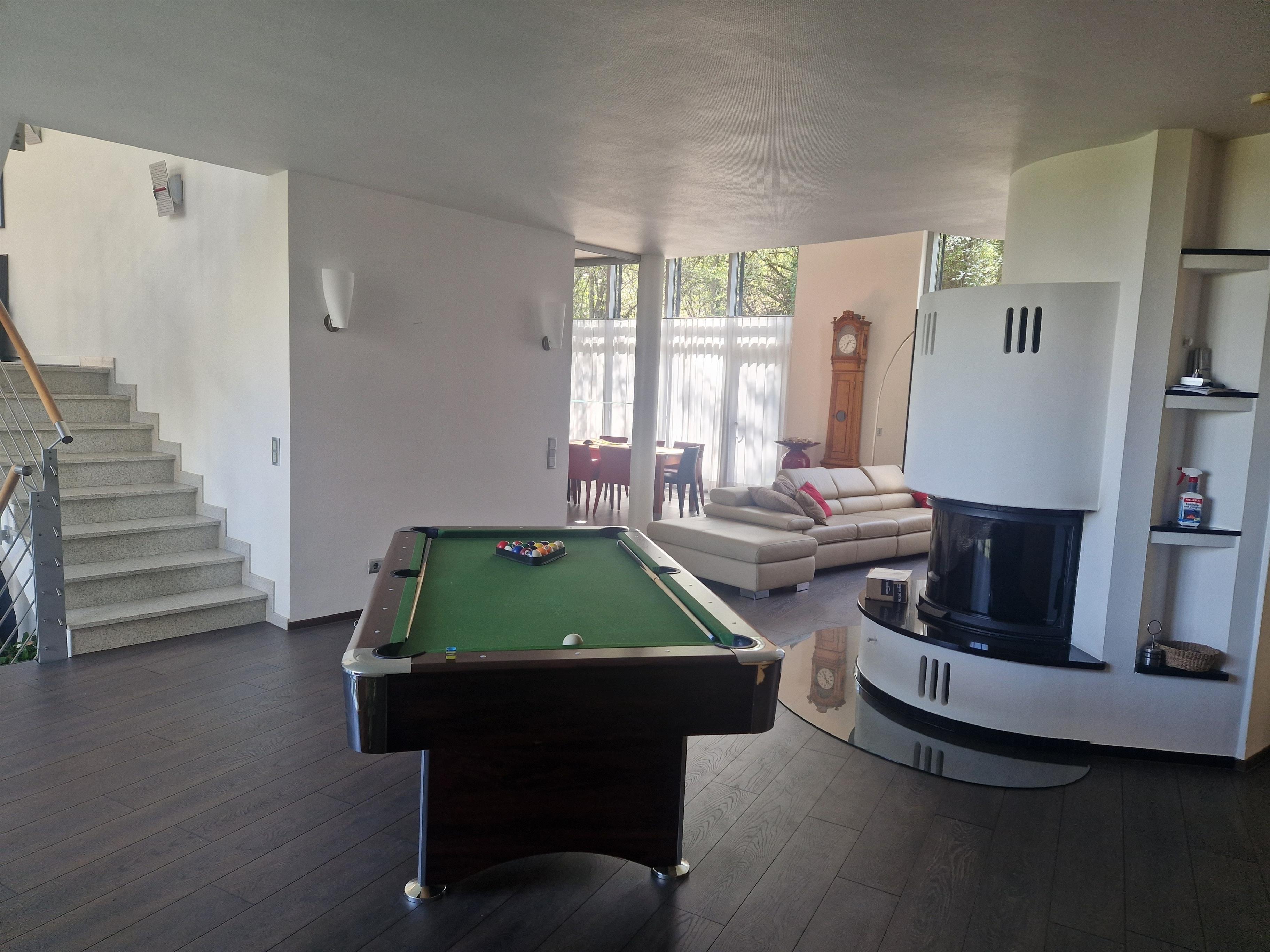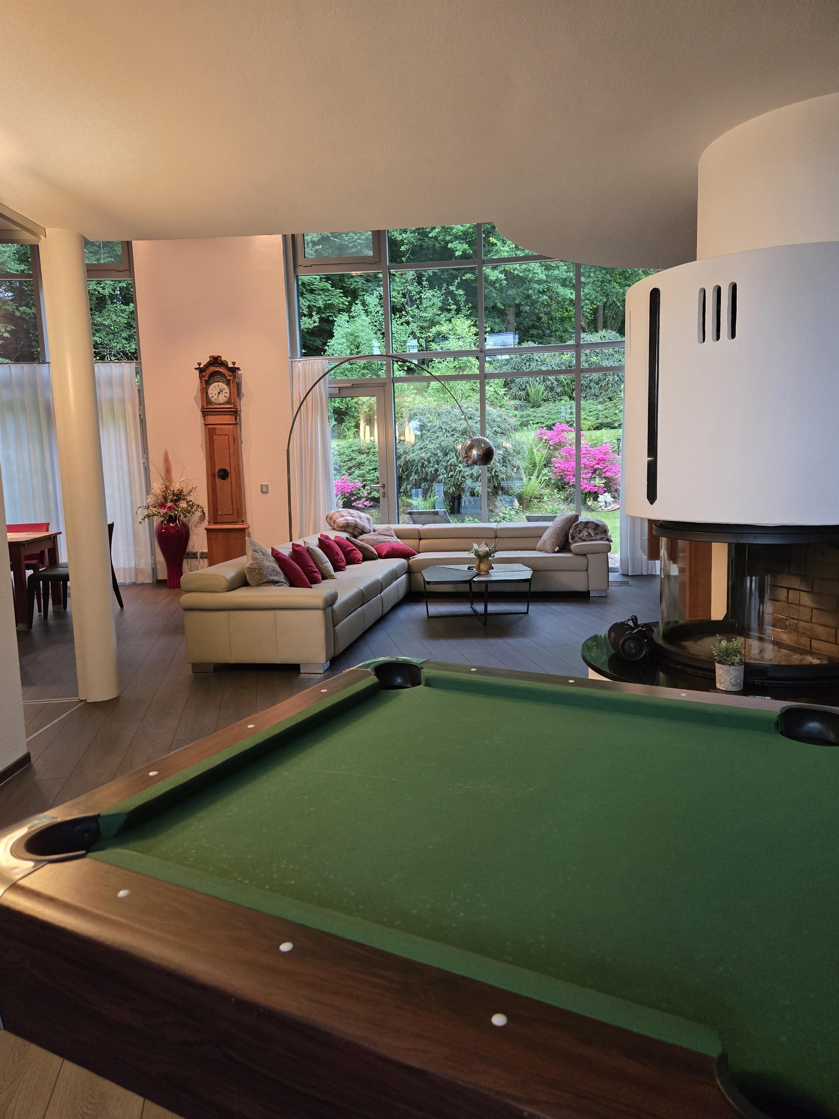 Das Haus ist modern eingerichtet und bietet eine sehr gute Ausstattung mit Fitnessraum, Kamin, Sauna und Solarium , Galerie mit Bücher.
