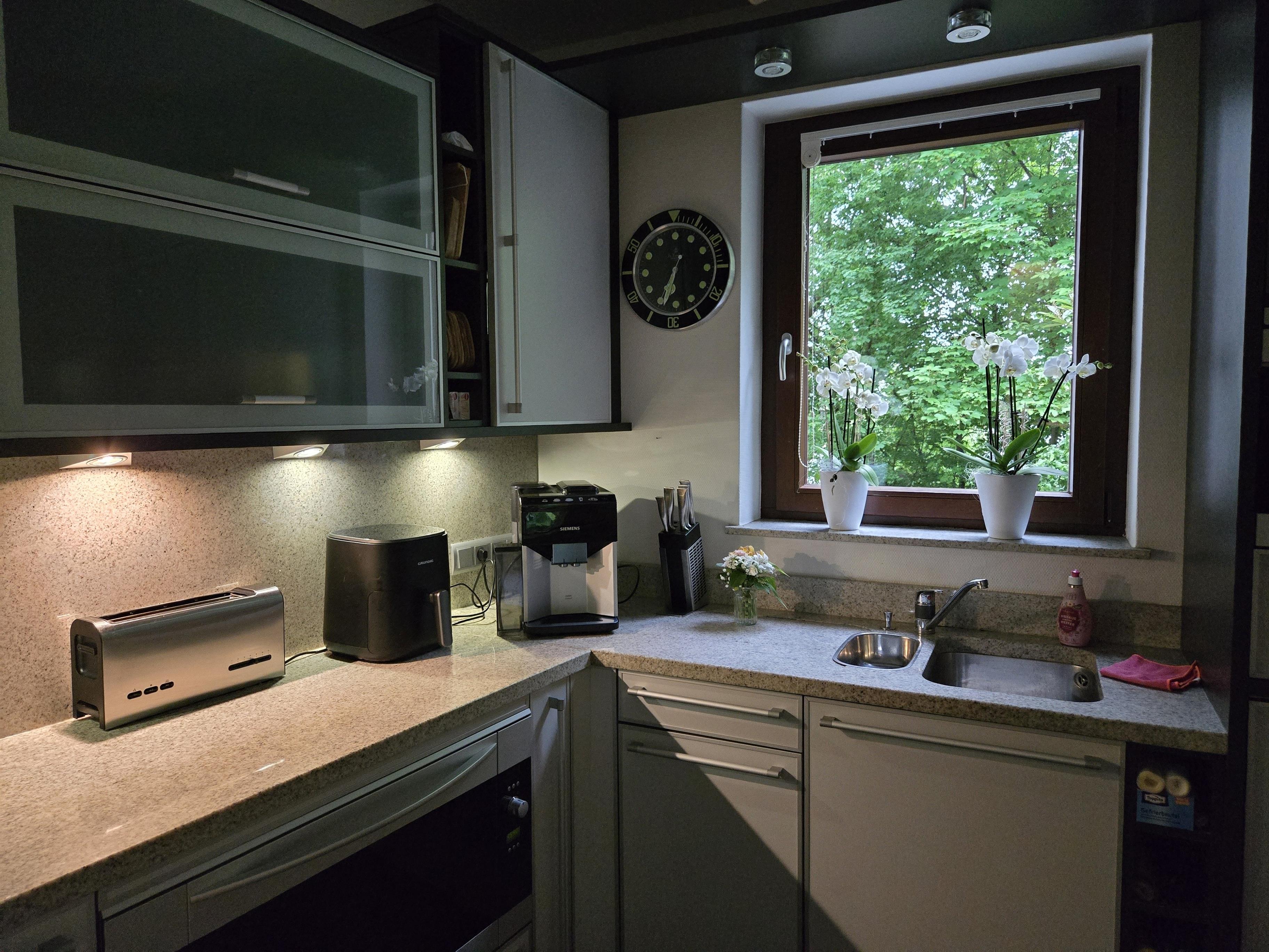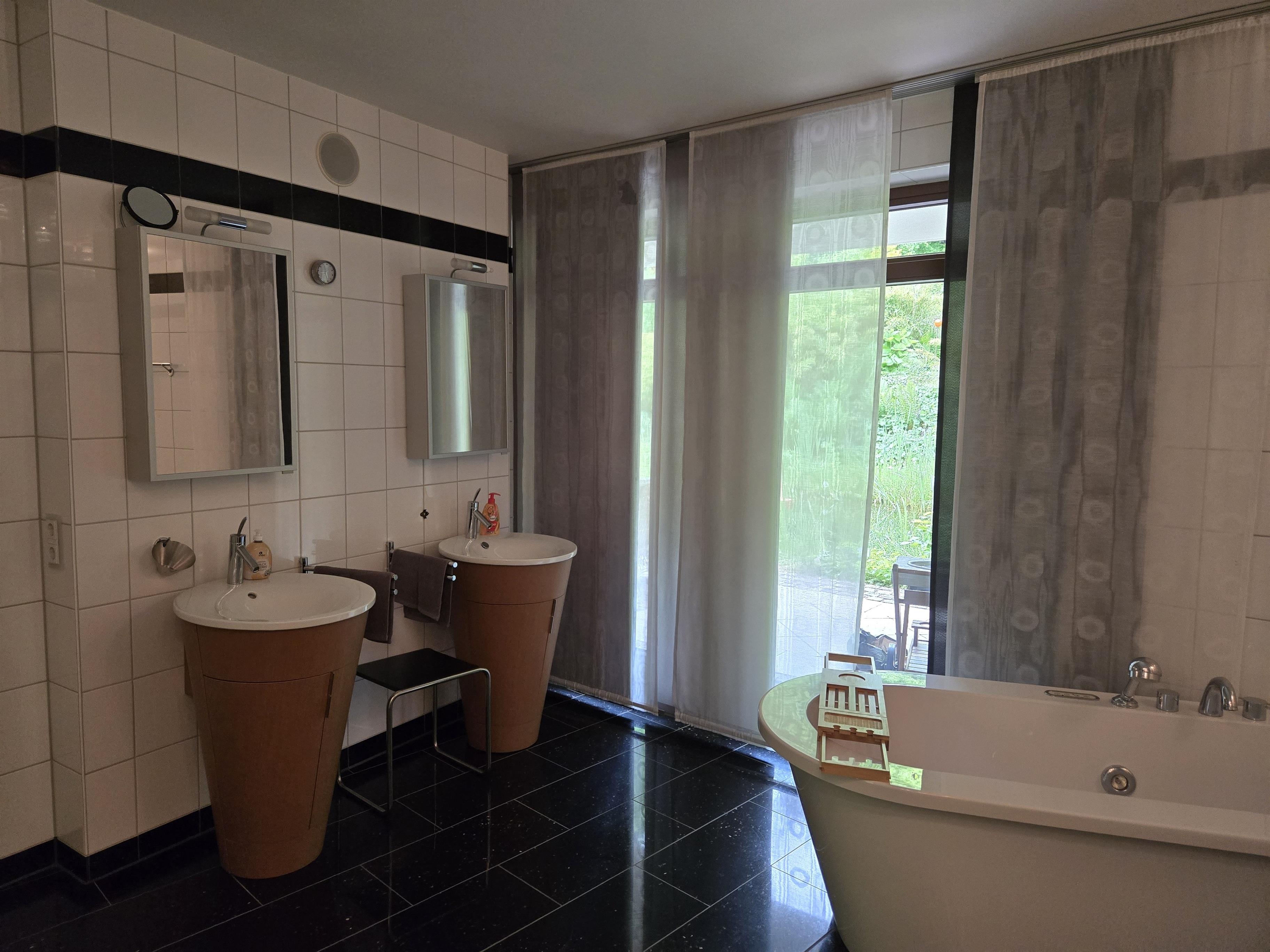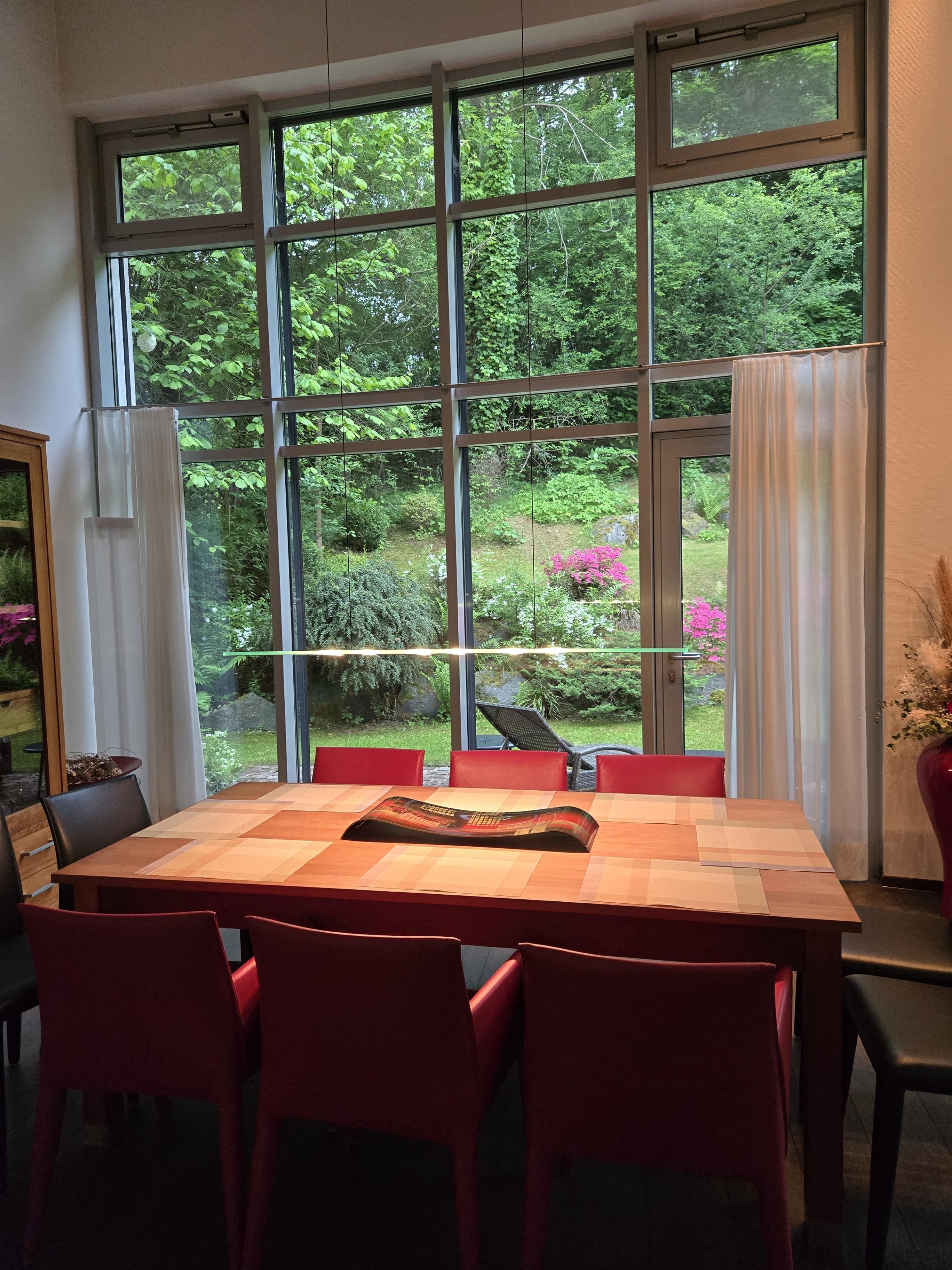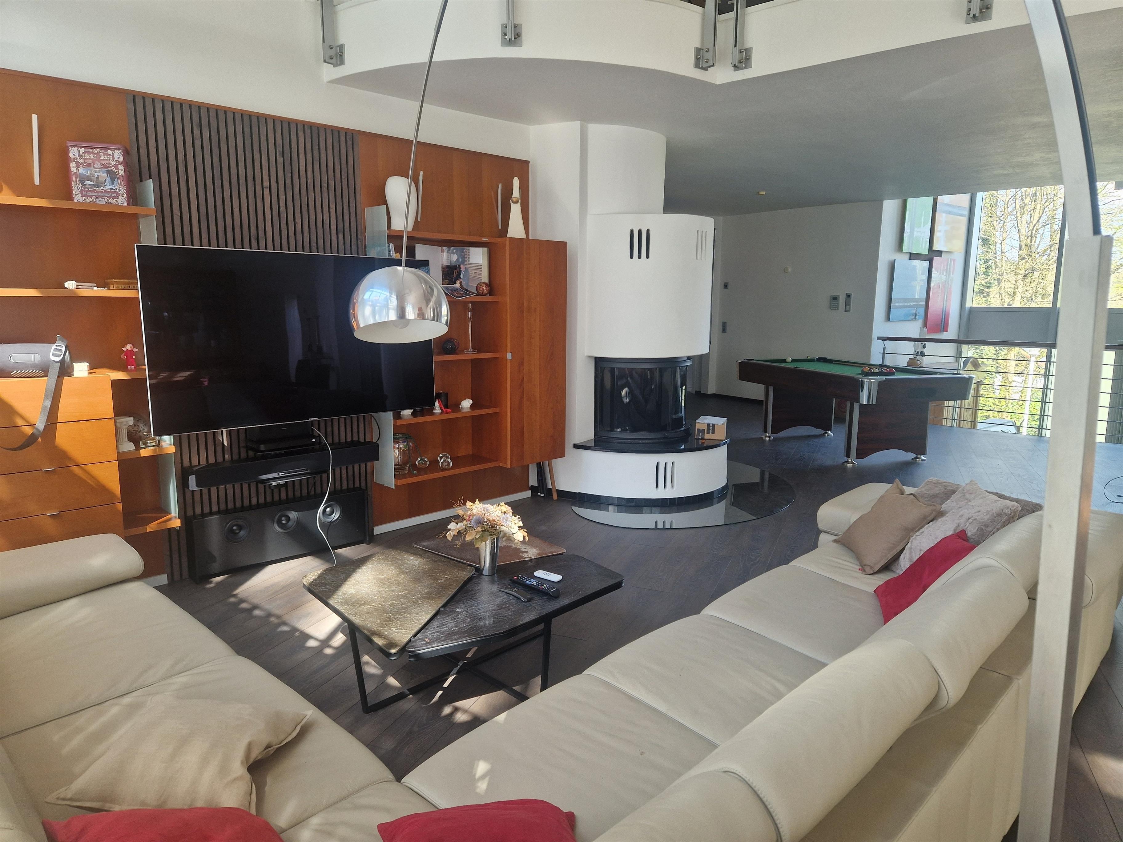 Das Haus ist modern eingerichtet und bietet eine sehr gute Ausstattung mit Fitnessraum, Kamin, Sauna und Solarium , Galerie mit Bücher.