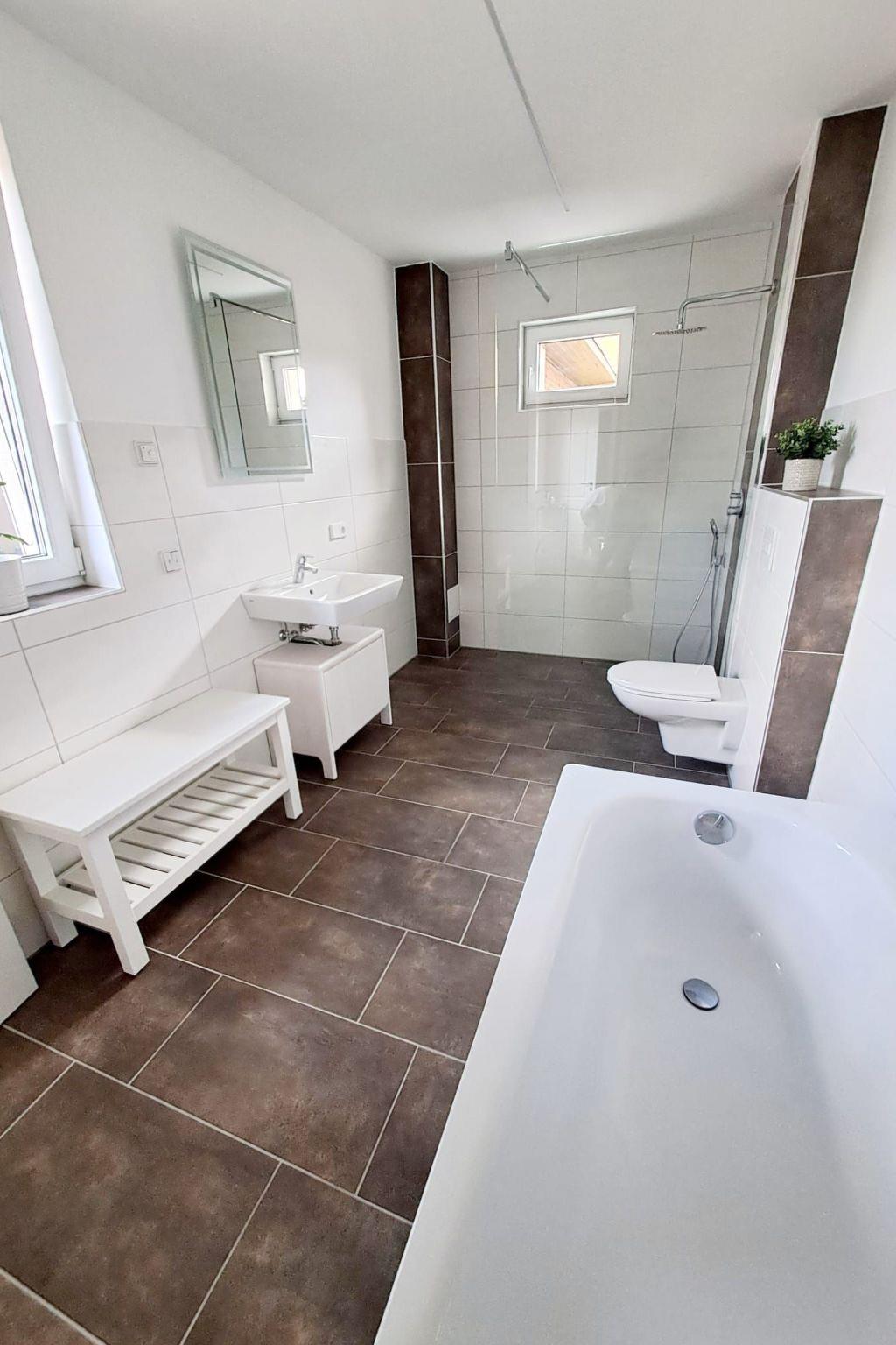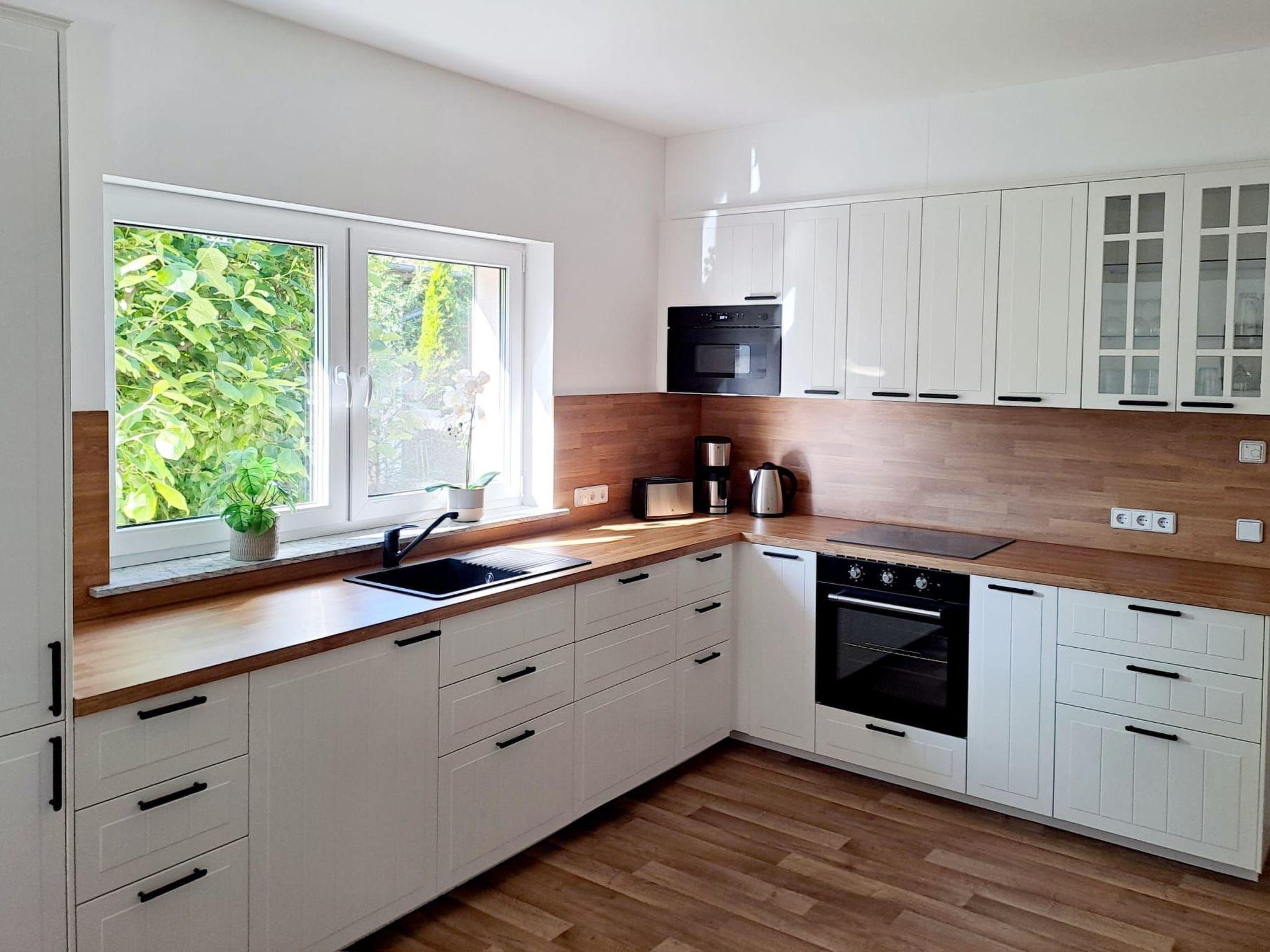 Inside the house, you will find a functional and well thought-out interior that leaves nothing to be desired. Three bedrooms that can be darkened guarantee restful nights, while the bathroom with a bathtub and integrated shower as well as a walk-in rain shower ensures refreshment and relaxation. Additional comfort is provided by the partial underfloor heating, which creates a cosy ambience, especially in cooler months. A washing machine and tumble dryer for your sole use ensure that you have everything you need to hand during your stay.
