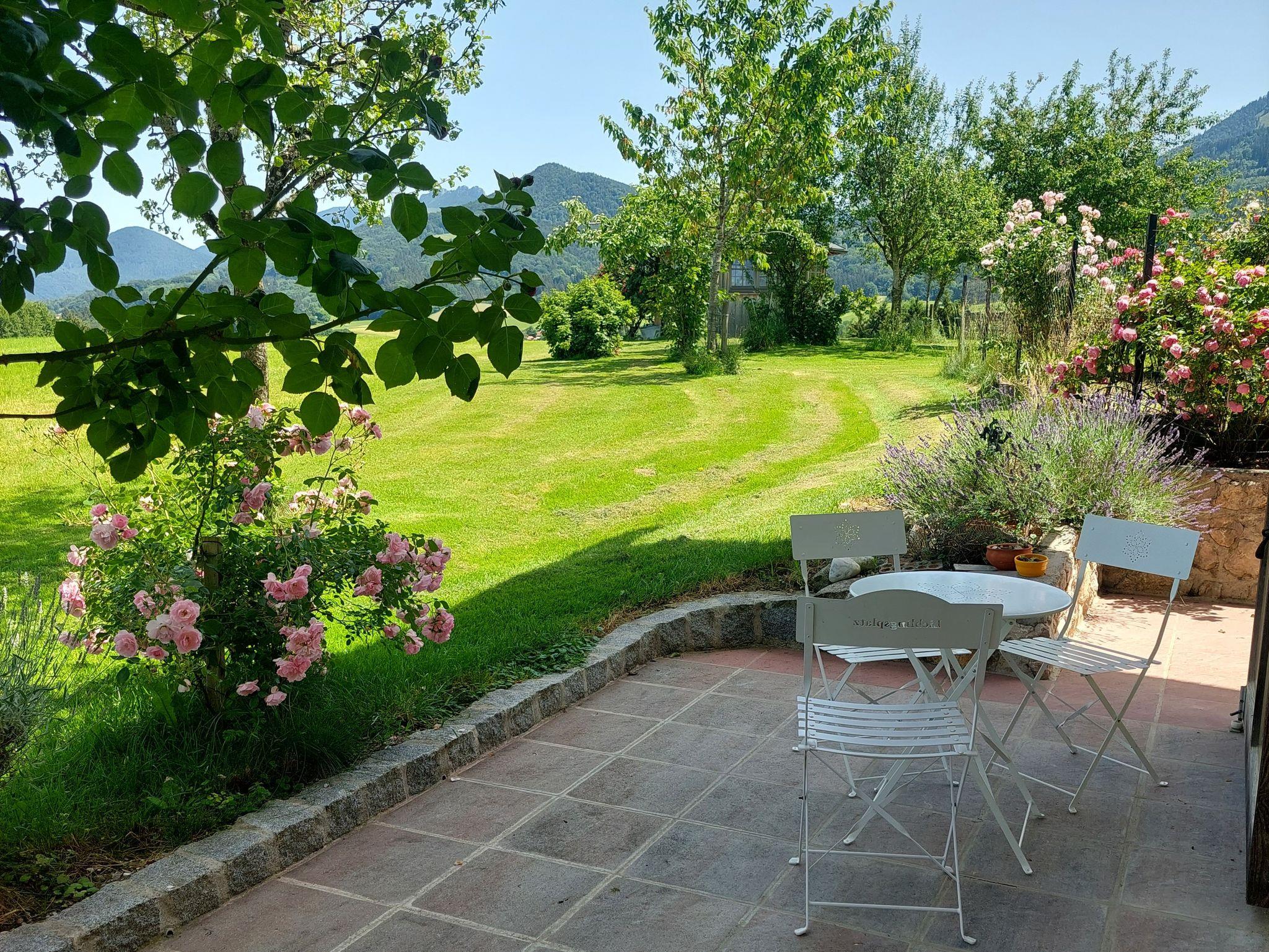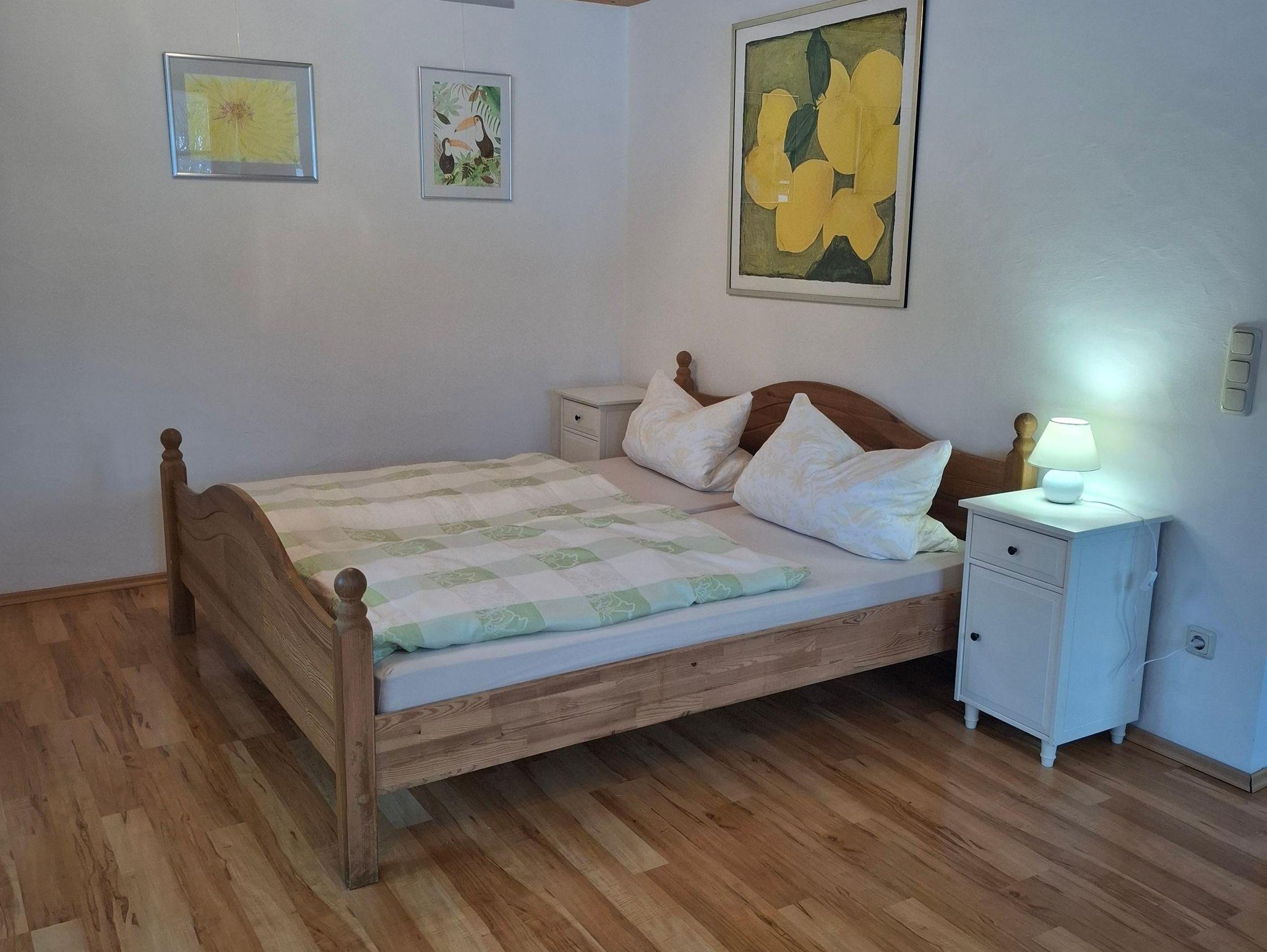 Voll ausgestattete Ferienwohnung im Erdgeschoß, 2 separate Schlafzimmer, Wohnküche, Geschirrspüler, kleines Büro, Süd- und Ostterrasse, Badezimmer mit Dusche und Badewanne, separates WC, TV und W-Lan.