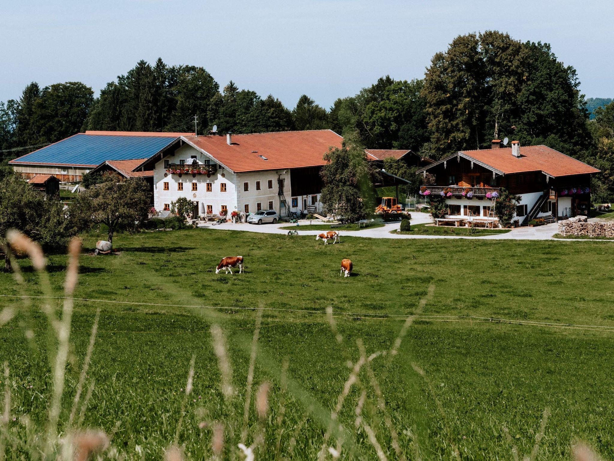 Herzlich willkommen auf unserem Berg-Bauernhof in absolut freier, ruhiger Alleinlage mit Blick auf den Berg Hochries, 3 km außerhalb von Frasdorf. Wir, die Bauersfamilie Franz und Christiane samt unseren Kindern Franzl, Lisal, Kathl und Fini leben hier mit unseren 30 Milchkühen, Kälbern, Hühnern und Schafen. Es ist viel Platz um's Haus, um mit Tretfahrzeugen, Fahrrädern und Ketcars herumzusausen. Gerne nehmen wir euch mit in den Stall und zeigen euch unsere Landwirtschaft. Die Ferienwohnungen befinden sich separat im Zuhaus mit überdachtem Freisitz.