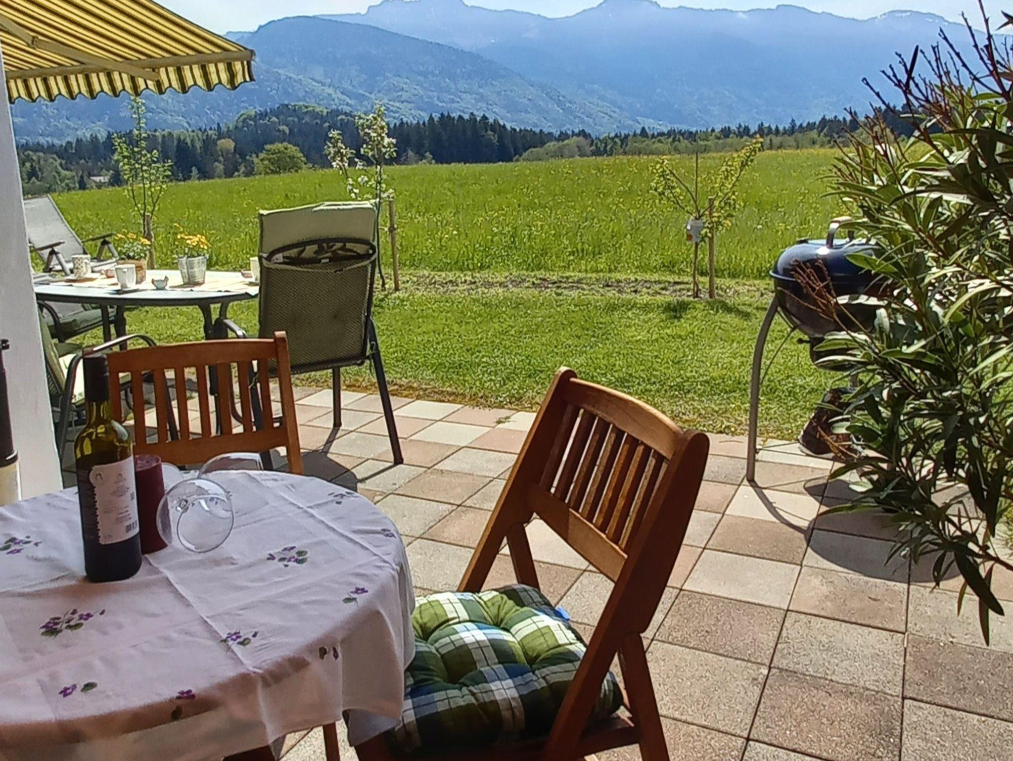 Neue Ferienwohnung in gepflegtem Landhaus in Ortsrandlage, wunderschöner Blick auf die Berge, max. 5 Gehminuten zur Zugverbindung Aschau - Prien. Herrliche Rad- und Wandertouren ab Haus möglich.Gemütlich ausgestattete Ferienwohnung mit großem Wohn-/Schlafraum mit Doppelbett, Kachelofen, 1 Schlafcouch mit hochwertiger Matratze, gut ausgestattete Küche mit Geschirrspüler, Bad mit WC und Dusche, Kinderbett- stuhl, Kabel-TV, W-LAN, Stellplatz vor dem Haus.Nichtraucher Wohnung, Garten mit großer Terrasse und 2 Markisen, Grillmöglichkeit, Fahrradunterstellplatz , keine Haustiere.Die Ferienwohnung ist ein idealer Ausgangspunkt für Ausflüge. Wandern Sie auf die Berge direkt vor der Haustüre oder fahren Sie mit einer der nahen Bergbahnen auf Kampenwand, Hochries oder Wendelstein. Herrliche Aussichten auf das Voralpenland und auf viele Berggipfel bis zum Großglockner sind bei gutem Wetter garantiert. Der nahe Chiemsee mit Schloss Herrenchiemsee und der idyllischen Fraueninsel, aber auch München, Salzburg, Rosenheim, Kufstein und Berchtesgaden mit Königsee laden zum Erkunden ein und sind von Frasdorf aus bestens erreichbar.Zahlreiche sportliche Aktivitäten und kulturelle Angebote wie Baden, Kajakfahren, Surfen, Segeln, Golf, Paragliding, Klettern (Hochseilgarten), Minigolf, sowie Museen, Konzerte, Dorf- und Seefeste bietet die nahe Region.