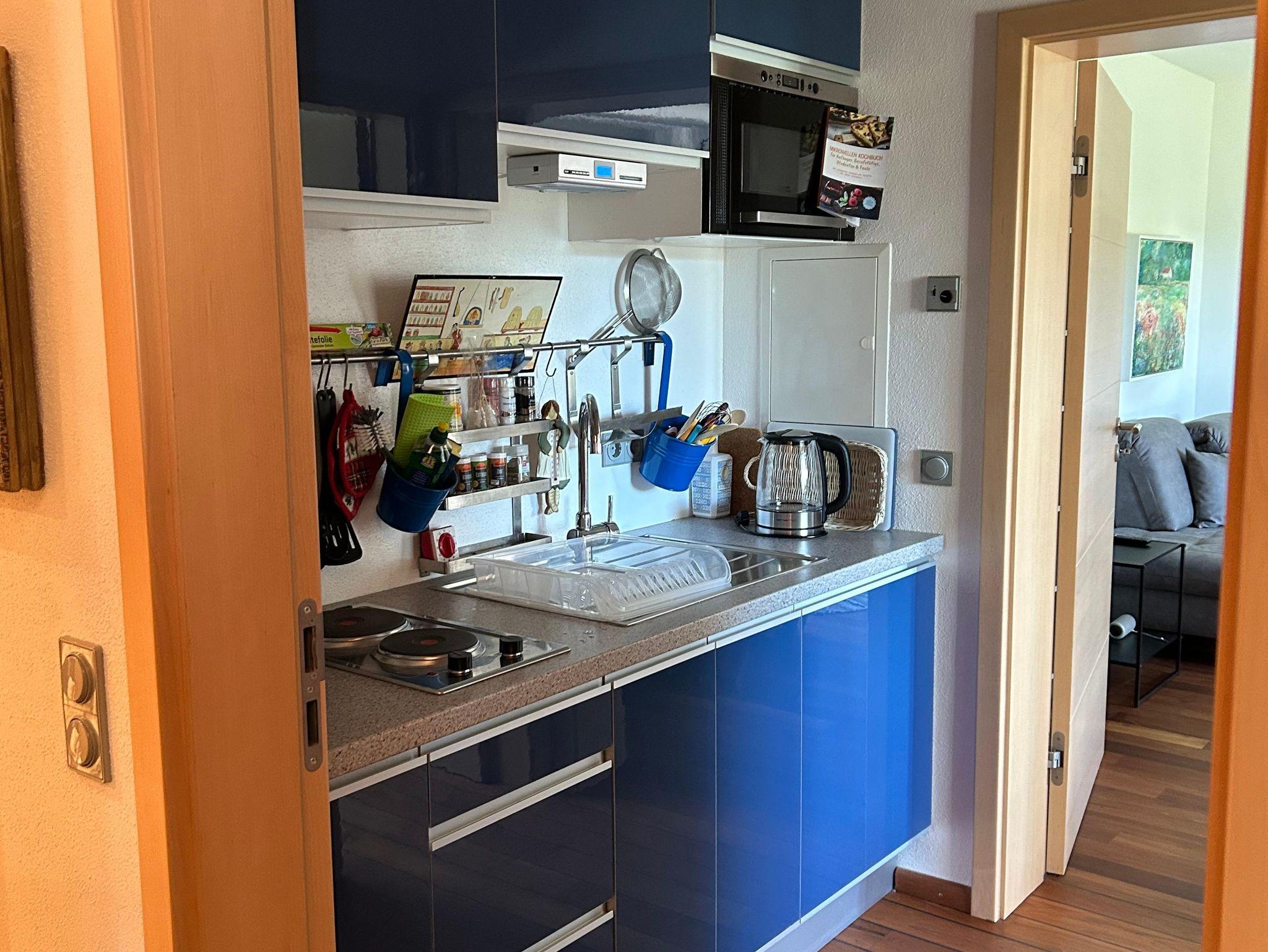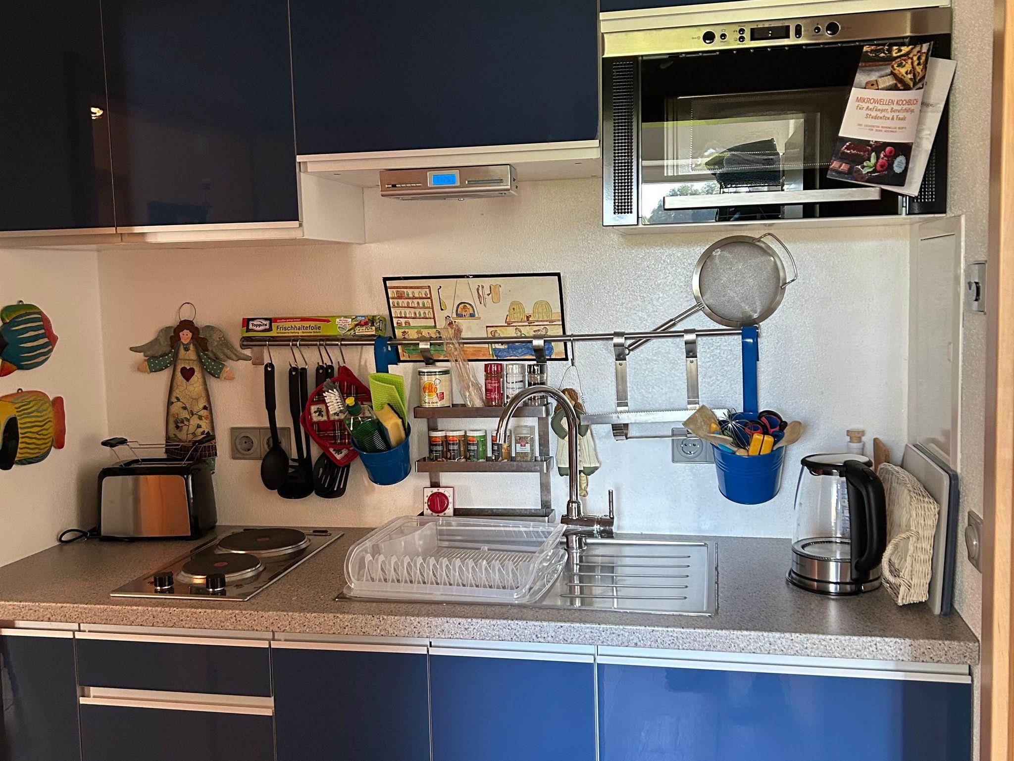 In der Küche gibt es 2 Herdplatten, einen Standbackofen, Mikrowelle, einen Wok und dazu passende Kochbücher. Sie ist mit allem ausgestattet, was das Kochherz begehrt..