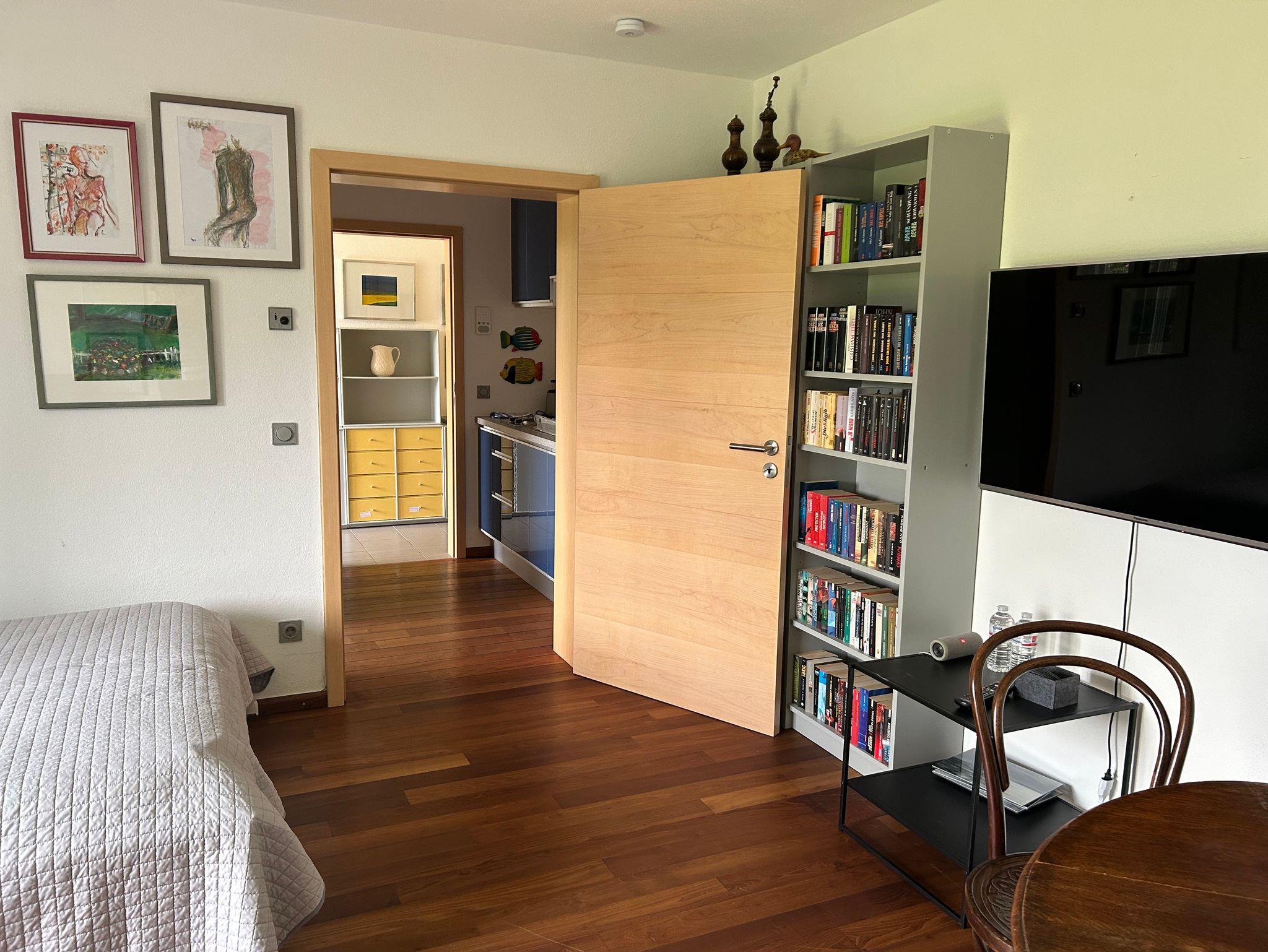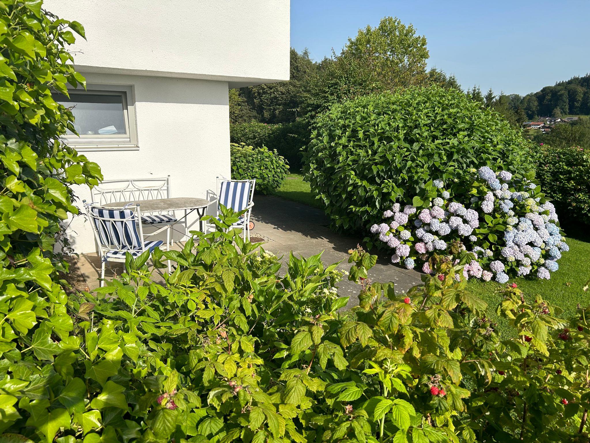 Die 60qm Wohnung liegt im Erdgeschoß, mit Wohn/Schlafzimmer, Schlafzimmer, Küche, hochwertigem Duschbad mit Tageslicht, einem großzügigen Flur und einer hübschen Terrasse, die im Frühjahr von blühender Clematis und vielen Himbeeren gesäumt wird.