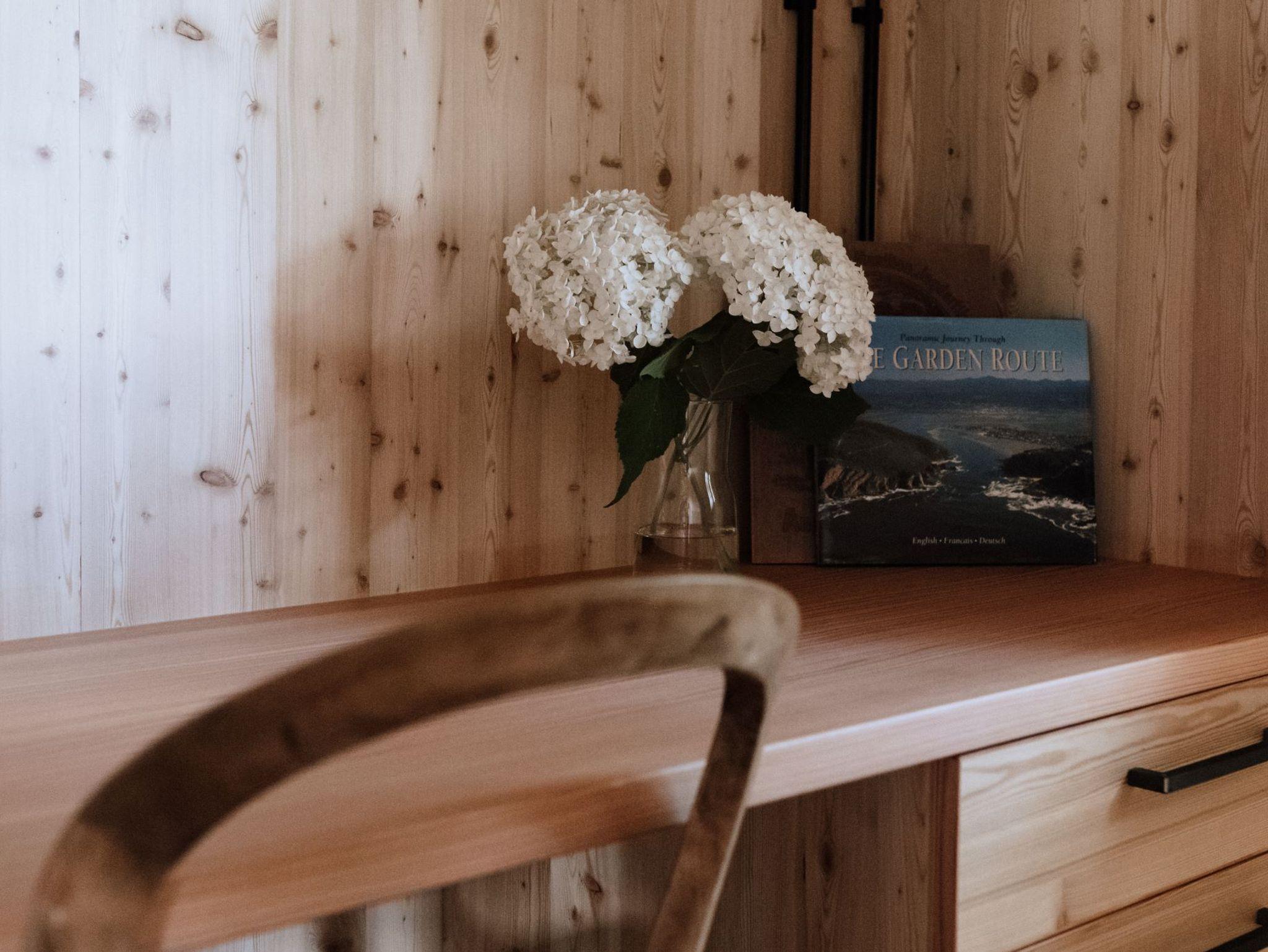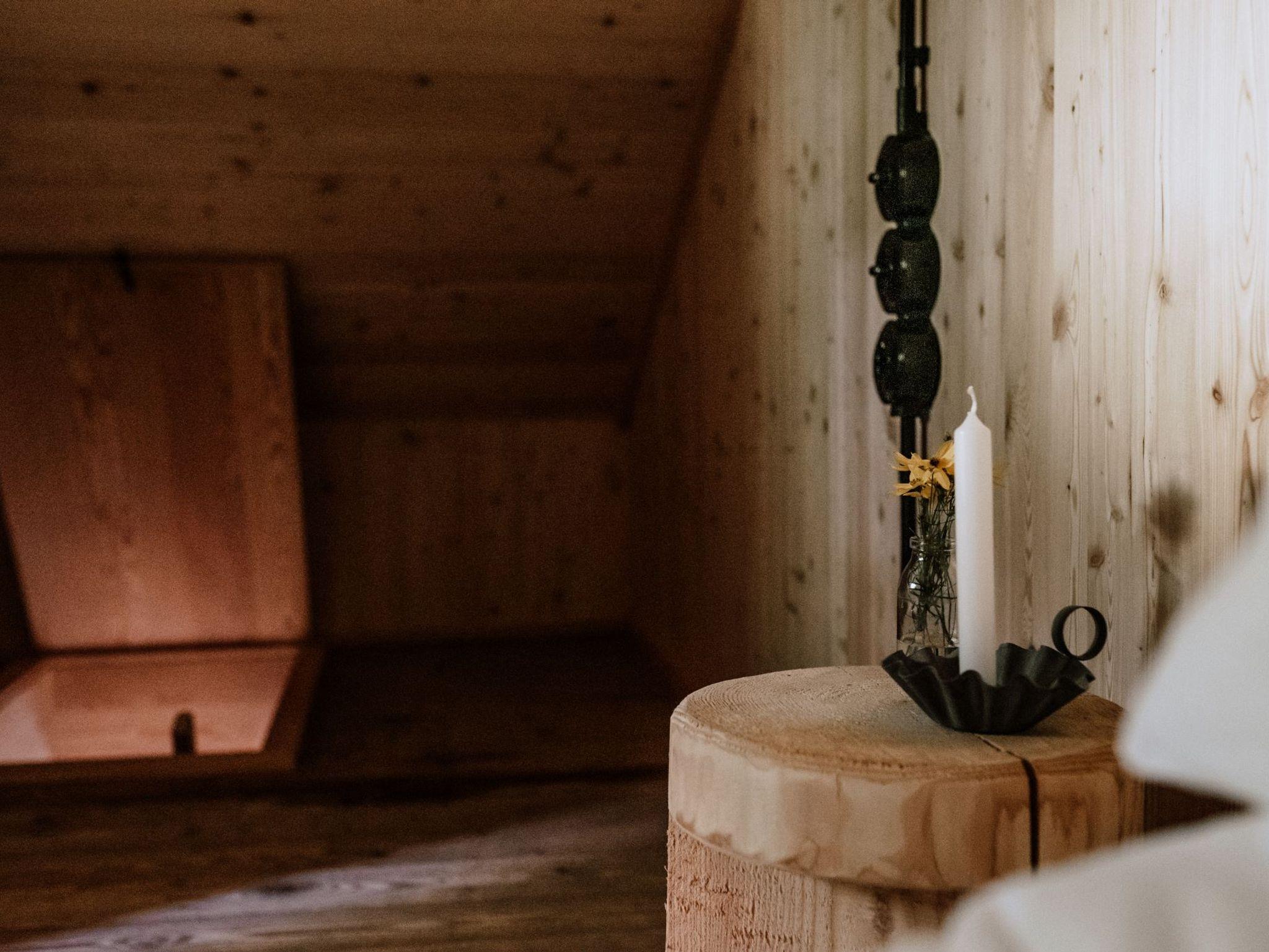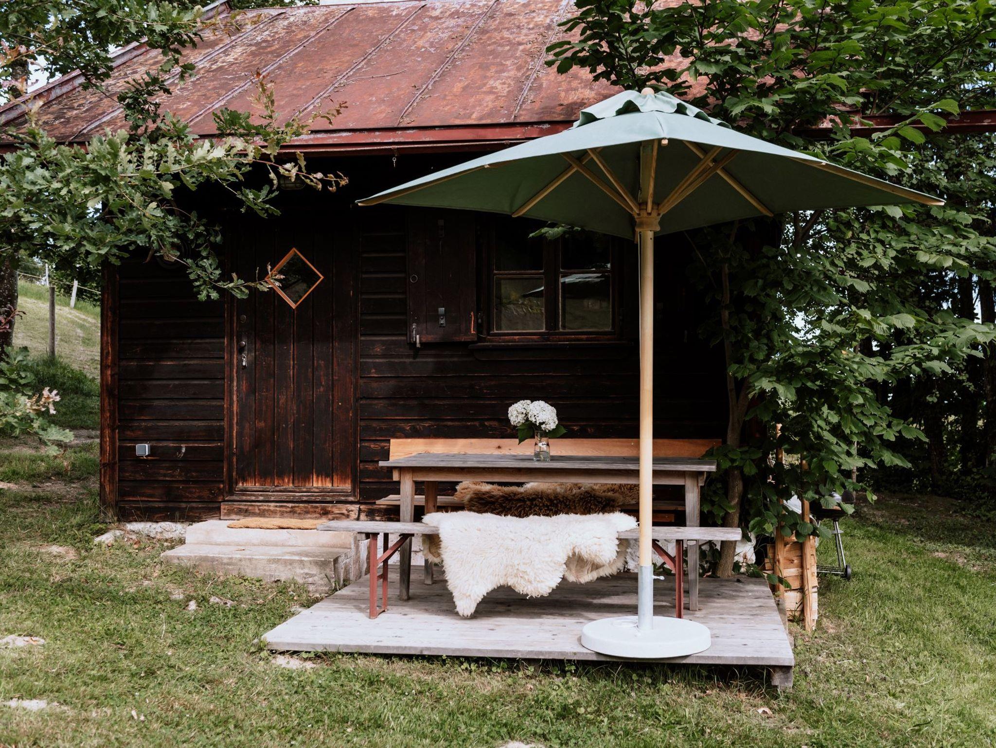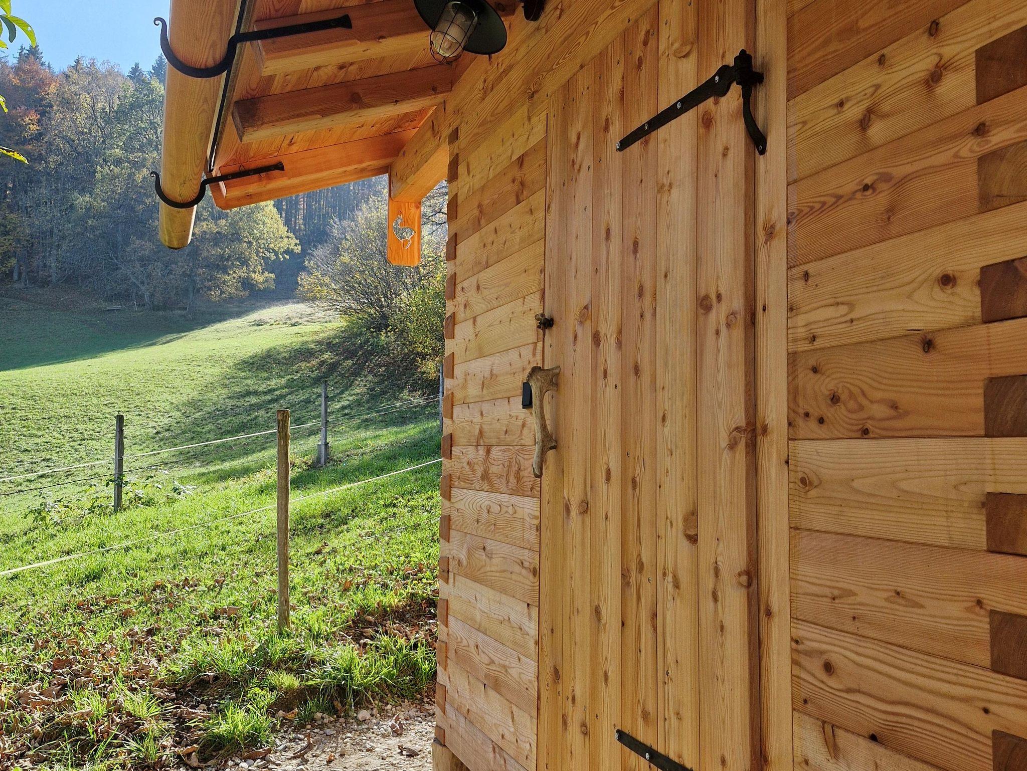 2022 renovierte Hütte, gut ausgestattete Wohnküche, Induktionskochfeld, Kühlschrank, Bad mit Dusche und Föhn, Büro mit W-LAN, 2 Schlafzimmer mit Doppelbett über Leiter zugänglich, Garten, Sonnenterrasse, Sonnenliegen, Sonnenschirm und Grill. Die Hütte wird nur mit dem Holzofen beheizt.