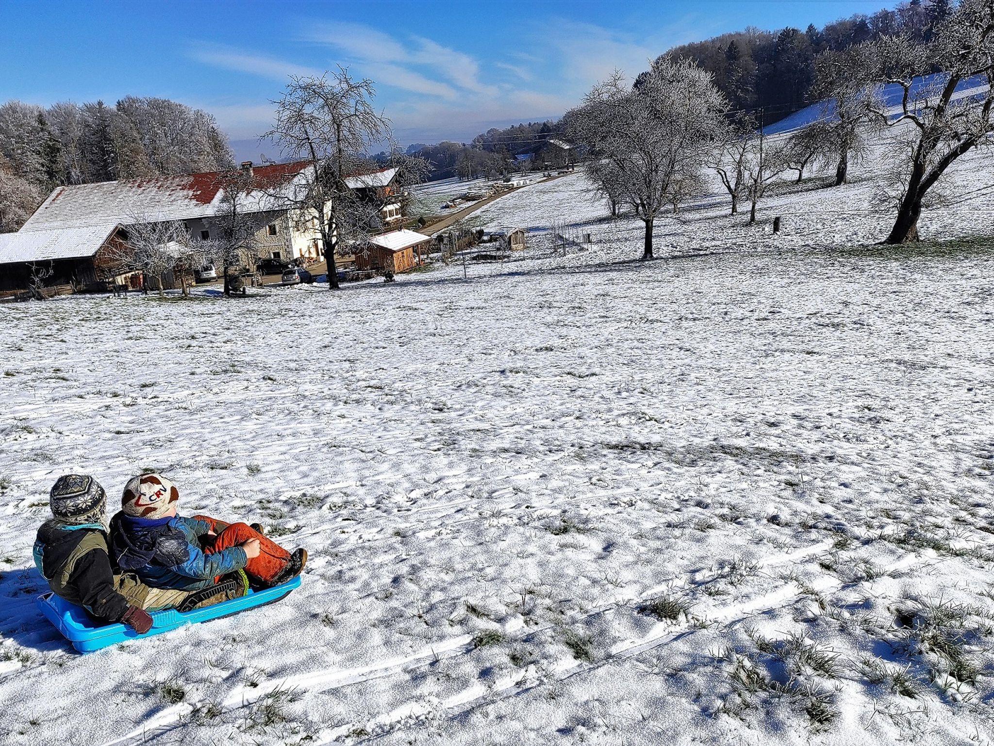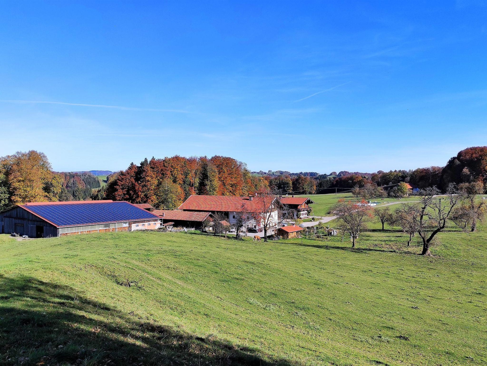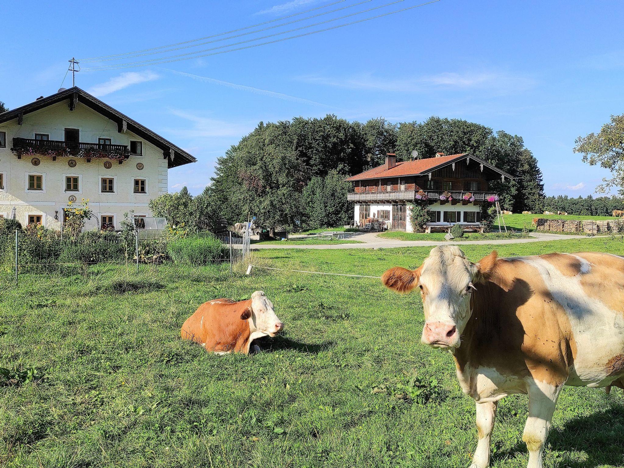 Herzlich willkommen auf unserem Berg-Bauernhof in absolut freier, ruhiger Alleinlage mit Blick auf den Berg Hochries, 3 km außerhalb von Frasdorf. Wir, die Bauersfamilie Franz und Christiane samt unseren Kindern Franzl, Lisal, Kathl und Fini leben hier mit unseren 30 Milchkühen, Kälbern, Hühnern und Schafen. Es ist viel Platz um's Haus, um mit Tretfahrzeugen, Fahrrädern und Ketcars herumzusausen. Gerne nehmen wir euch mit in den Stall und zeigen euch unsere Landwirtschaft. Die Ferienwohnungen befinden sich separat im Zuhaus mit überdachtem Freisitz.