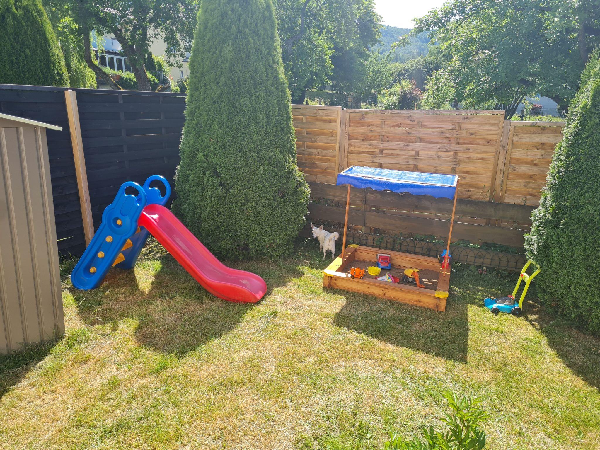 Outside, a spacious garden invites you to use it alone, safely enclosed by a fence for your four-legged friends. A terrace offers the ideal place for relaxing hours outdoors. Particularly noteworthy is the playground in the garden, which invites young guests to enjoy wonderful moments of outdoor play.