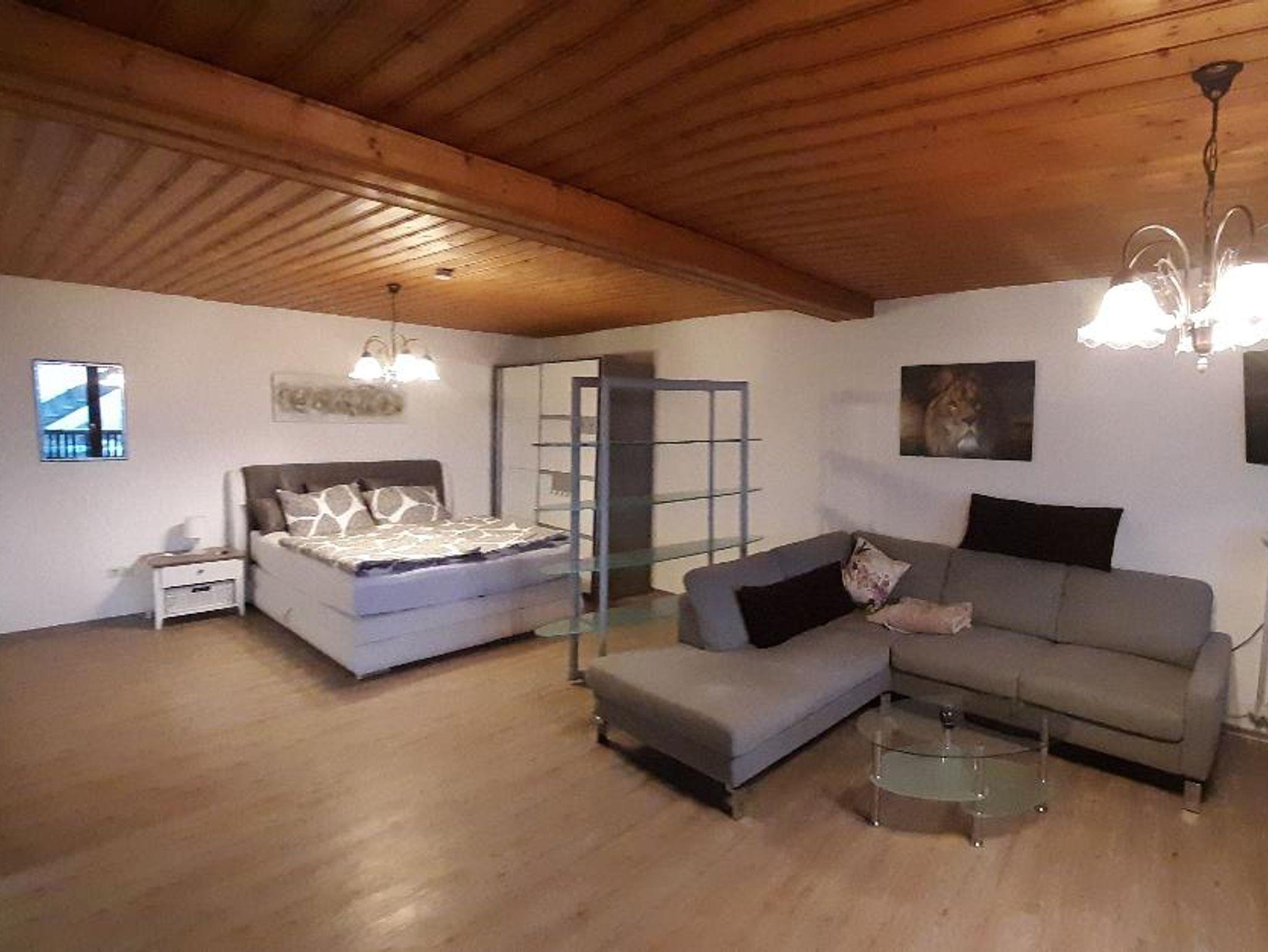 Großes 1 Zimmer Appartement (ca. 45m²) mit West-Balkon mit Blick zum großen Arber sowie Bad/WC und Badewanne.