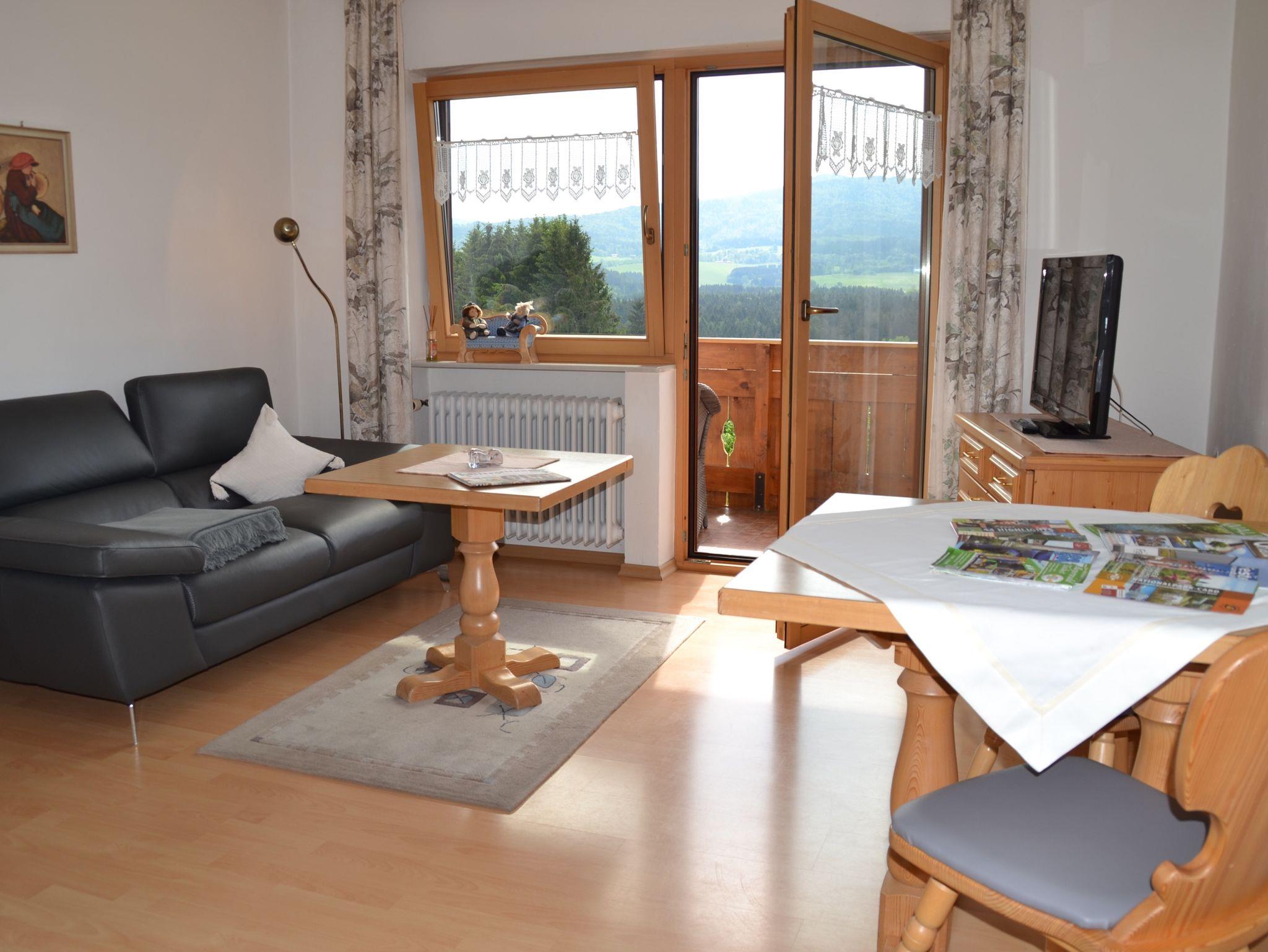 Von den familienfreundlichen Ferienwohnungen haben Sie einen herrlichen Panorama-Blick auf die Berge und in das Tal. An manchen Abenden kommen Rehe bis an das Haus heran.