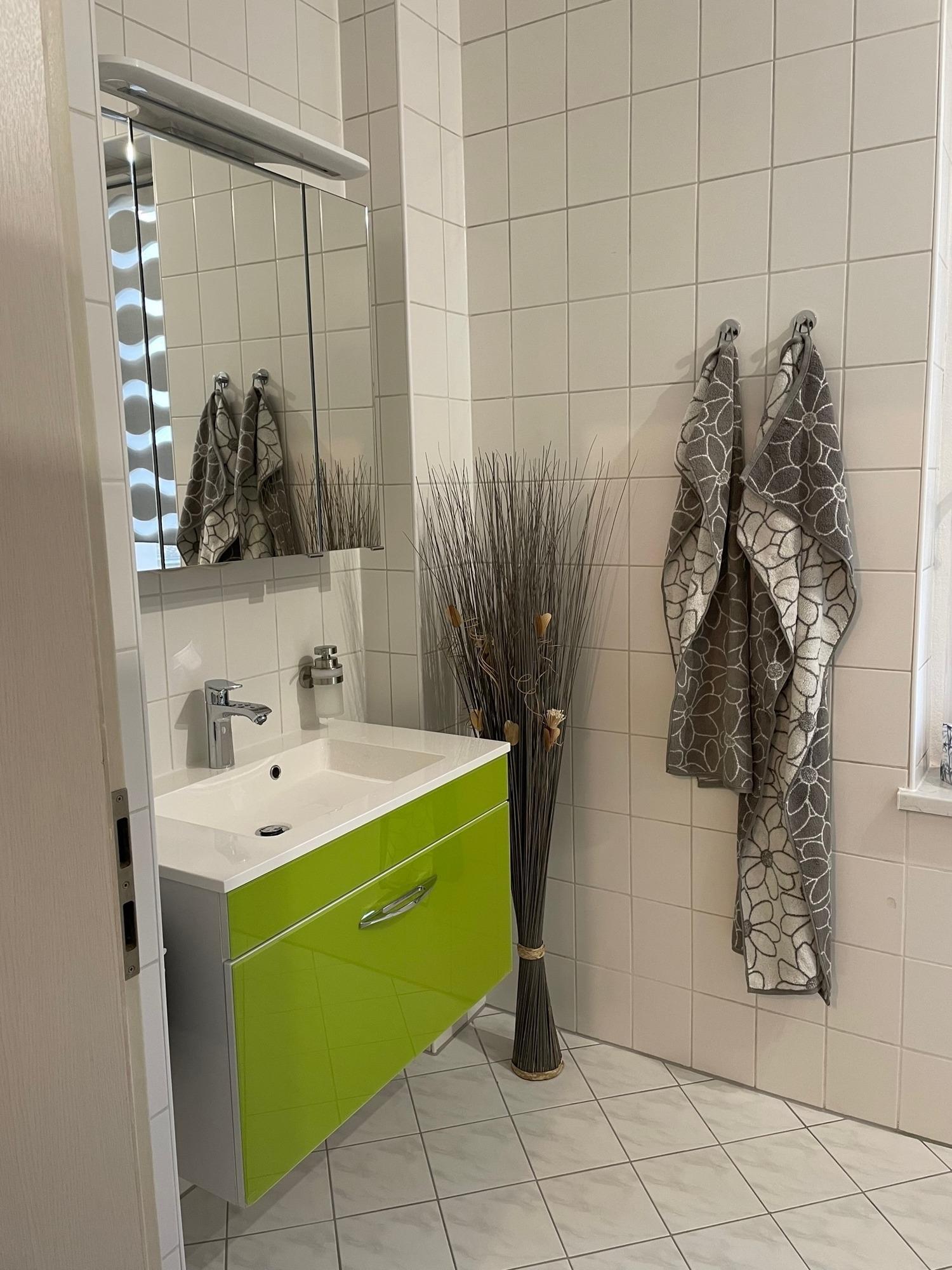 Die Waschmaschine befindet sich im Wasch- u. Trockenkeller. Die Wäsche kann auch im Garten sowie auf dem Balkon getrocknet werden.