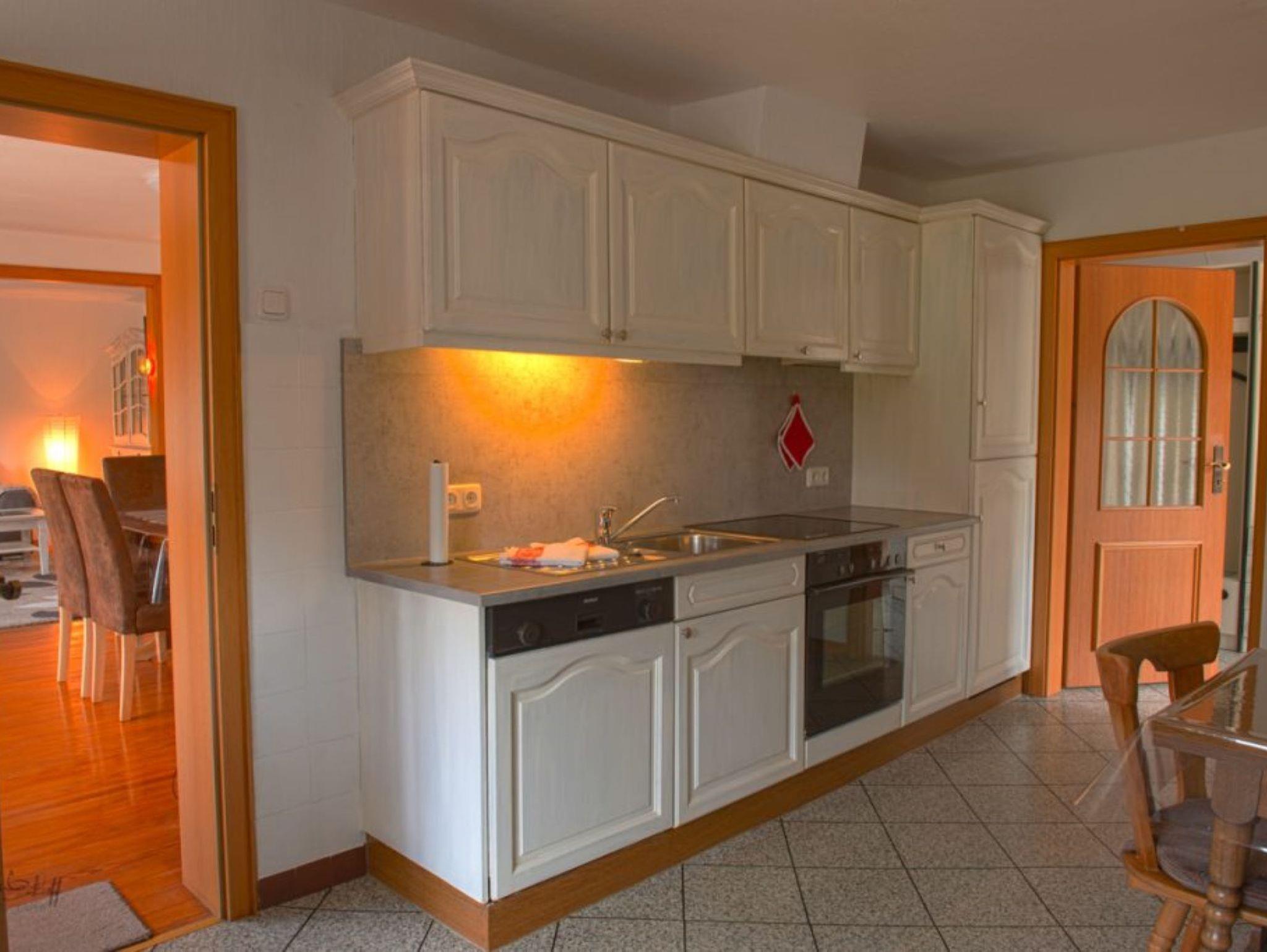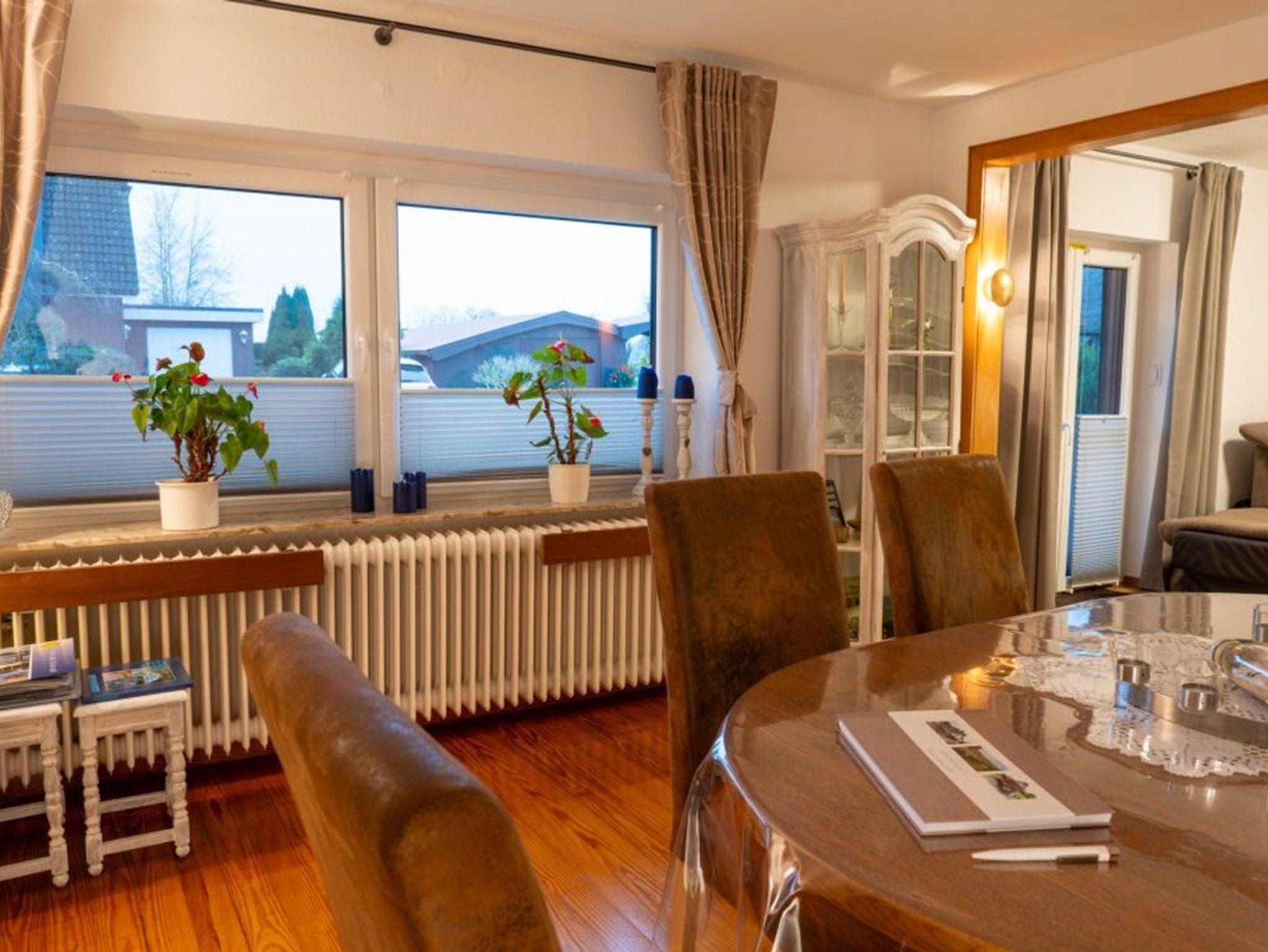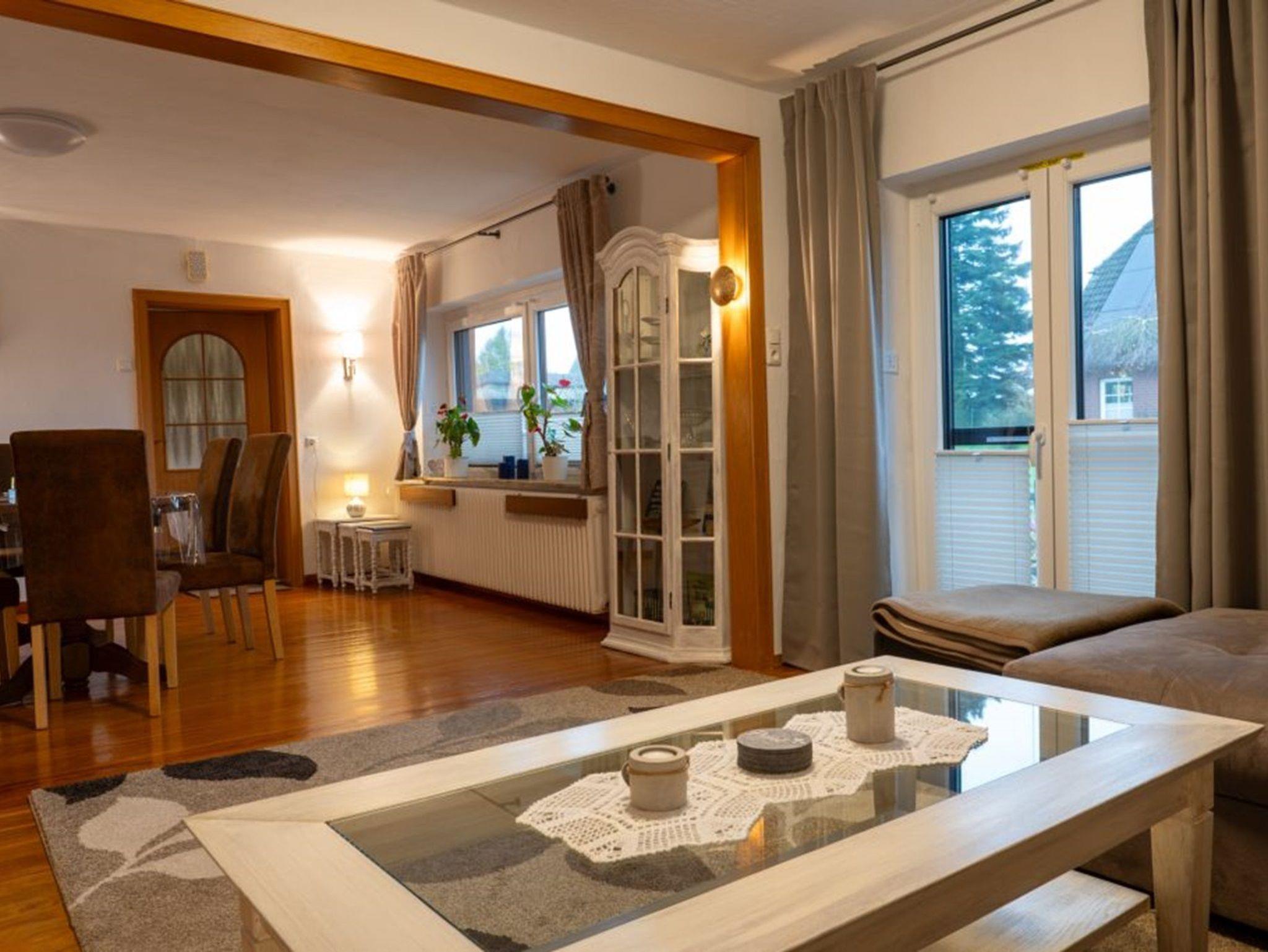 Im Wohnraum stehen ein modernes Ecksofa, ein Fernseher (mit Sat-Empfang) sowie ein Esstisch mit 6 Stühlen zur Verfügung. Die große Küche ist mit einer Eckbank, einem Tisch mit 4 Stühlen, einem Geschirrspüler, einem Kühlschrank mit Gefrierfach sowie einer Mikrowelle ausgestattet. Selbstverständlich kann auch WLAN (Glasfaser) genutzt werden. Bitte haben Sie Verständnis, dass das Rauchen und Haltung von Tieren in der Wohnung nicht gestattet sind.