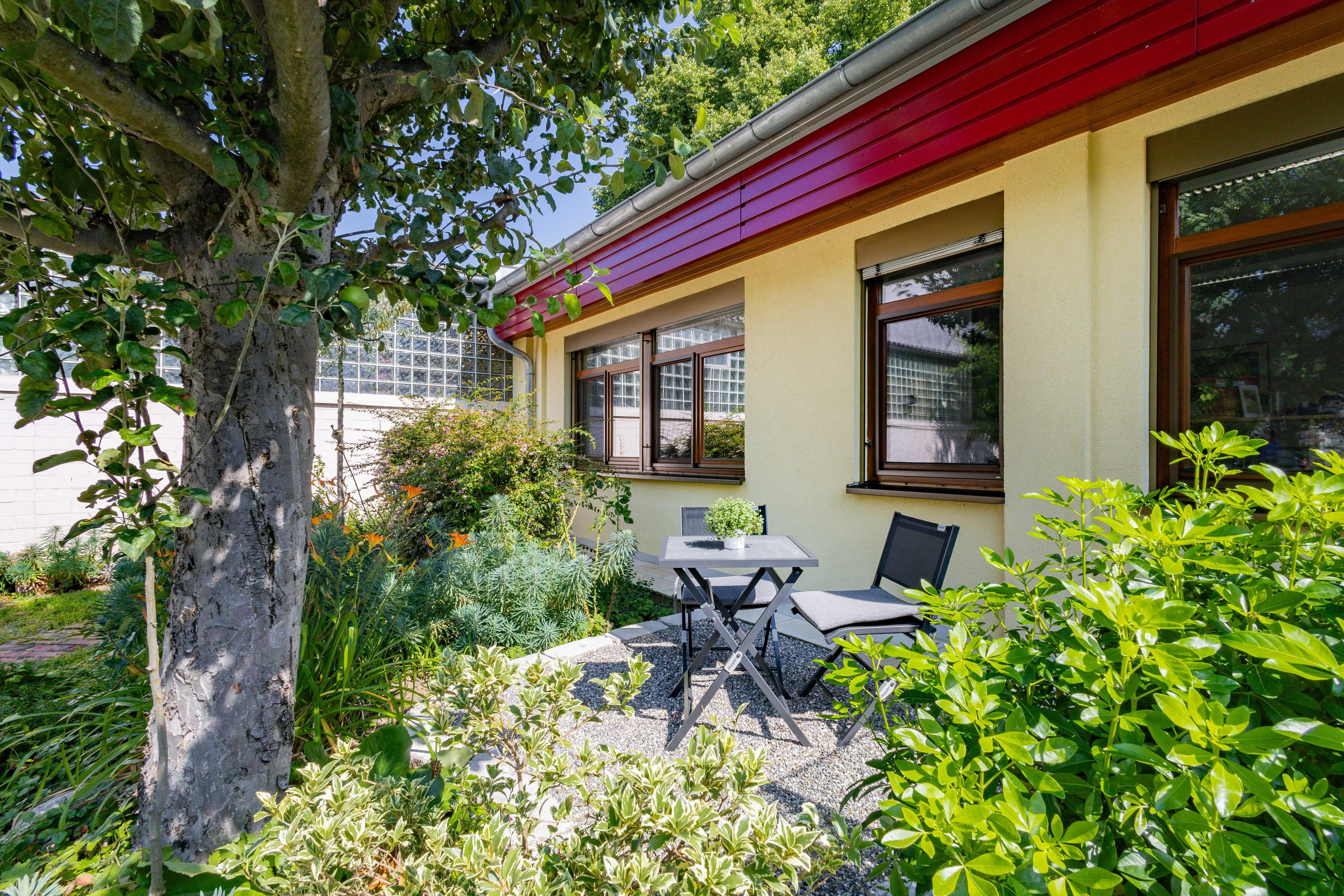 Geschmackvoll und komfortabel eingerichtet, punktet unsere Unterkunft mit einer idyllischen und zentrumsnahen Lage mit ebenerdigen begrünten Innenhof und einem sehr guten Anschluss an den ÖPNV, sowie an das städtische Radwegenetz und die Rheintal-Autobahn A 5.