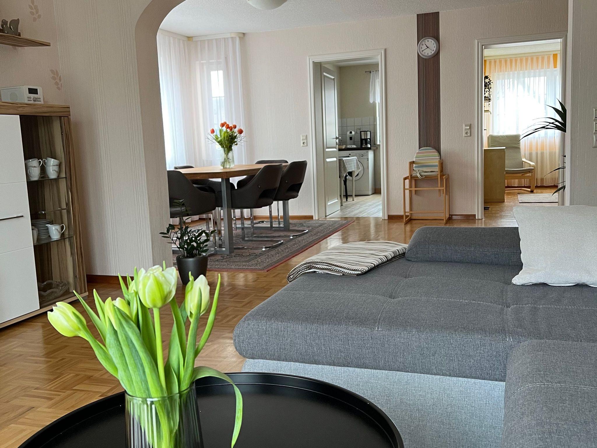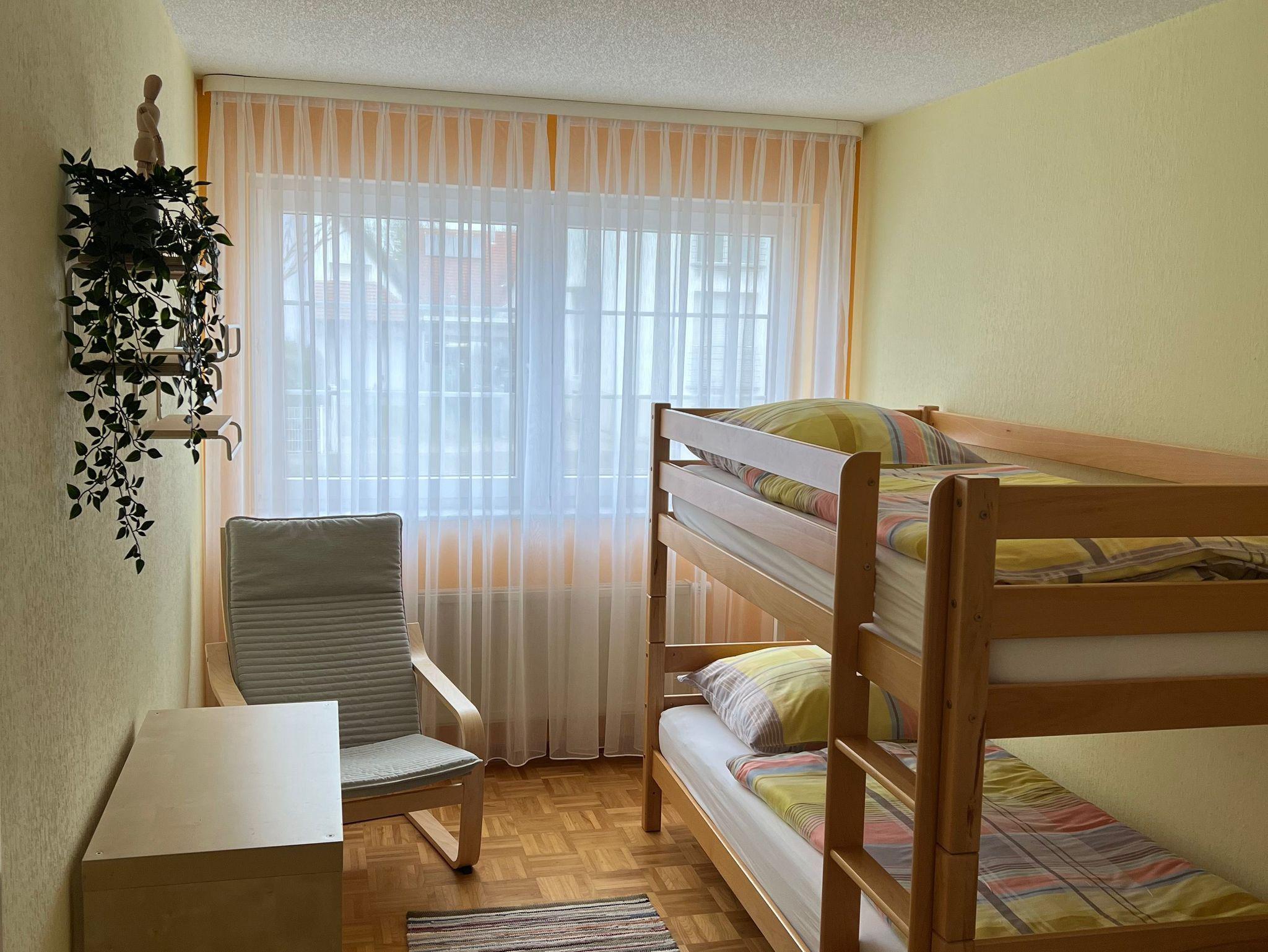 Geräumige schöne Wohnung, in hübscher Stadtrandlage von Freiburg, nahe Spaziermöglichkeit, Bäcker und Supermärkte ganz nah. Komplett ausgestattet, ruhig und beschauliche Nachbarschaft. Geeignet für Familie mit 2 Kindern: 1 Schlafzimmer mit Doppelbett, 1 Zimmer mit Stockbett, dazu Wohnzimmer, Essbereich und separate Küche, hübsches Bad, einladende Veranda. Vermieter sehr zuvorkommend, freundlich und tierlieb! Empfehlenswert :)