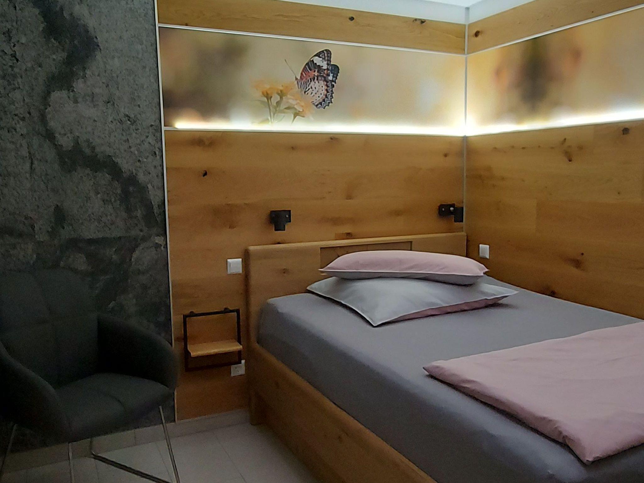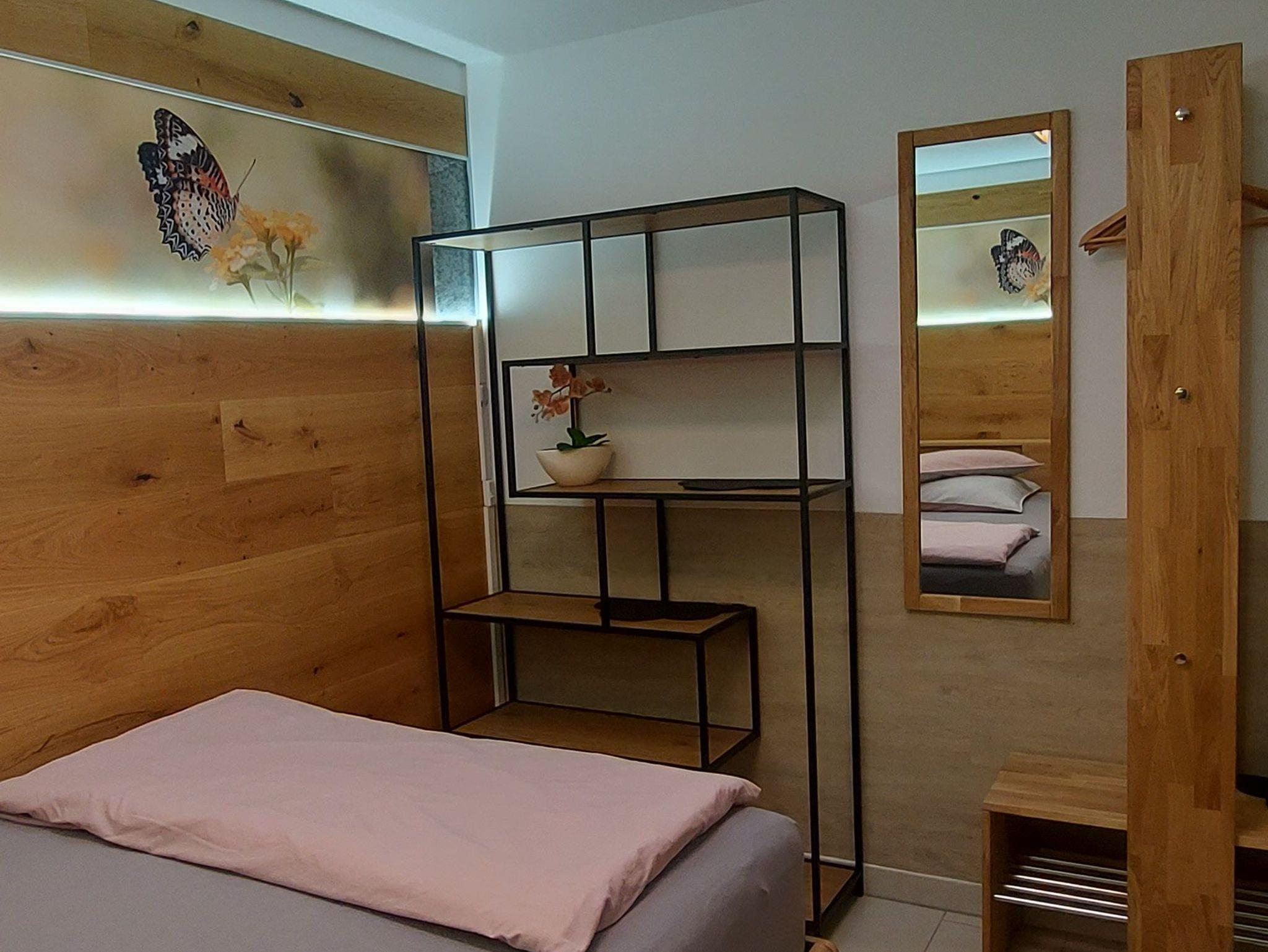 Einzelbett, separate Küche, Bad mit WC und Dusche, Internetanschluß