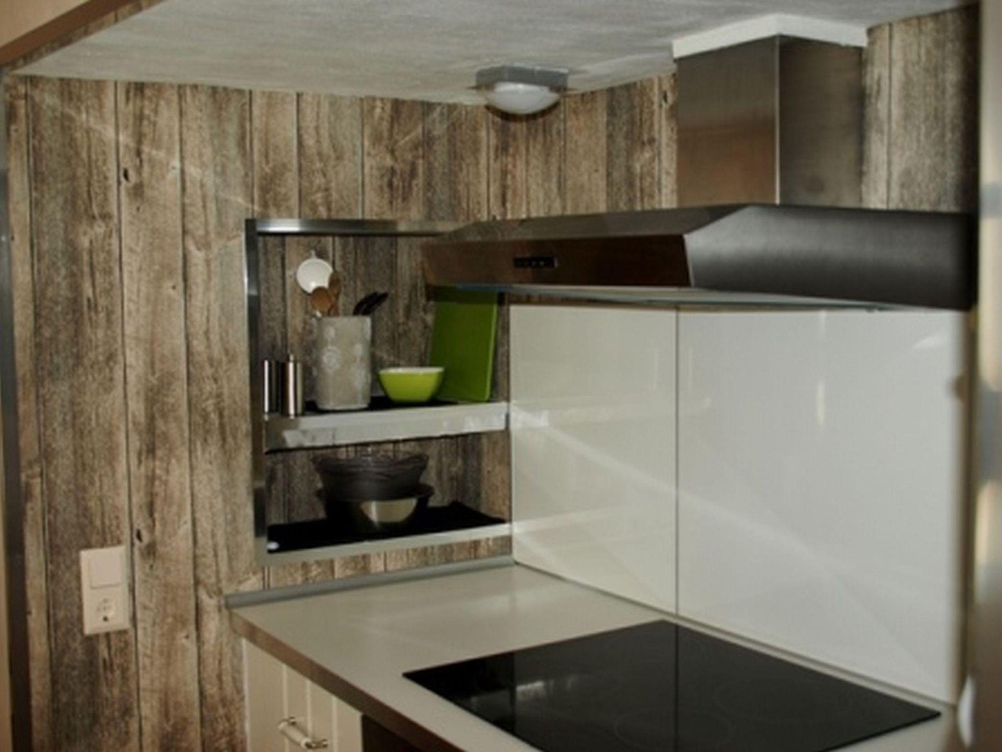 Herd, Glaskeramik-Kochfeld, Spülmaschine, Backofen, Kühlschrank mit Gefrierfach, Mikrowelle, Toaster, Kaffeemaschine, Kaffeepadmaschine, Wasserkocher, Eierkocher, Esstisch mit 4 Stühlen.