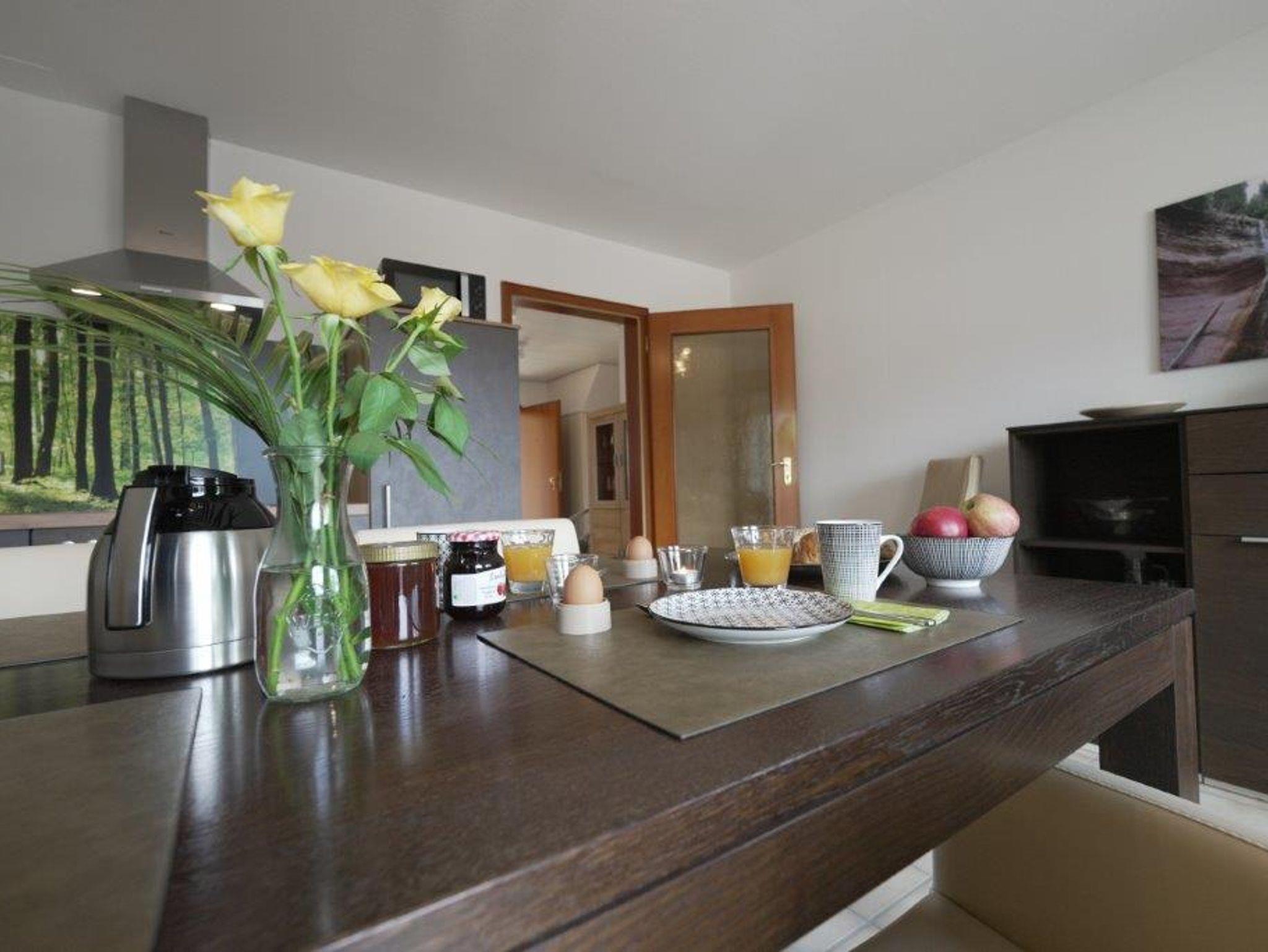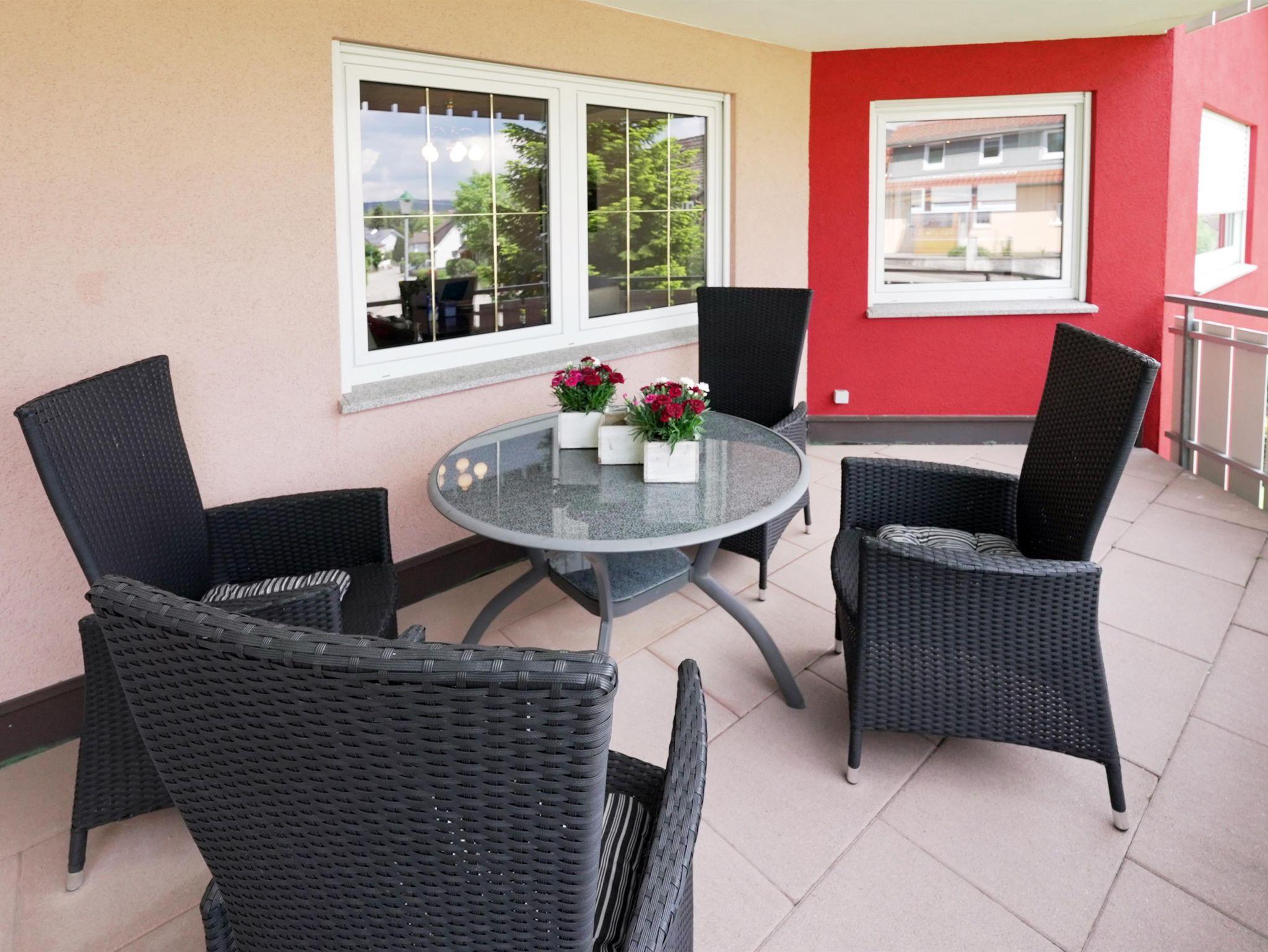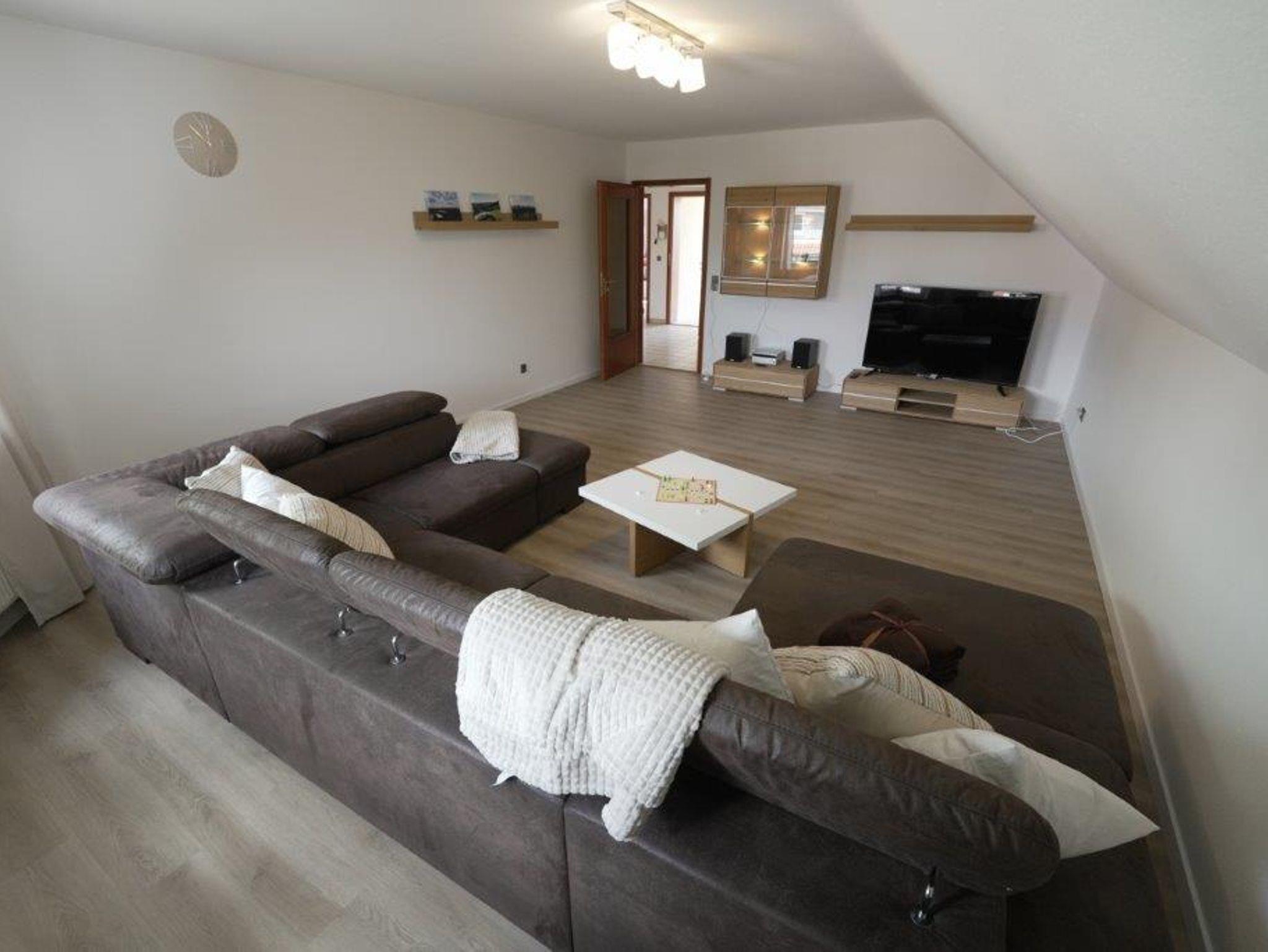 Im Dachgeschoss befindet sich unsere mit 4 DTV-Sternen ausgezeichnete 4-Zimmer-Wohnung LERCHE, die mit 96 qm Wohnfläche mit Balkon für 4 Personen geeignet ist.